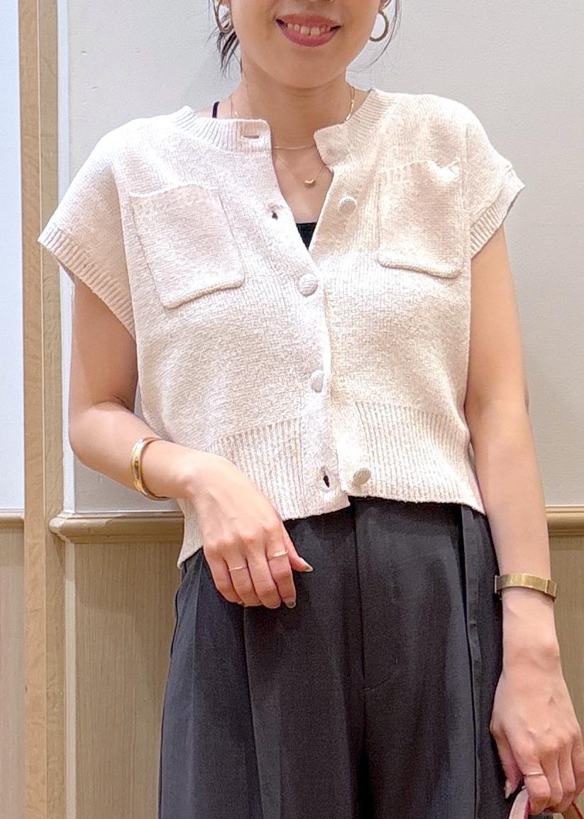 VISくるみ釦ニットトップスカーデ/洗えるピンク / F¥4,939