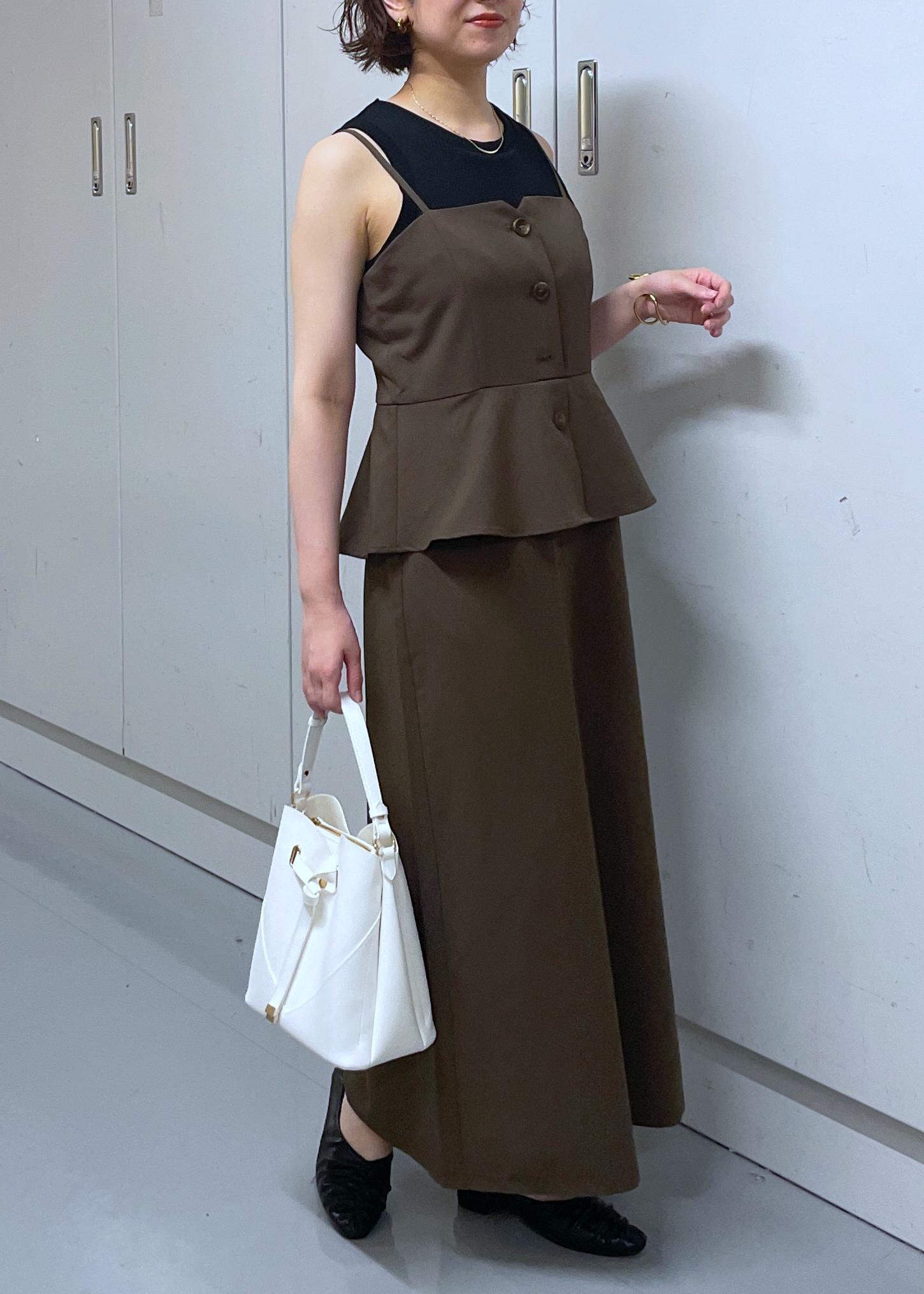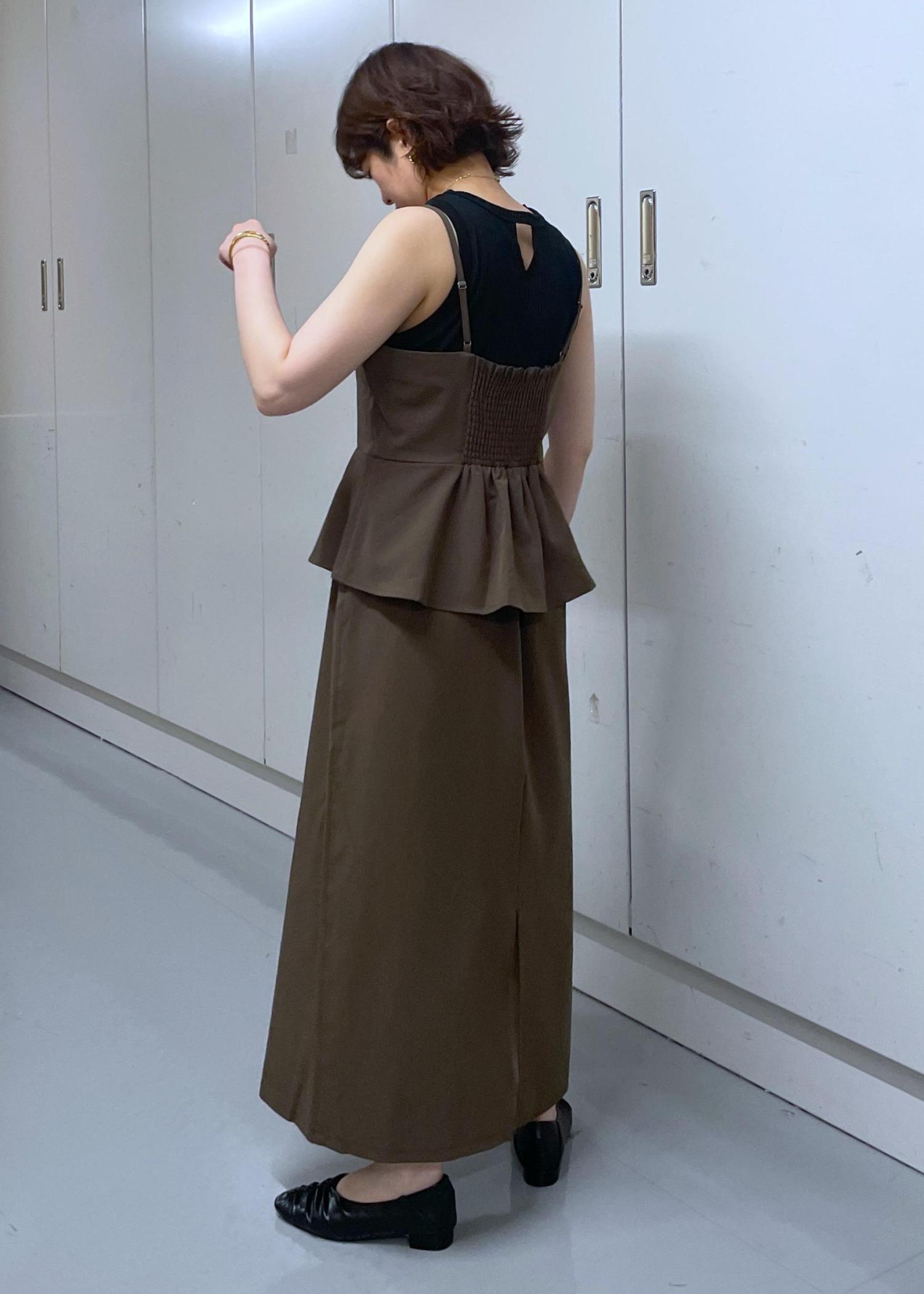 VISビスチェドッキングライクキャミワンピースダークブラウン系 / F¥7,689レビューウエスト部分に切り替えがありますが、お腹周りにはゆとりあり楽に着用できました。