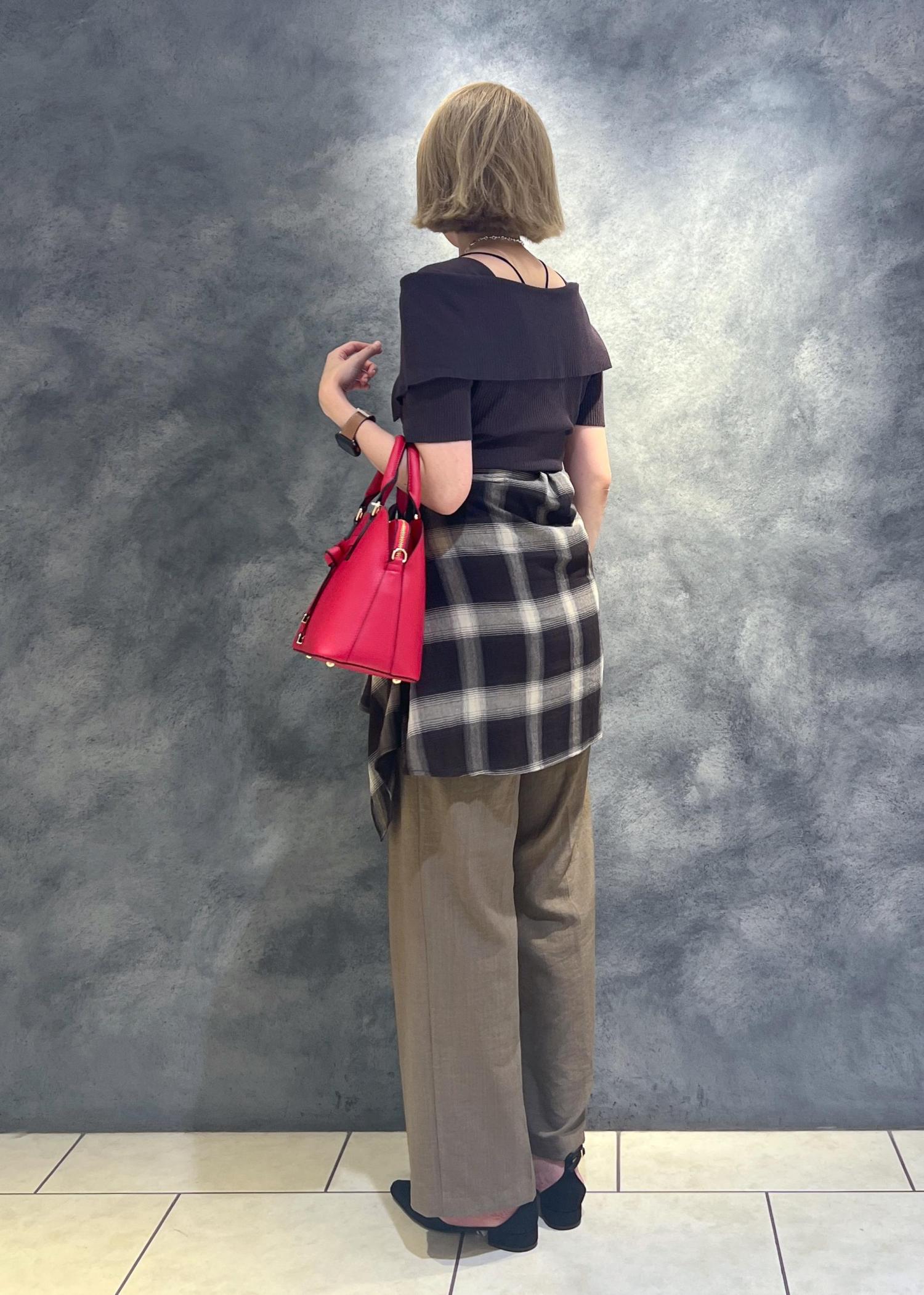 それでも肩は横長見えしてしまうため腰から下にボリュームを出してシルエットを整えています。