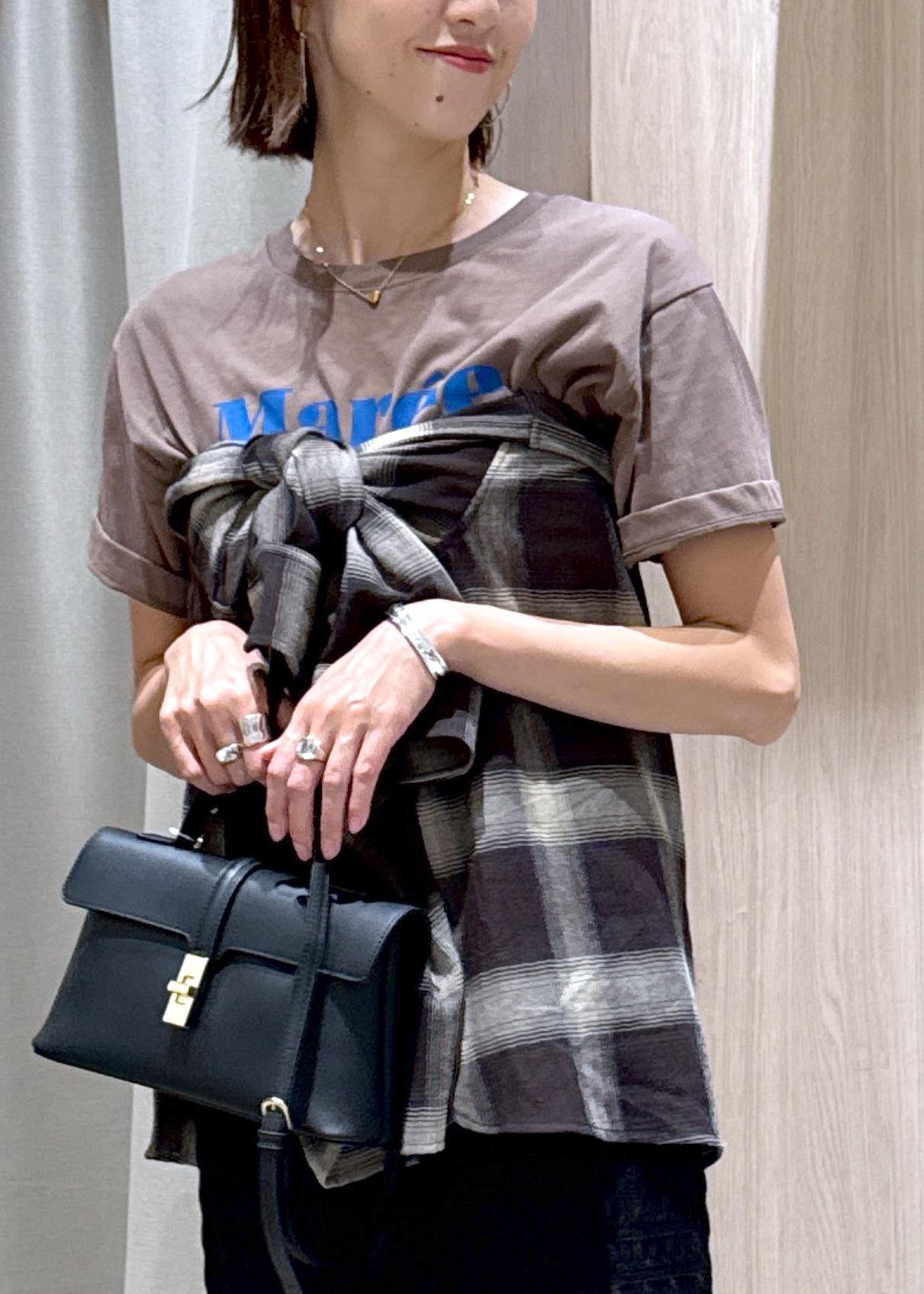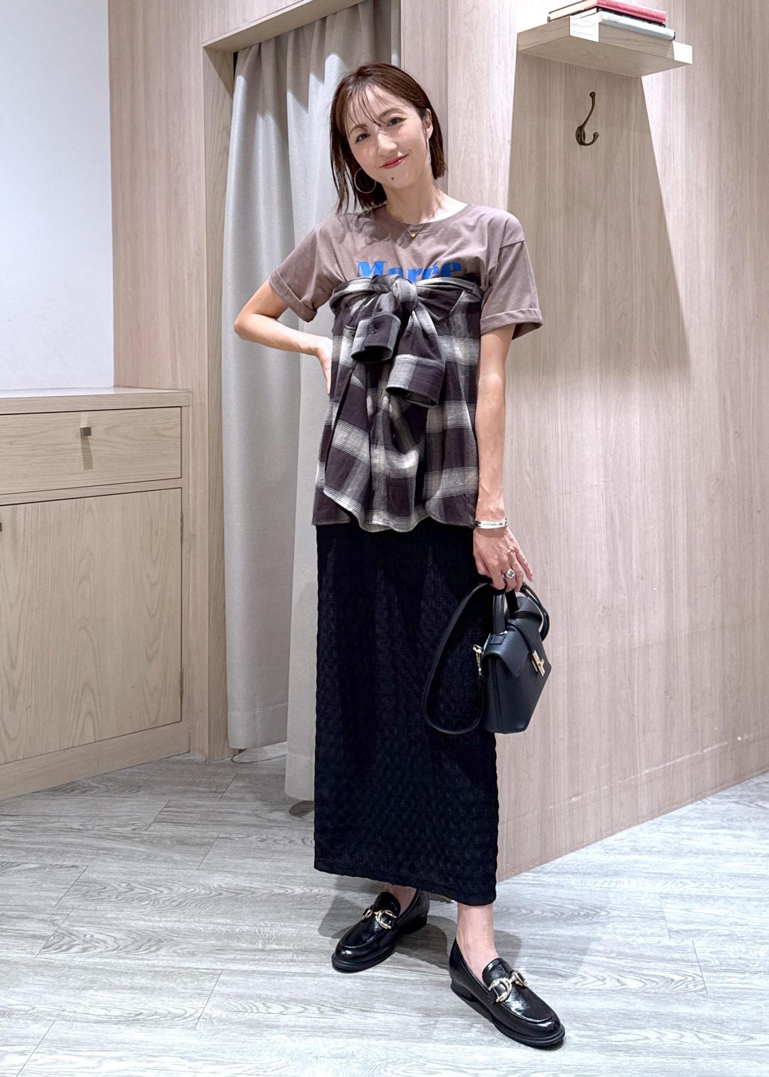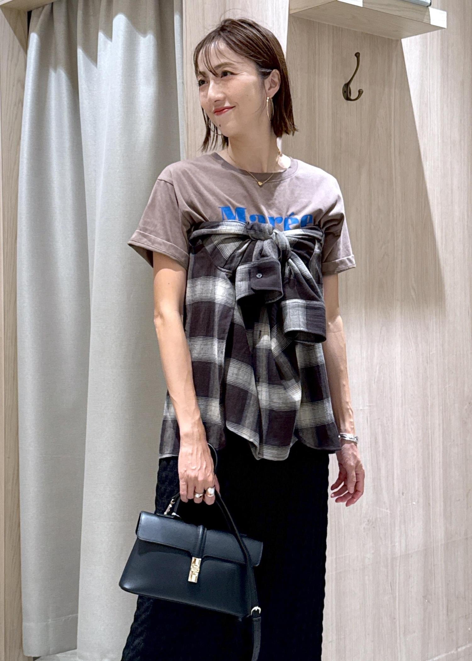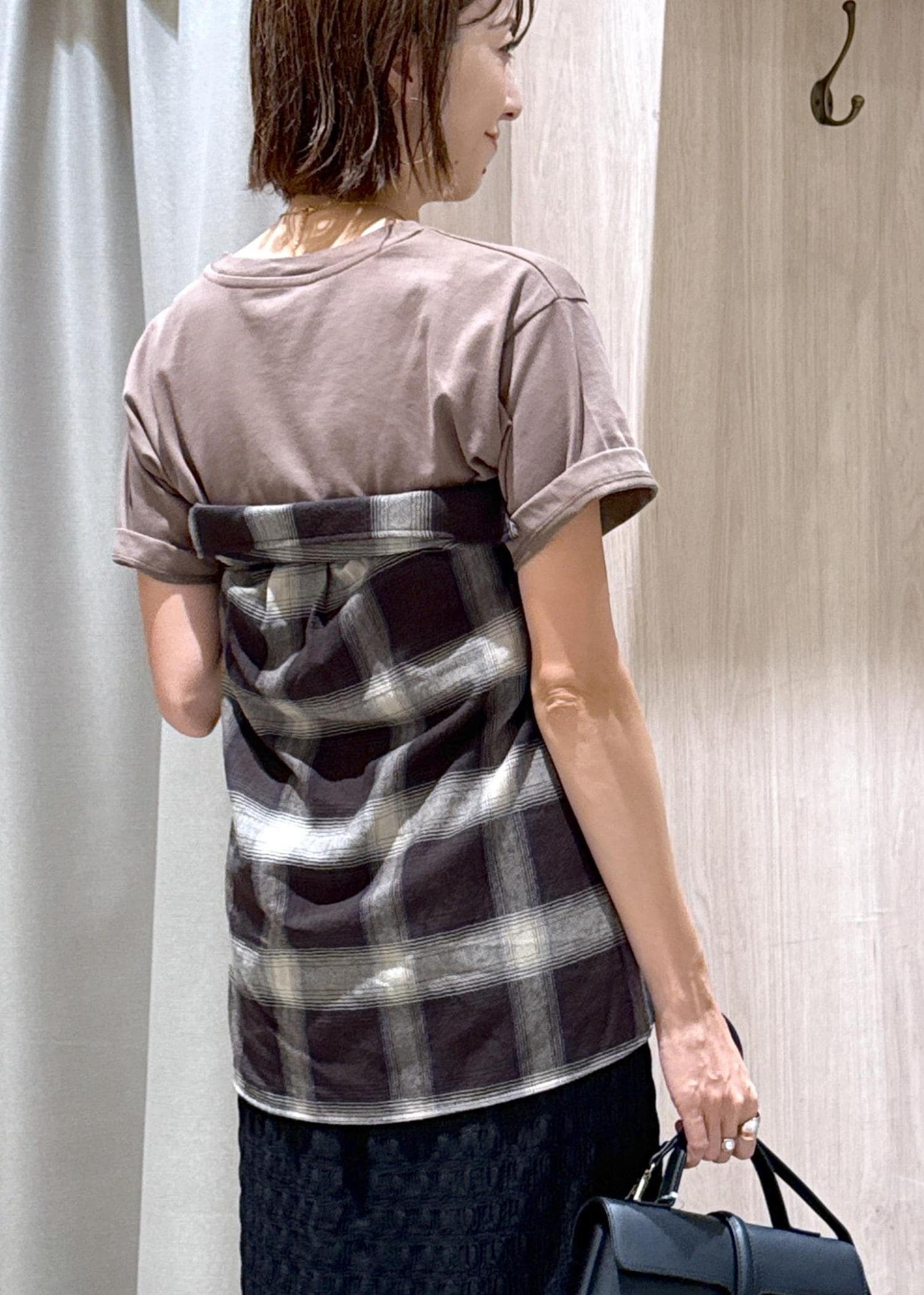 大人気のチェックシャツをTシャツの上に重ねてビスチェ風にスタイリングしてみました♪