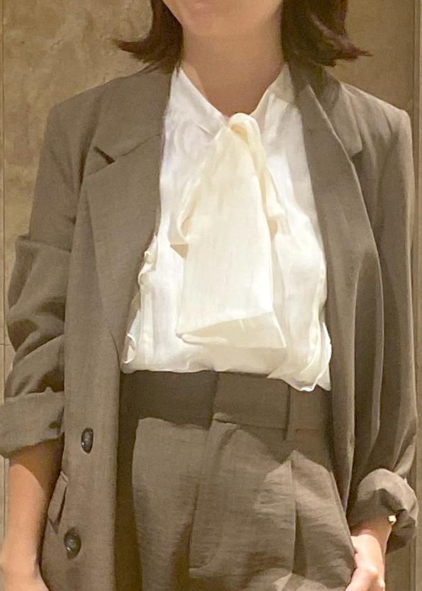 ジャケットとパンツは美easyシリーズの秋に大活躍になりそうな色のカーキーを選びました!