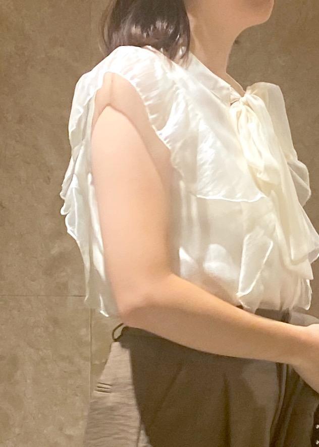 VIS【店頭人気】主役級!華やぎシアーシャイニーボウタイフリルブラウス【前後2WAY】【洗える】キナリ / F¥5,489レビュー150cmで腰に当たる丈感でした!