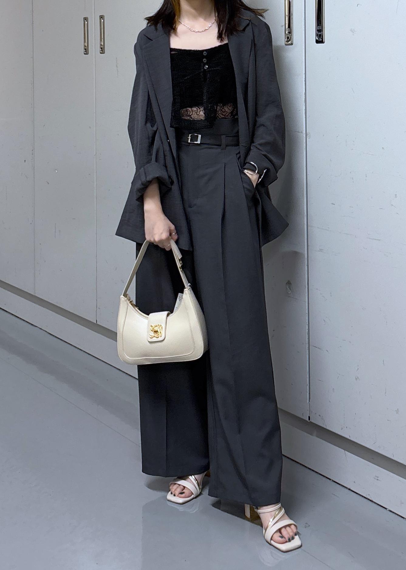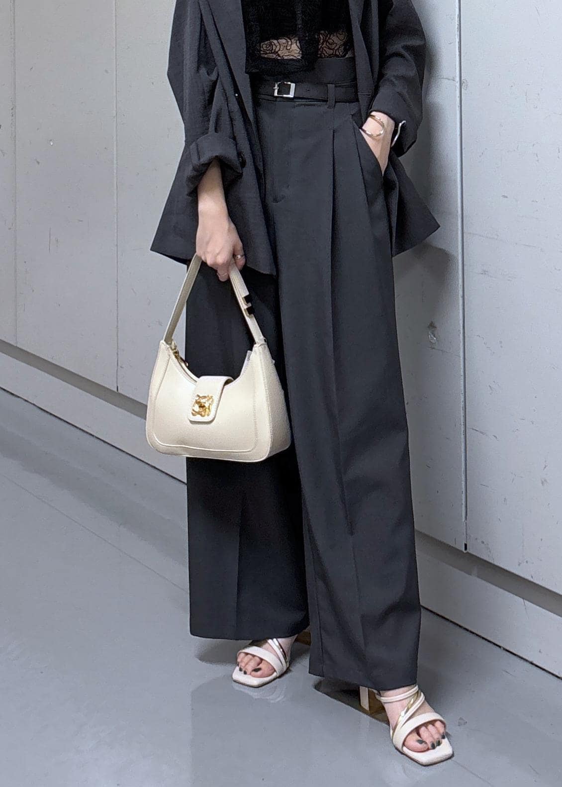 ハイウエストでワイドなのでウエストの細見え感と脚長効果が抜群!