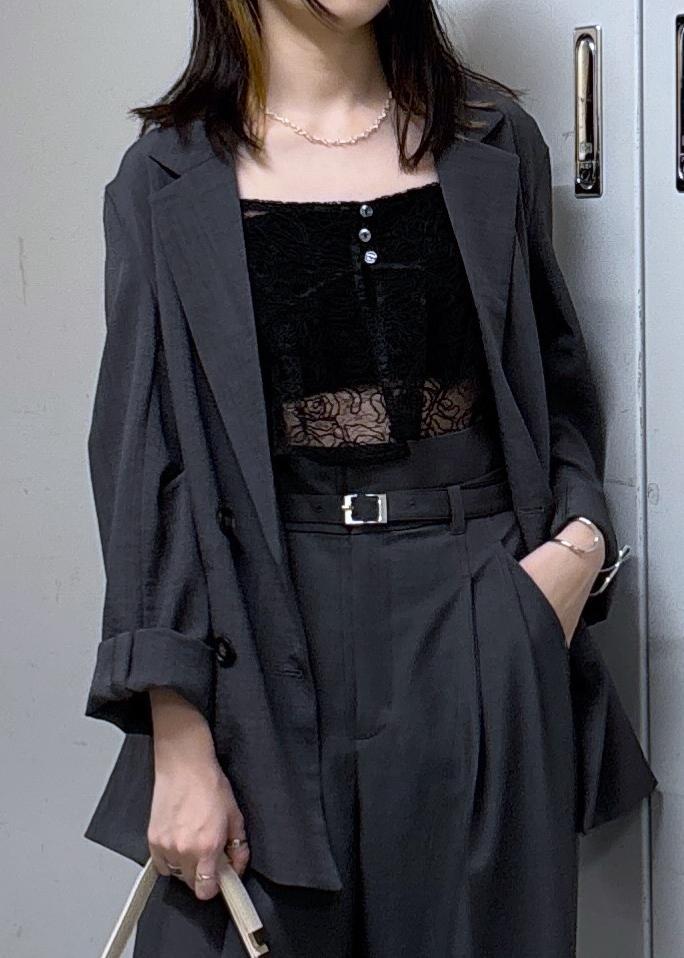 夏のレイヤードは暑い印象がありますが、このビスチェなら締め付け感がないので快適にオシャレできます◎