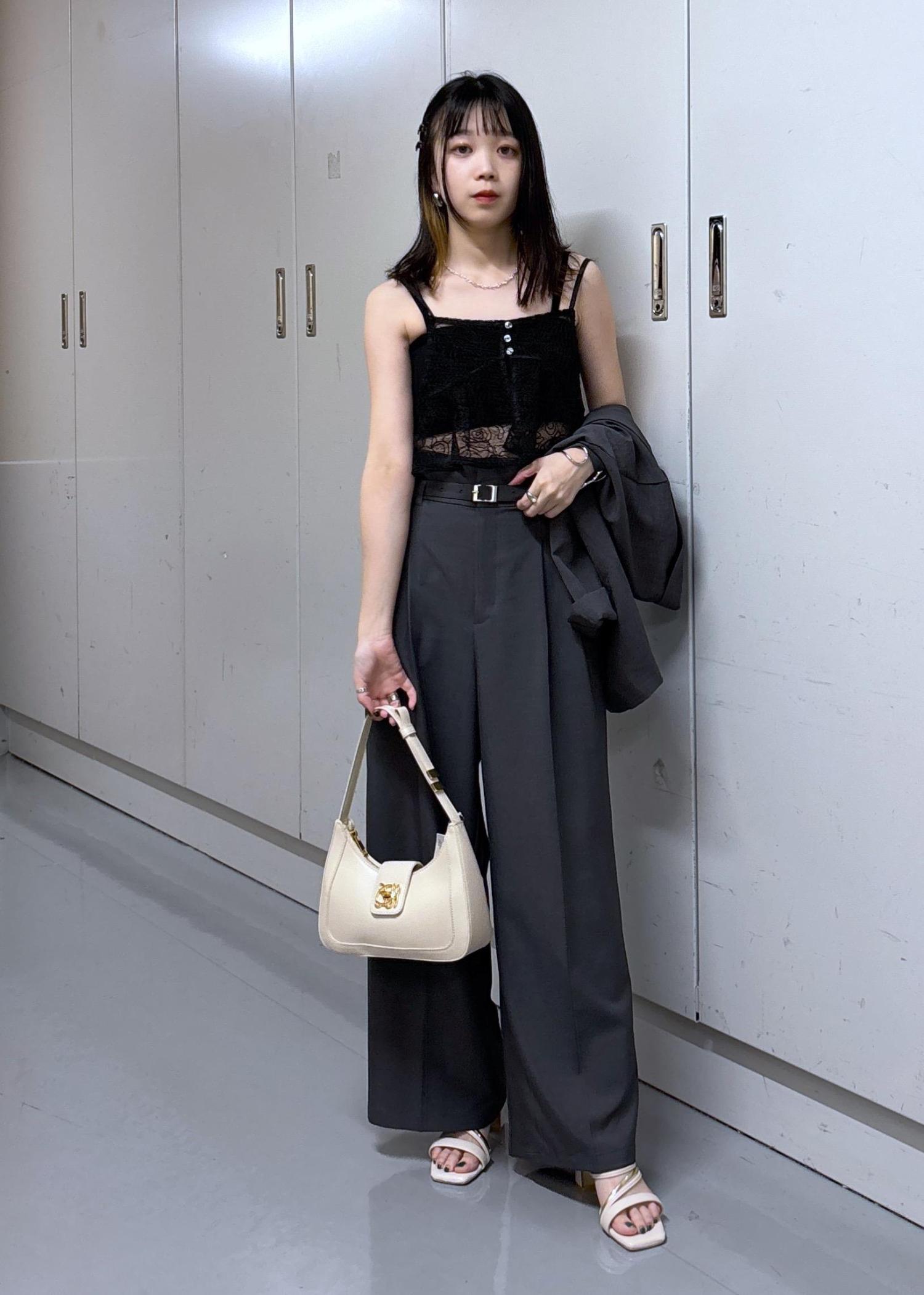 パンツのハイウエストが活きて、スタイルもいい感じです✨