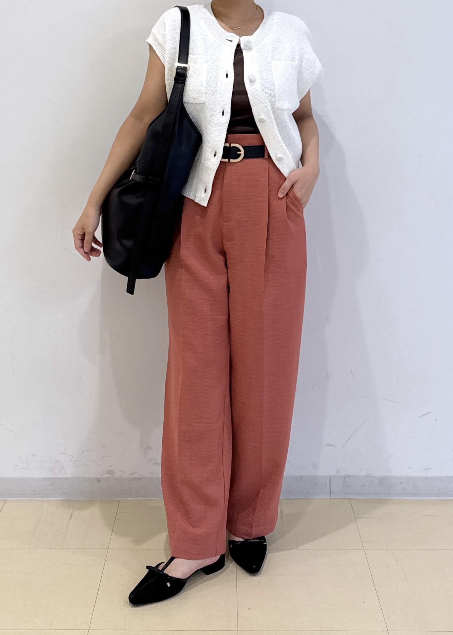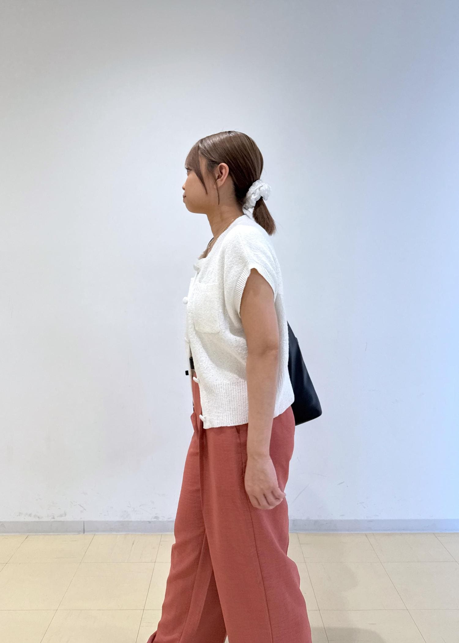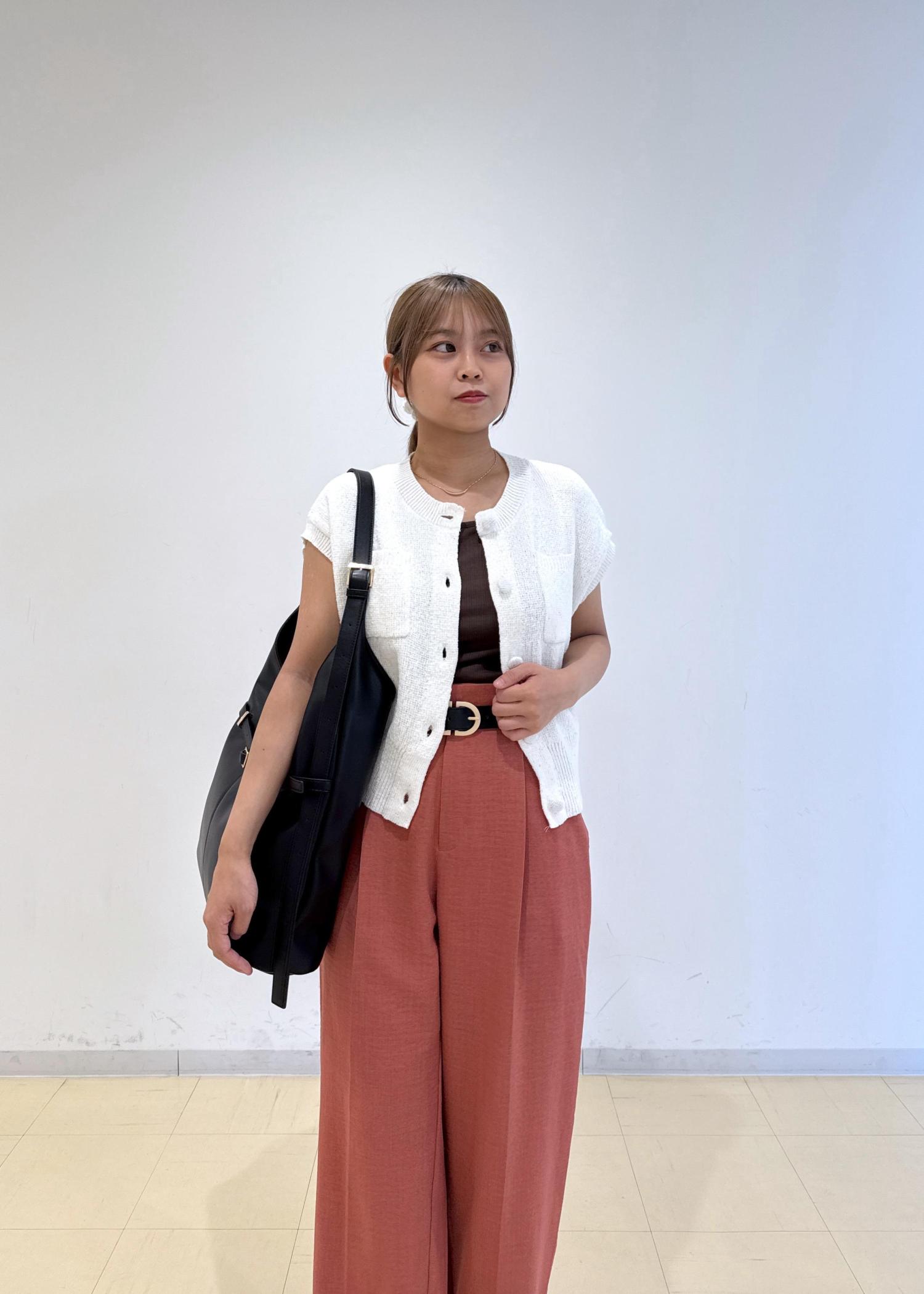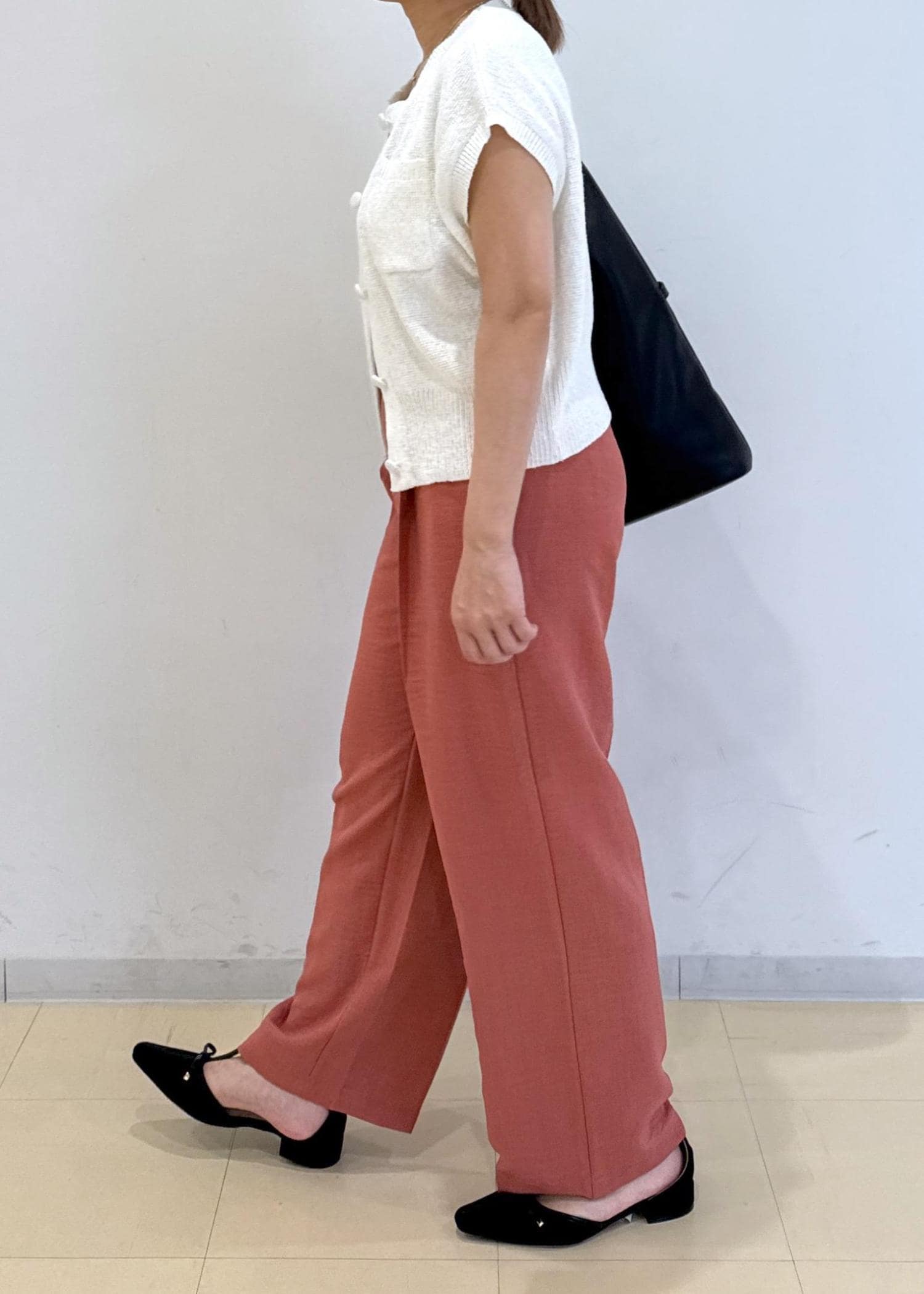 低身長なのでワイドパンツを履くと重たくなりがちなのですが、美easyはシルエットが綺麗で重たくならず履けました◎