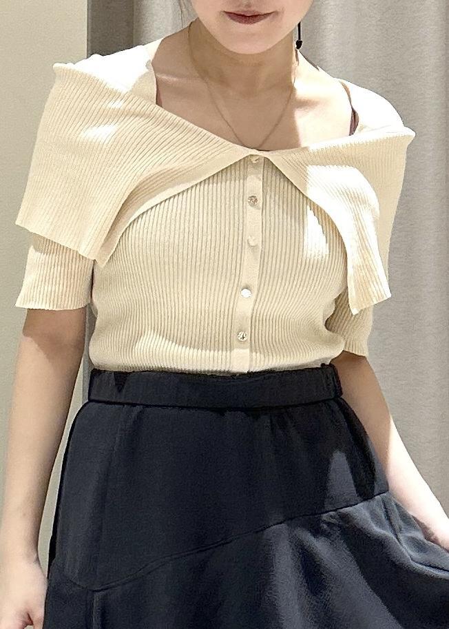 大きめのカラーが腕周りを細く見せてくれます。オフショル風なので肩周りも華奢みえします。