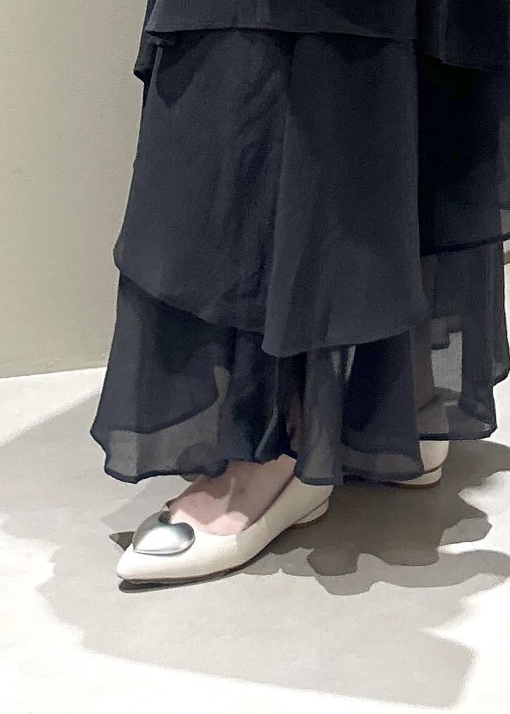 スモークのかかったメタルハートの装飾が足元から可愛くしてくれます。ヒールも引くためでクッション性もあるので長時間歩いても疲れにくいです。