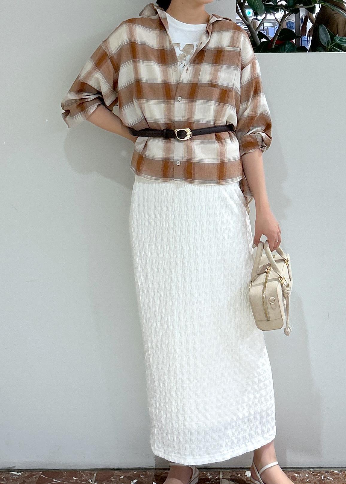 アウトレットVIS【新色追加】【接触冷感】膨れジャガードナロースカートオフホワイト / F¥3,293レビュー172cmでFサイズ着用しております。