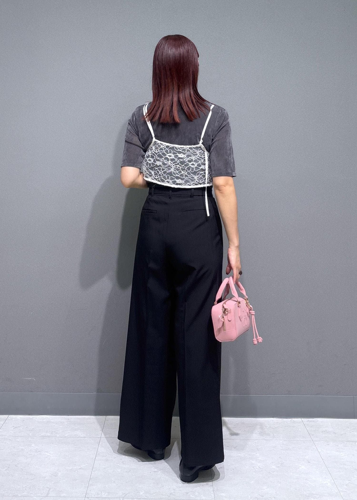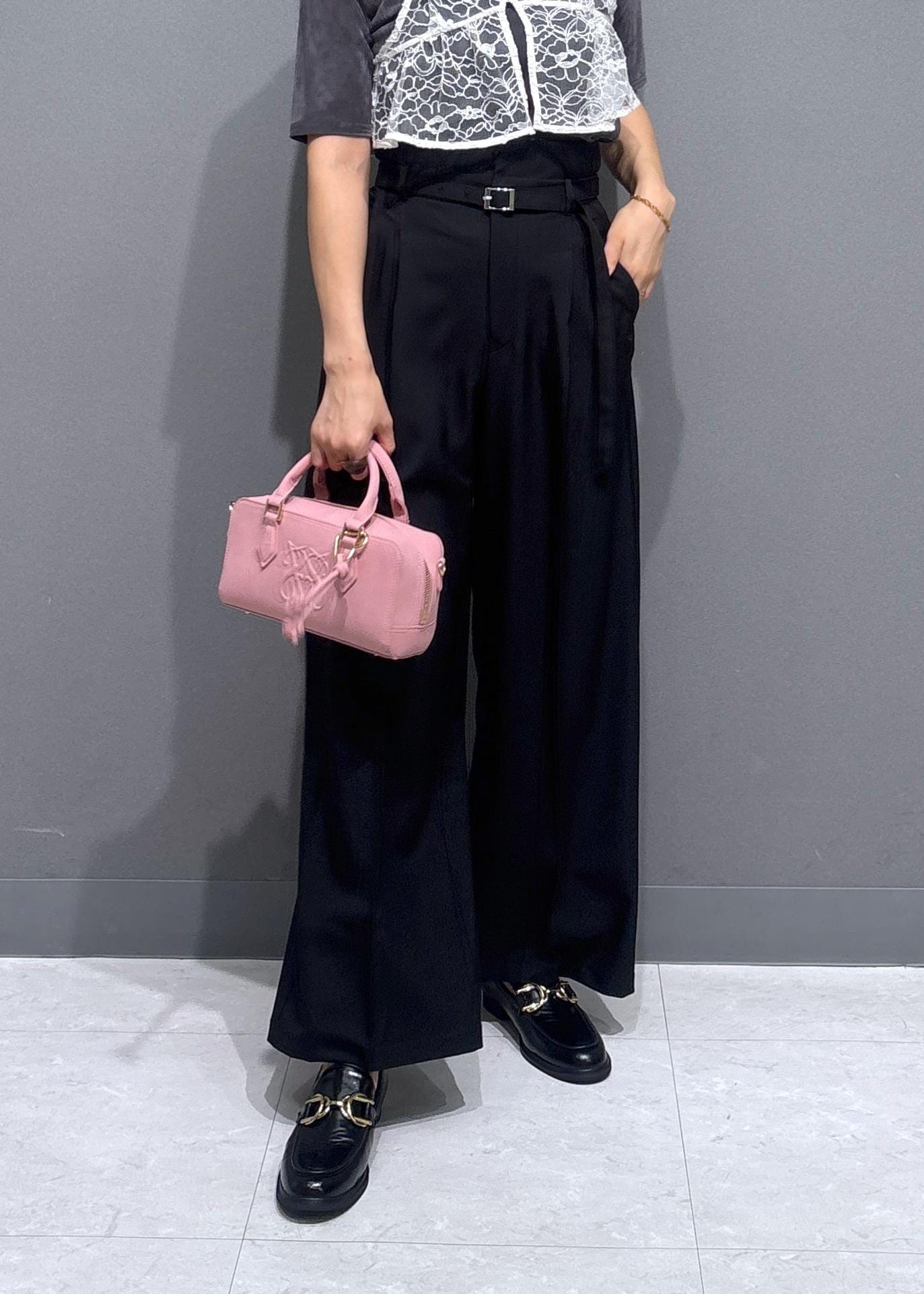 VIS【新色追加】【防シワ/接触冷感】ベルトディテールタックワイドスラックスパンツブラック / M¥6,589レビューさらっとした生地でシワになりにくいです。