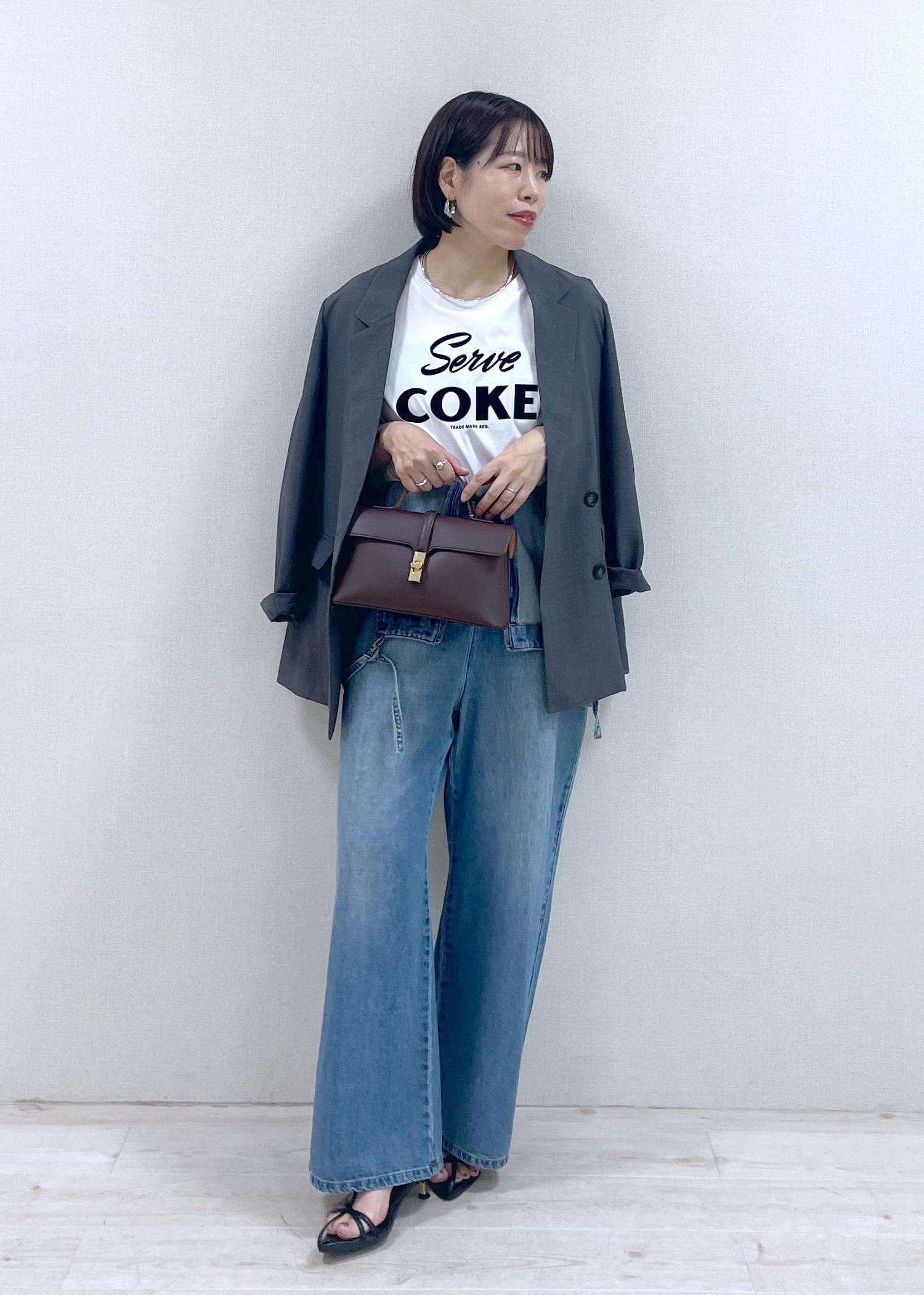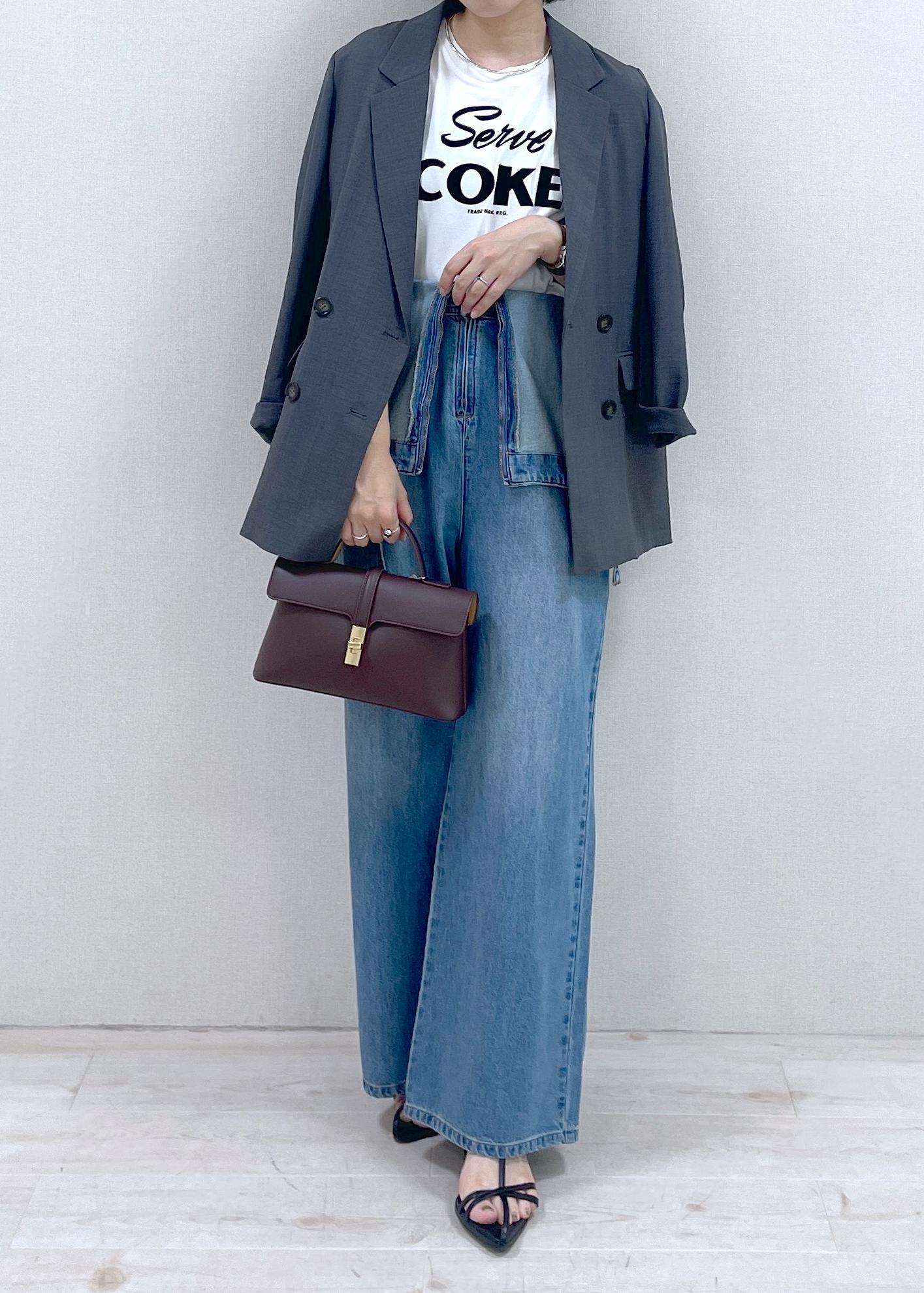 ゆったりしたサイズ感ですが、落ち感のある素材なので、華奢見えします。