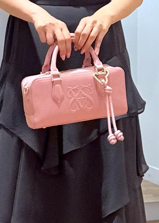 ピンクカラーがかわいいバックを合わせて華やかさをプラス。