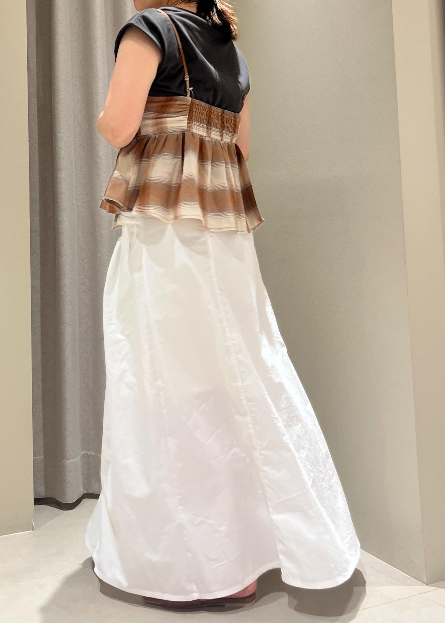 広がりすぎないフレアシルエットが綺麗で、腰周りをスッキリ見せてくれました。 -