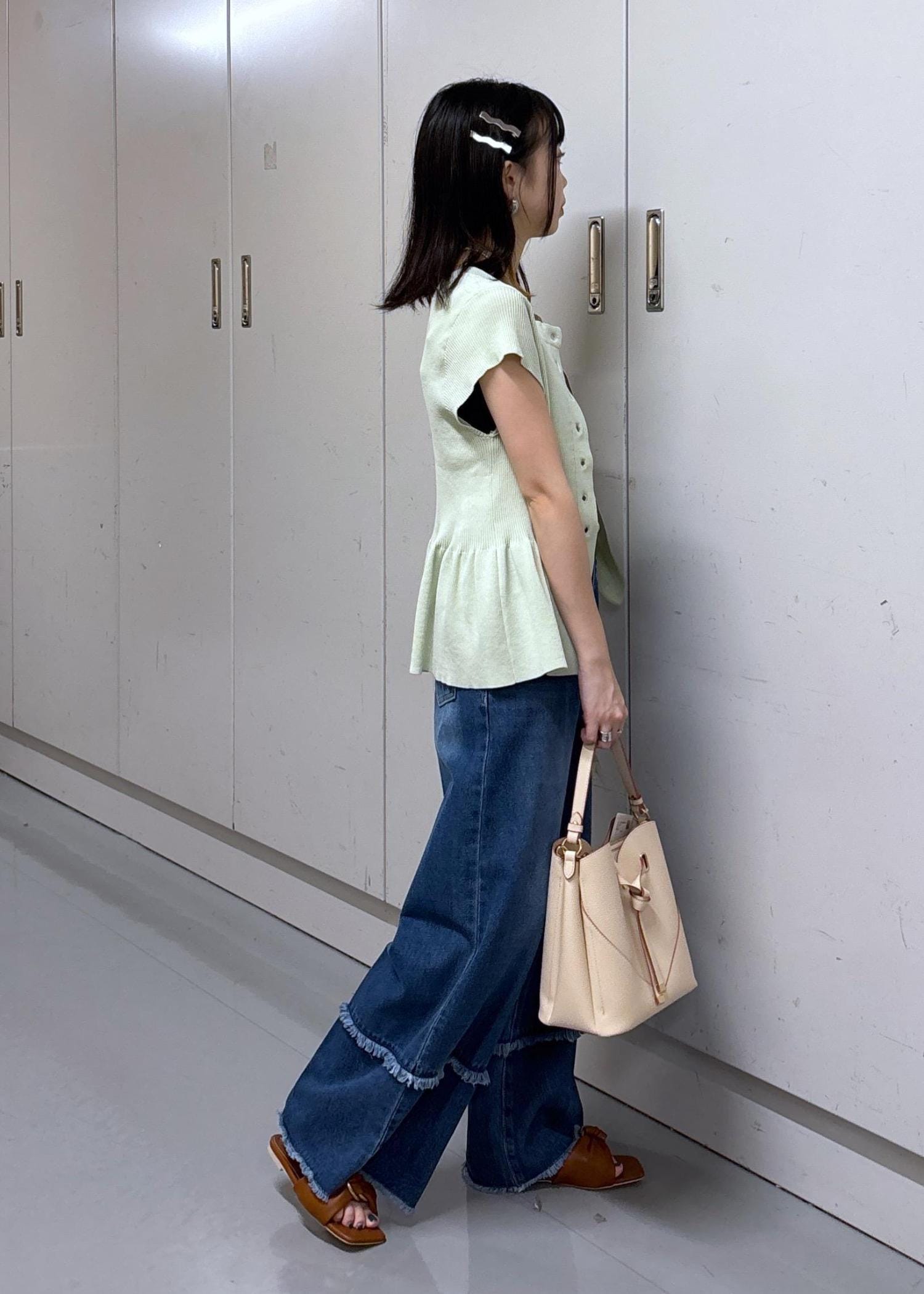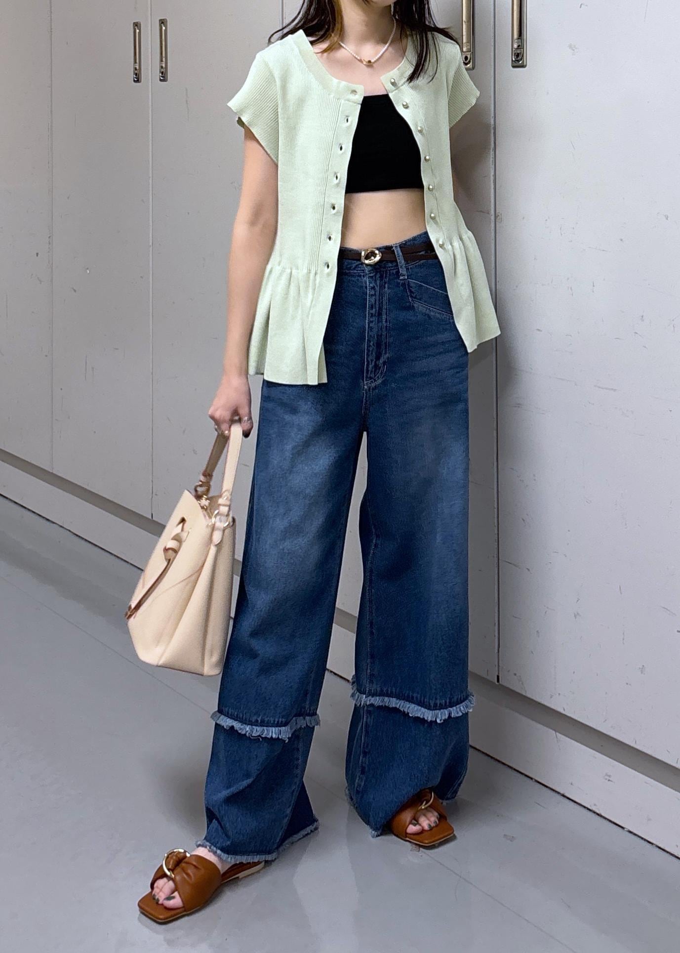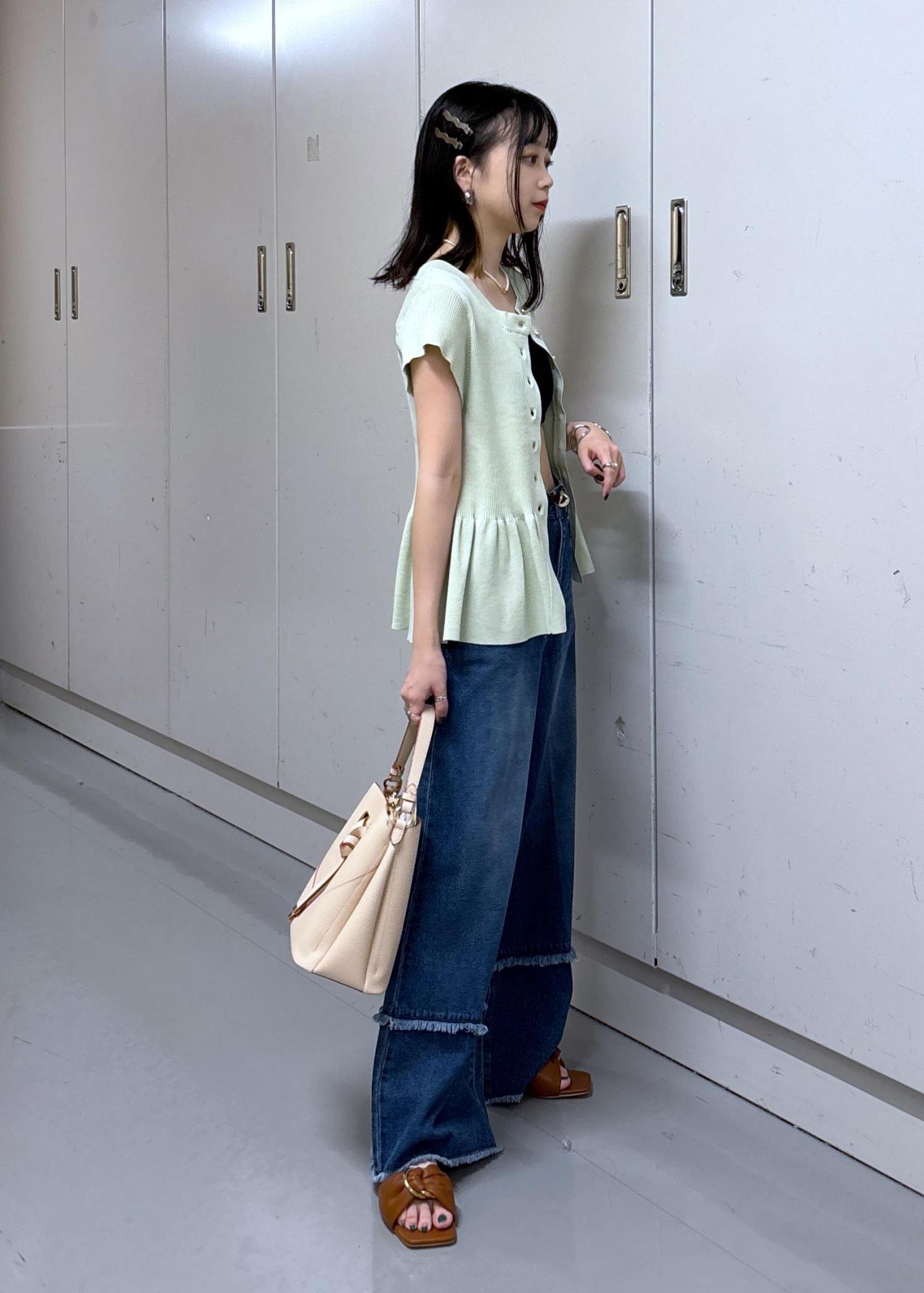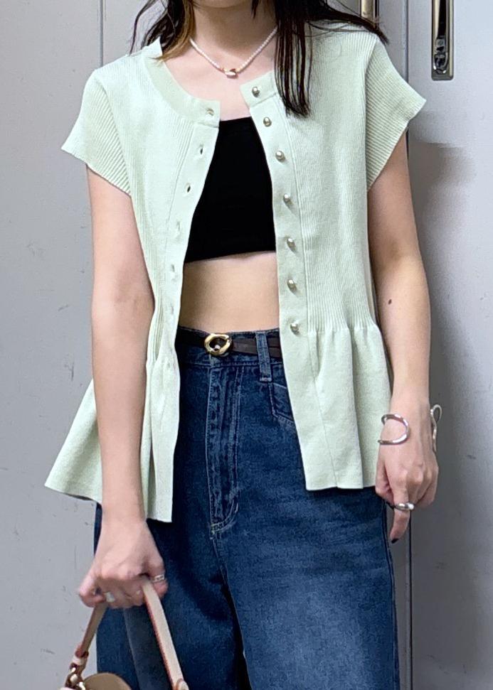 シルエットを綺麗に見せるためにボタンは閉めて着るのがベストかと思っていたペプラムカーディガンですが、開けて着てもとても可愛かったです!