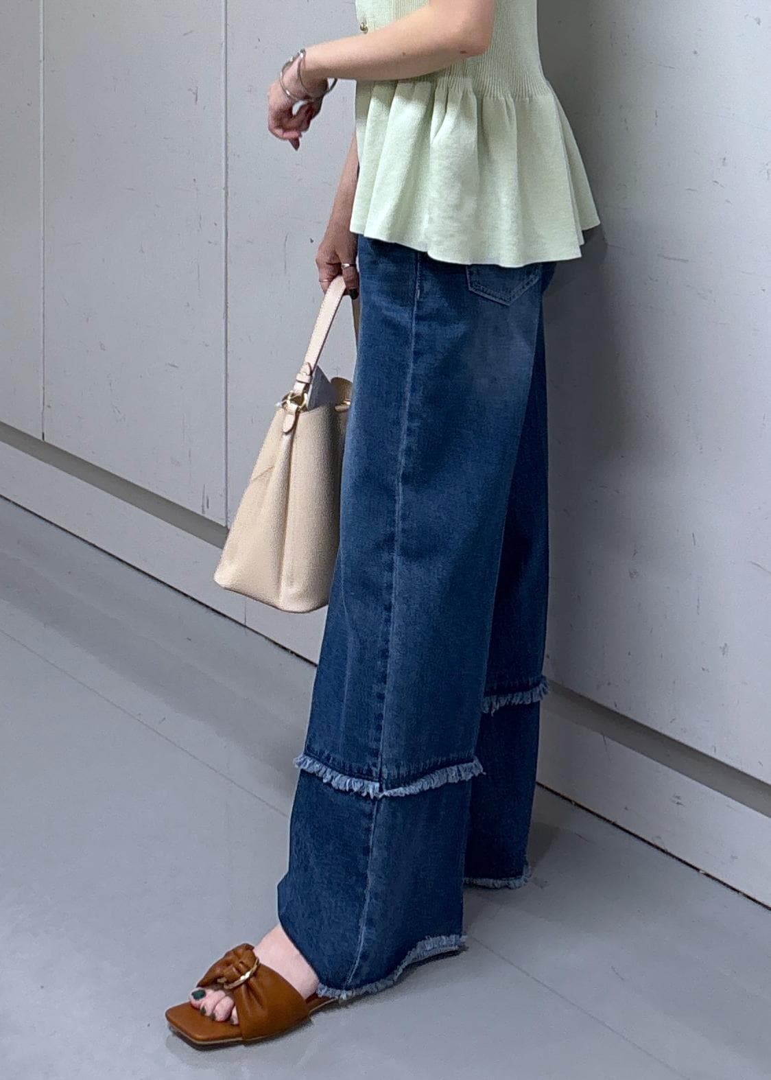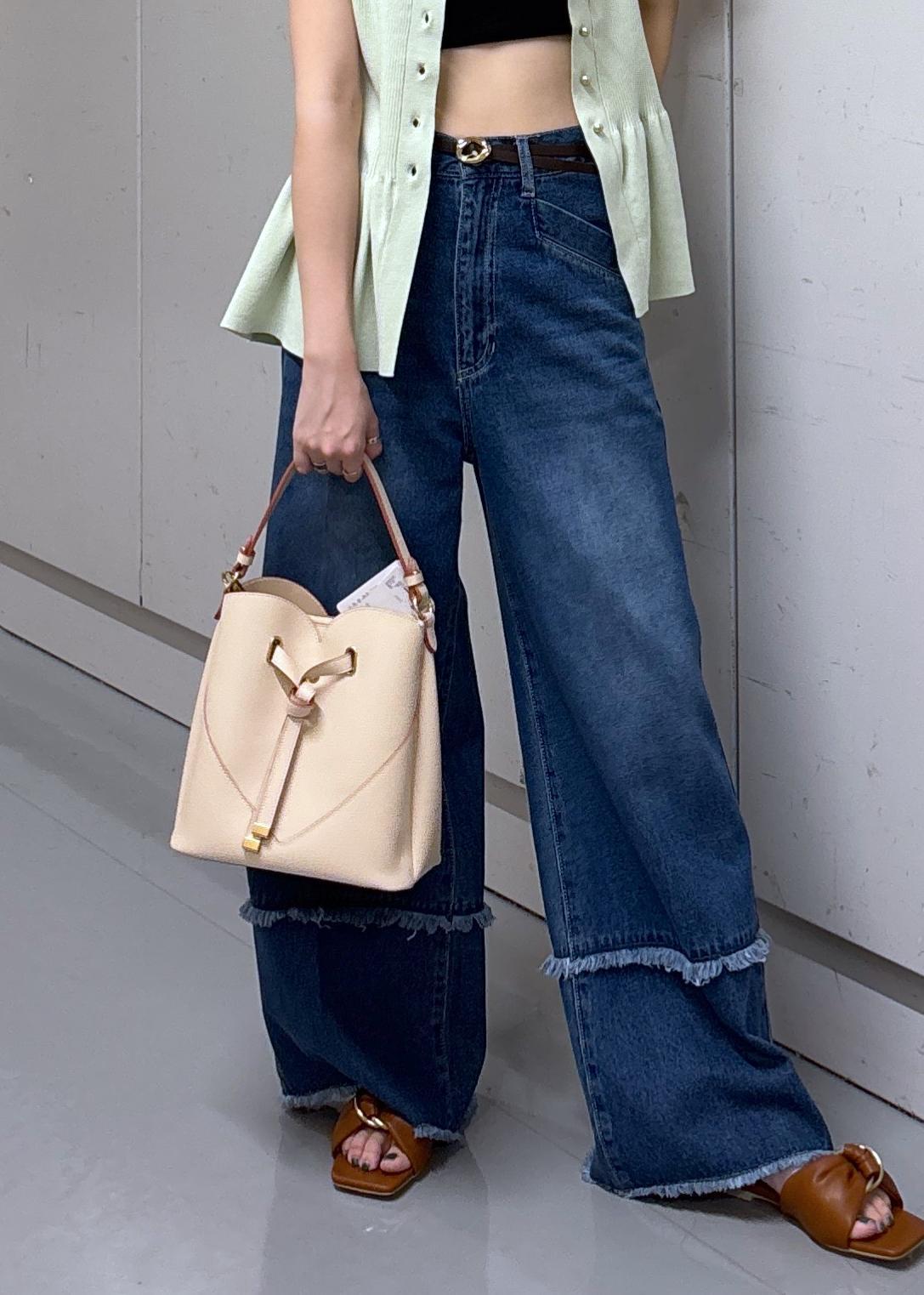 VISフリンジフレアデニムブルー系 / S¥4,395レビュー155cm、Sサイズ着用。ベルトなしでもフィット感のあるウエストで、丈はペタンコ靴だと少し裾がつきそうなので少しのヒールがあると嬉しいなくらい!