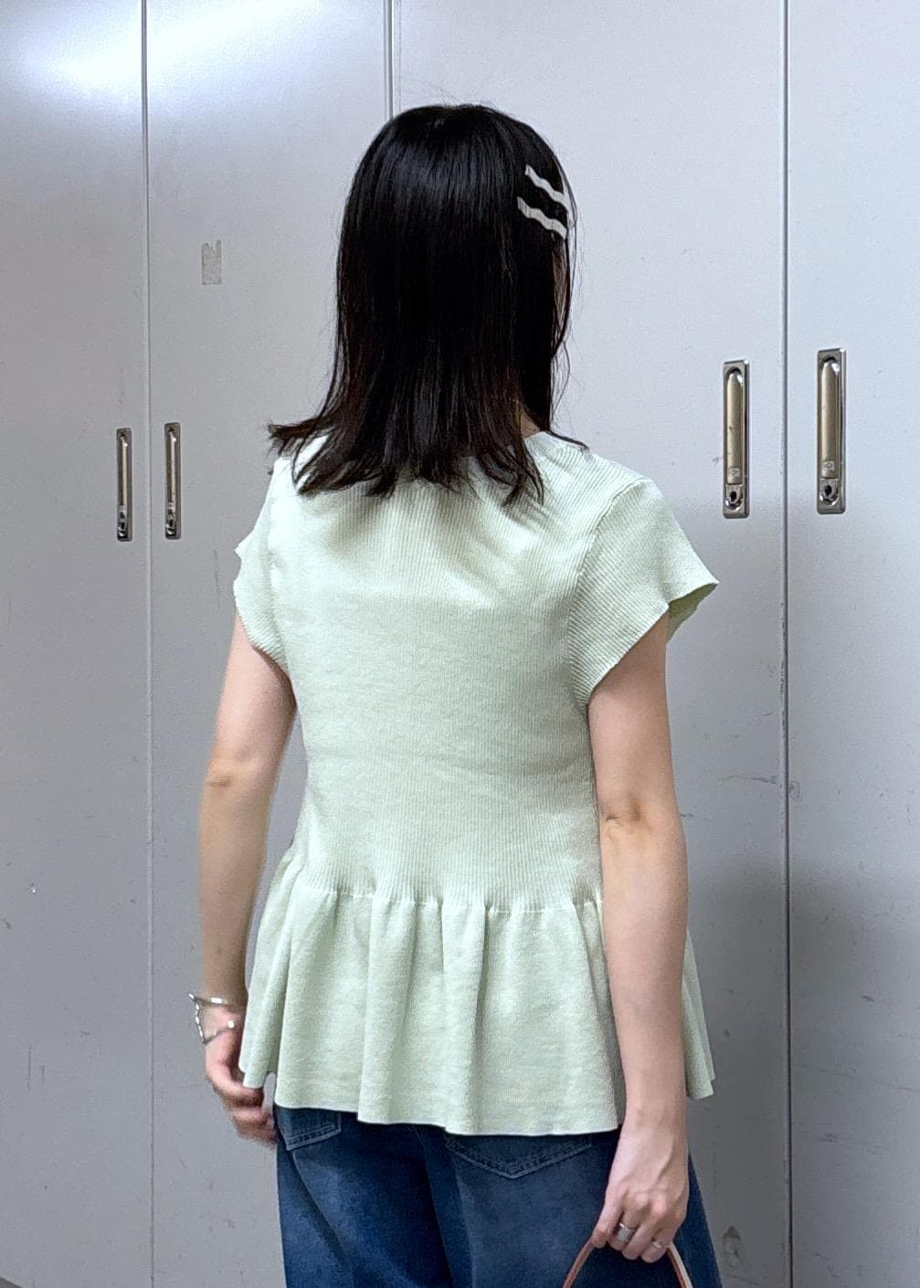 VIS【アンチピリング/洗える】美SMARTショートスリーブペプラムニットライトグリーン / F¥5,489レビューショートスリーブで少し型に乗っかる袖感が可愛い!