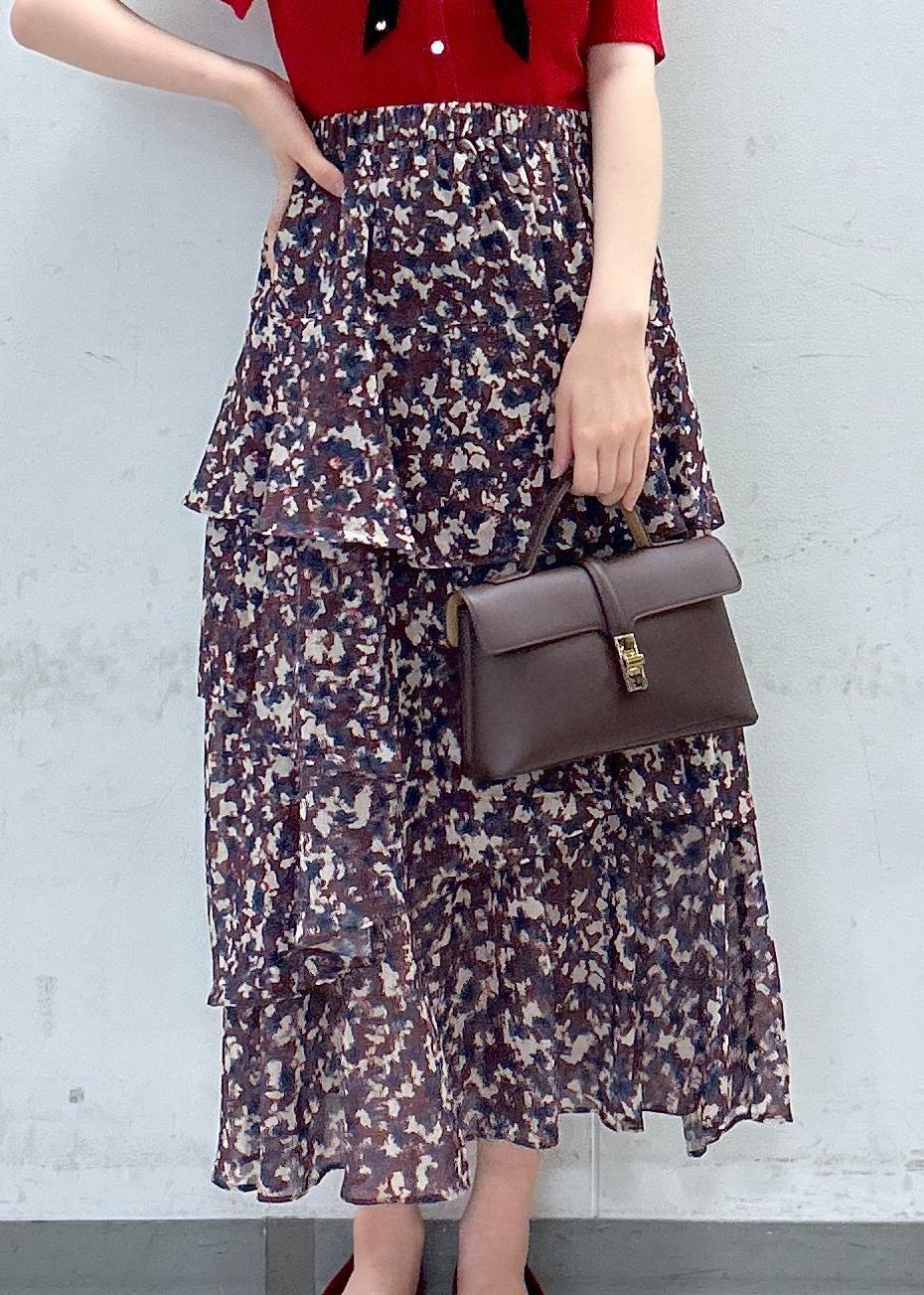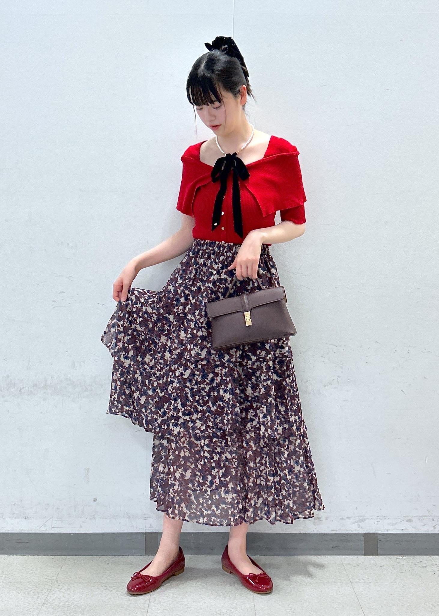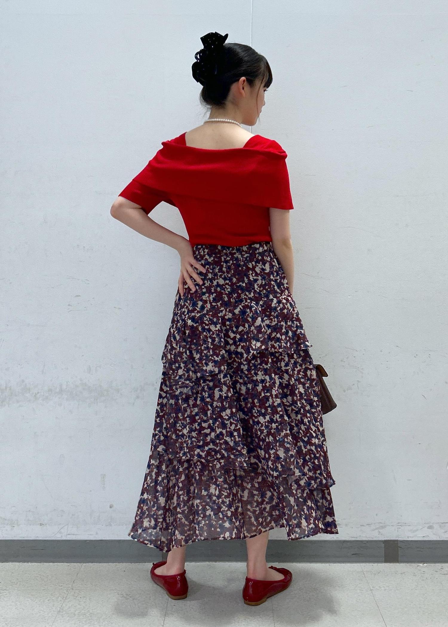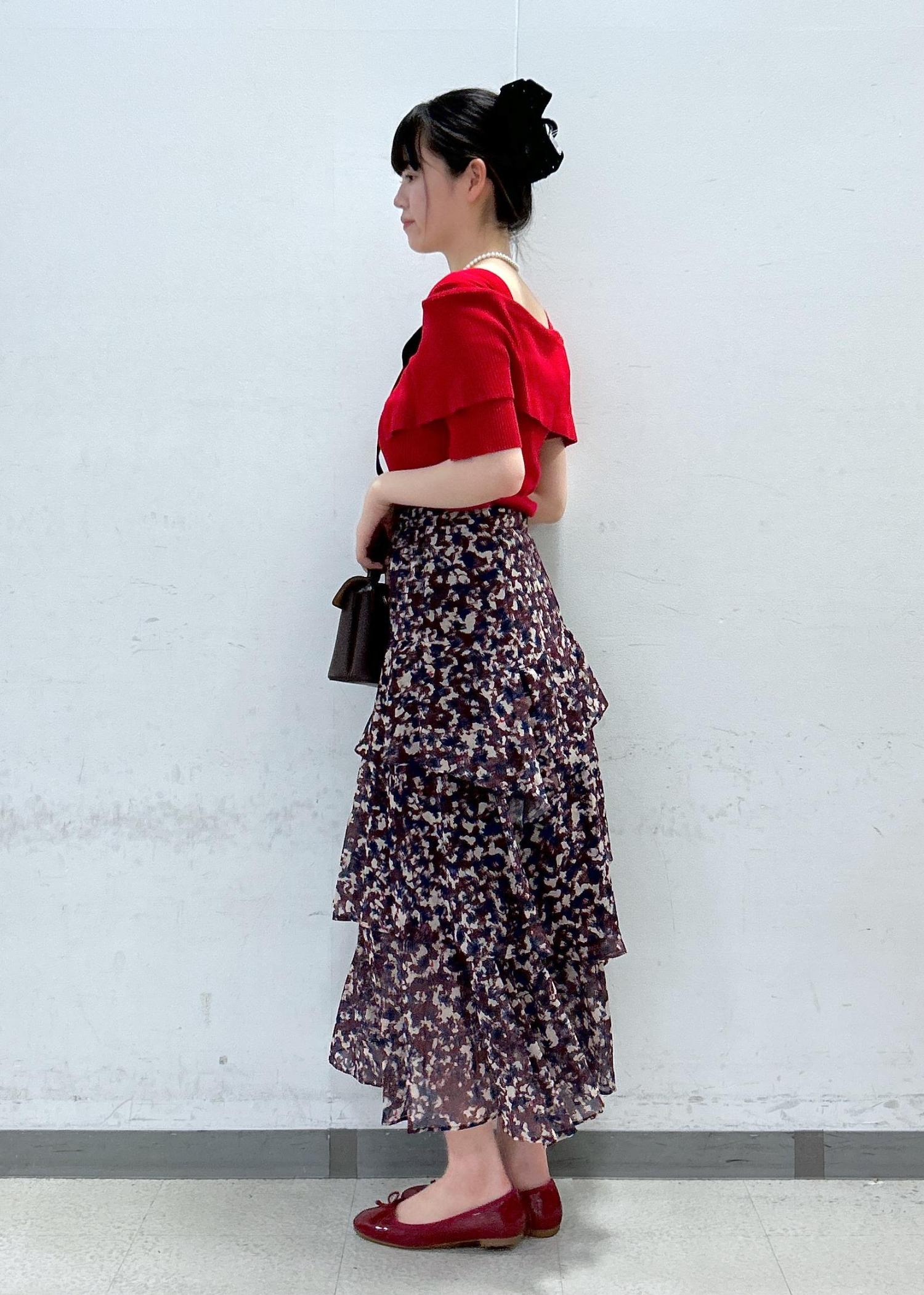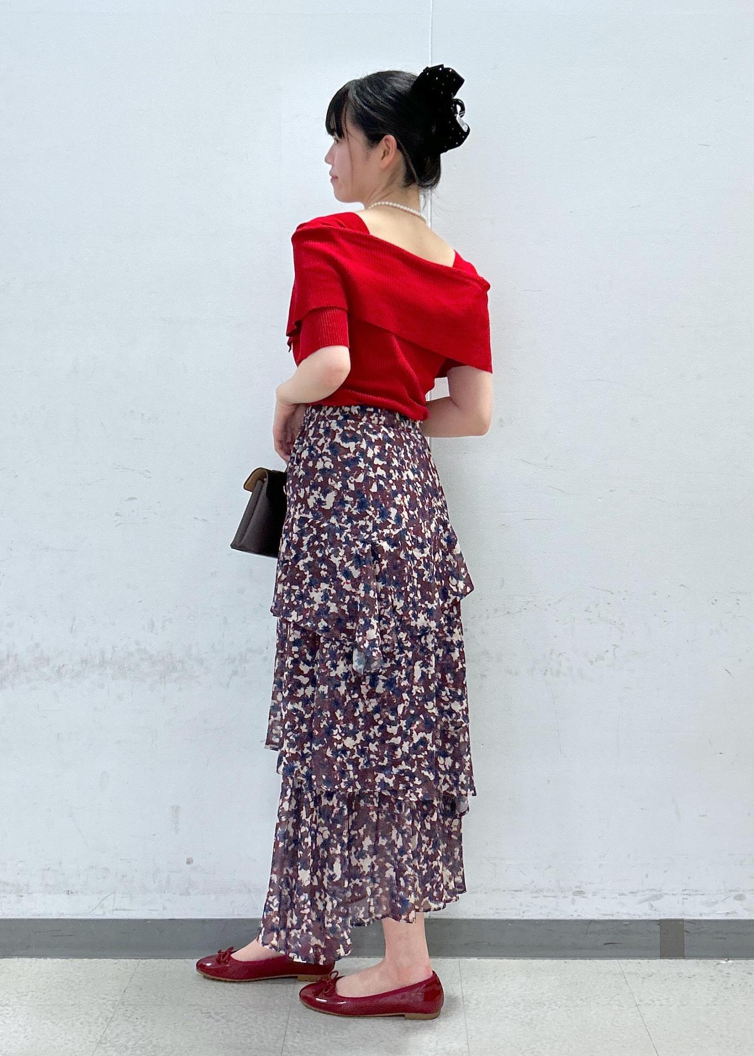VIS花柄アソート楊柳ティアードスカートブラウン系 / F¥4,613レビュー軽くてふんわりとした楊柳素材で、4段のフリルがそよそよ揺れる感じがとても女性らしくフェミニンなスカートです。身長166センチで足首がしっかり出るくらいの丈感です。フリルがアシンメトリーなのでどこを正面にしても様になります☺︎☺︎
