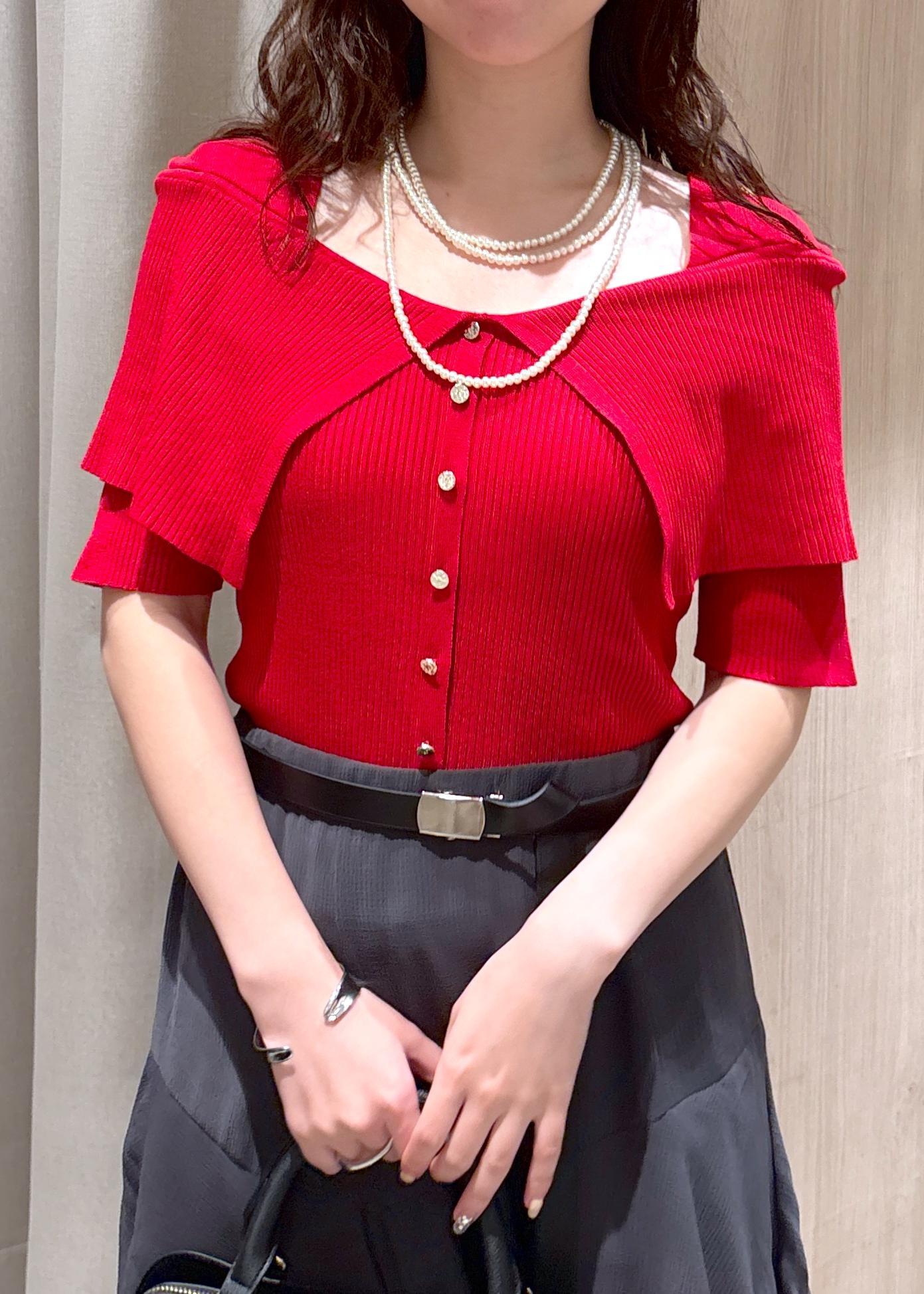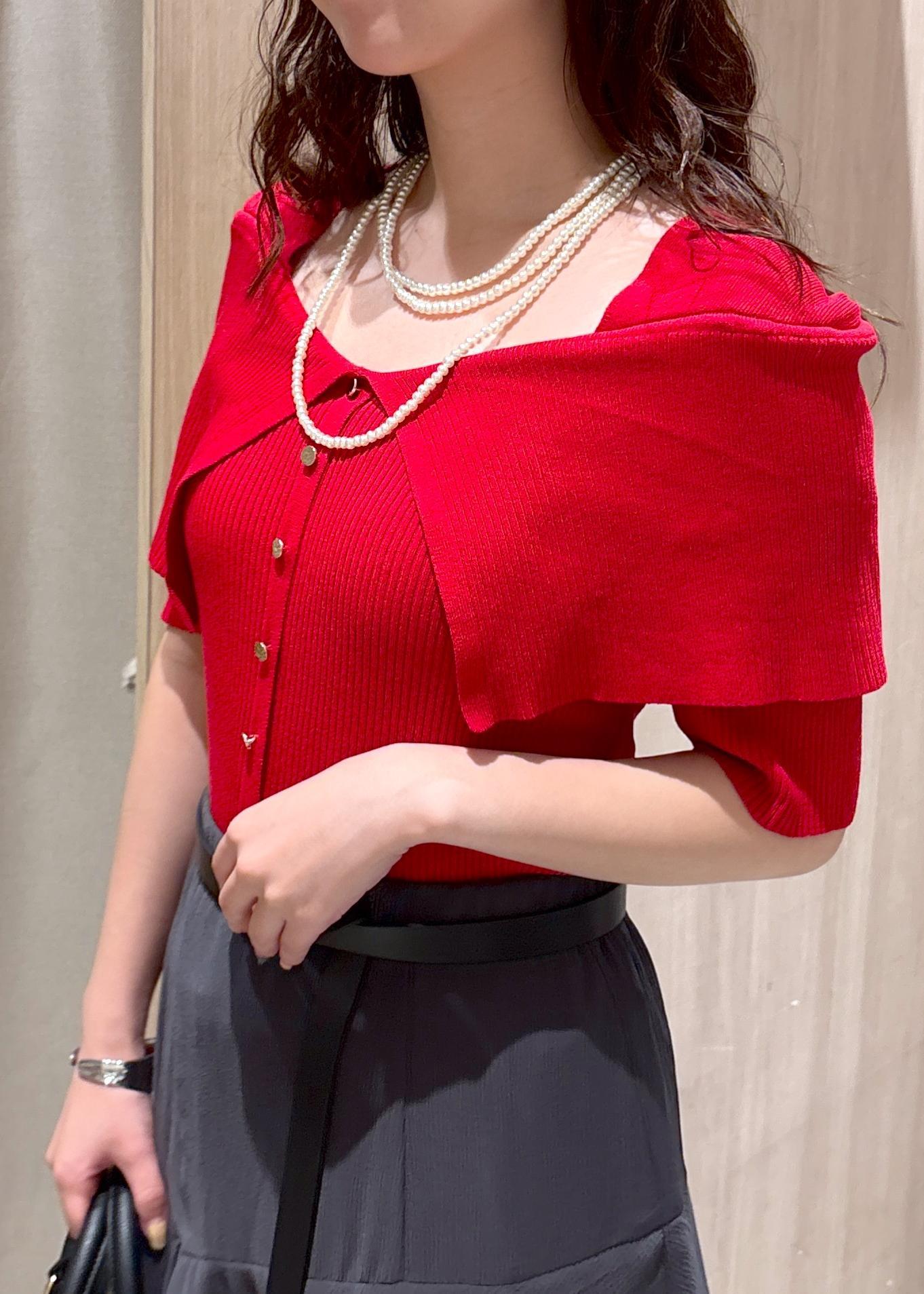 VISビックカラーオフショルハーフスリーブニットレッド / F¥2,963レビュー骨格ストレートの方も衿が二の腕をカバーしてくれますし、首元もあいているのでスッキリ見えします!◎