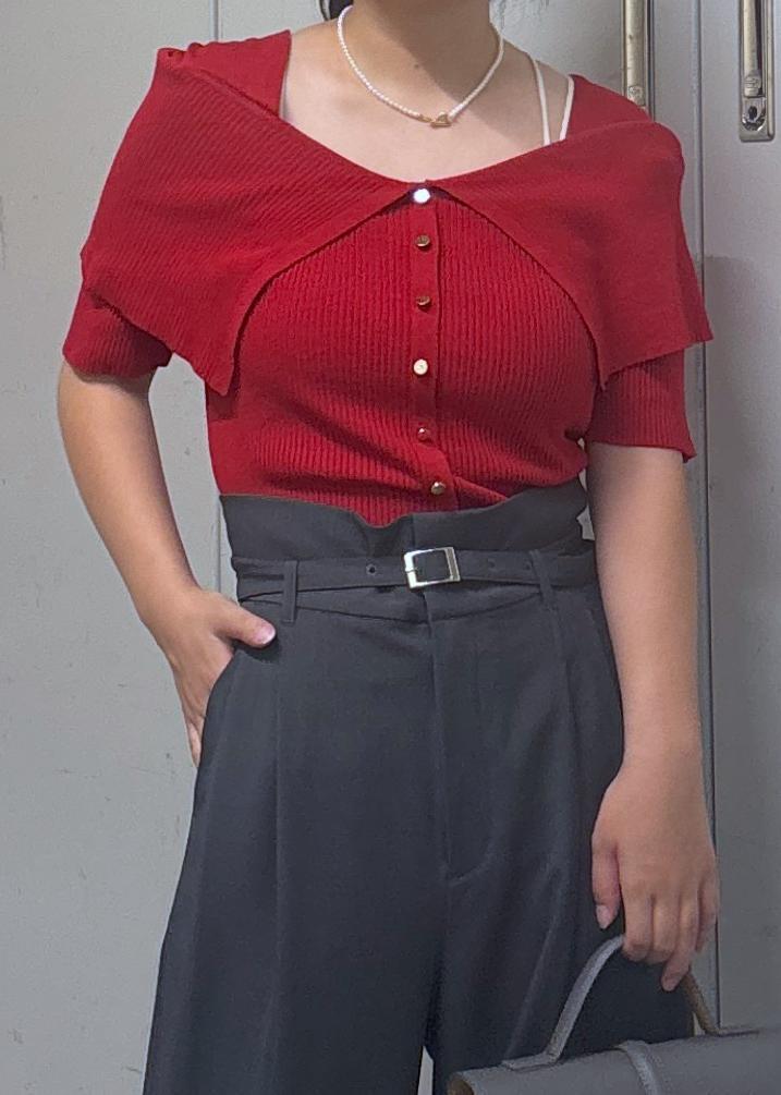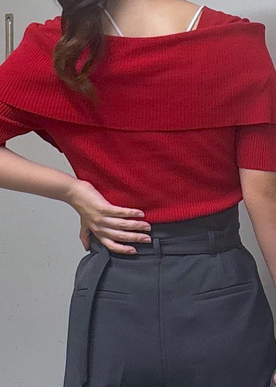 VISビックカラーオフショルハーフスリーブニットレッド / F¥2,963レビュー柔らかい素材感で着心地がいいで◎