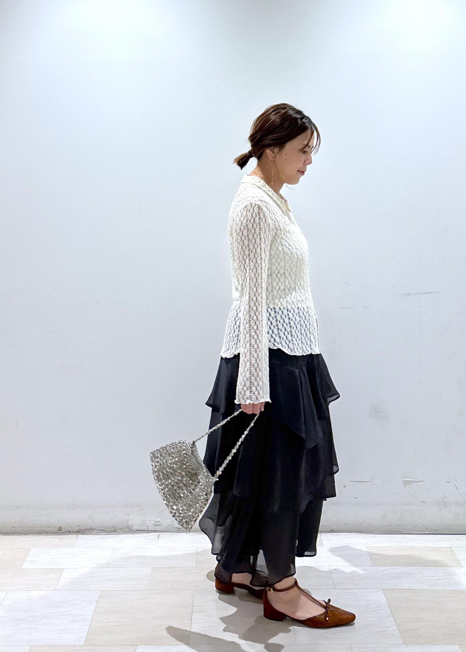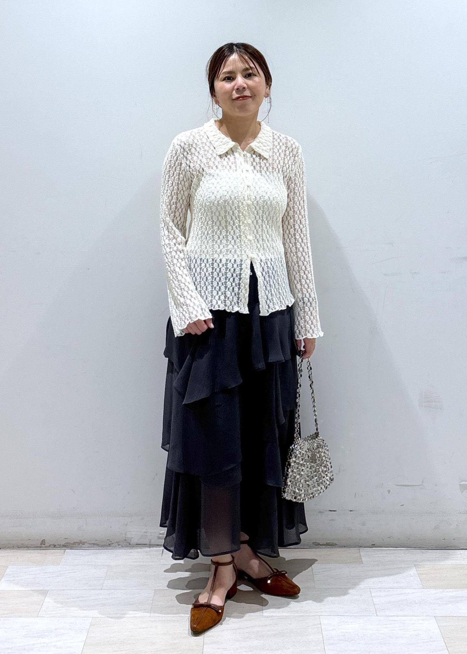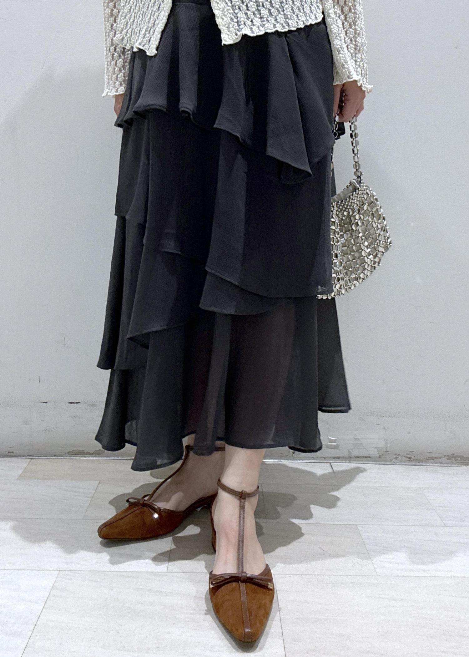 VIS花柄アソート楊柳ティアードスカートチャコール / F¥4,613レビューひらひらと動きのあるデザインスカートはどんなトップスにも合わせやすい一枚です。