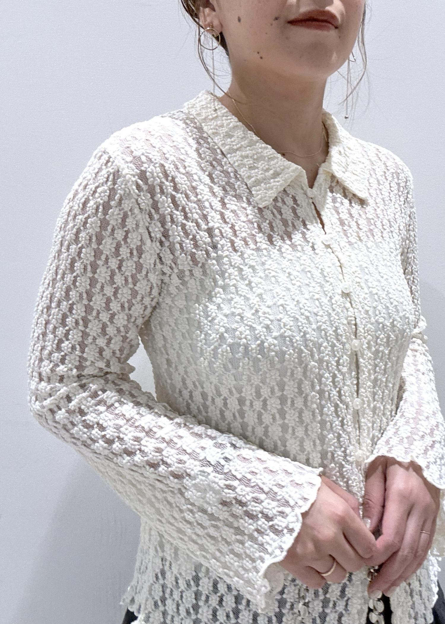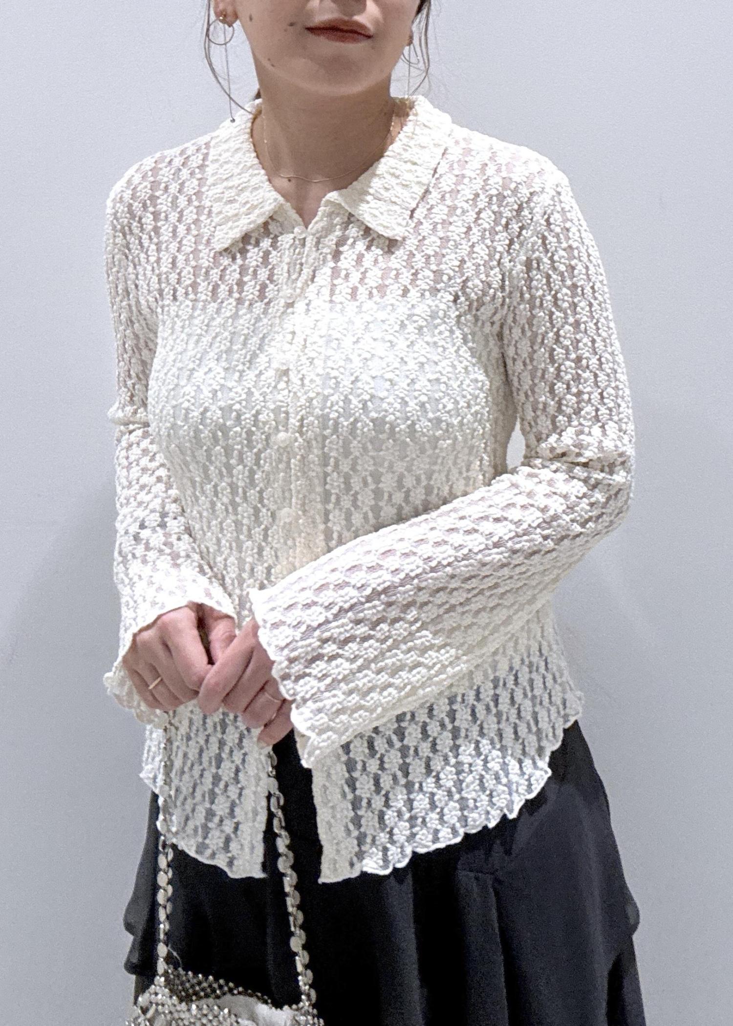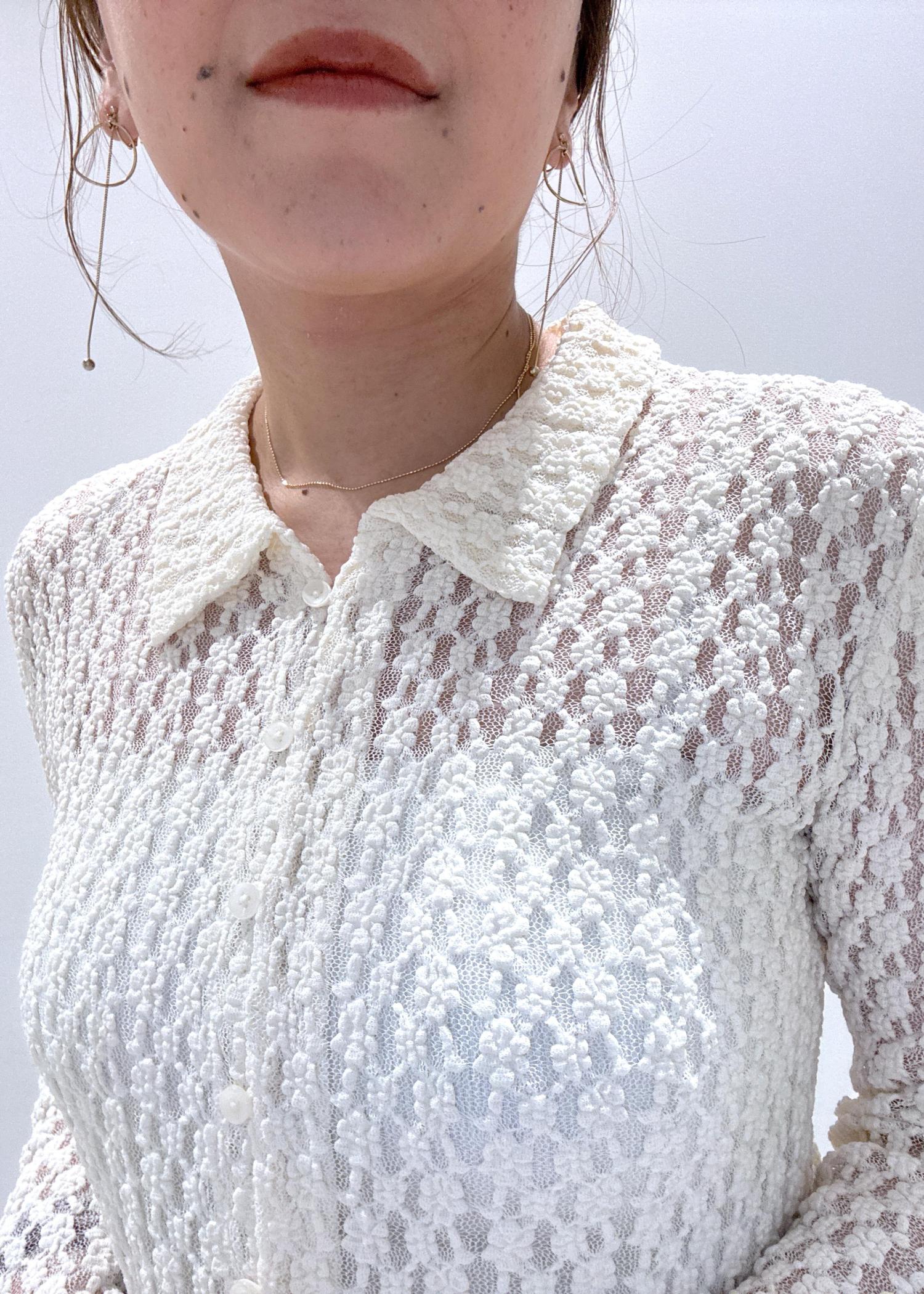 VISレースポロ襟カーディガンキナリ / F¥3,842レビューカットソー素材のレースカーデなのでサラッとしており今から秋に向けて着やすいです。
