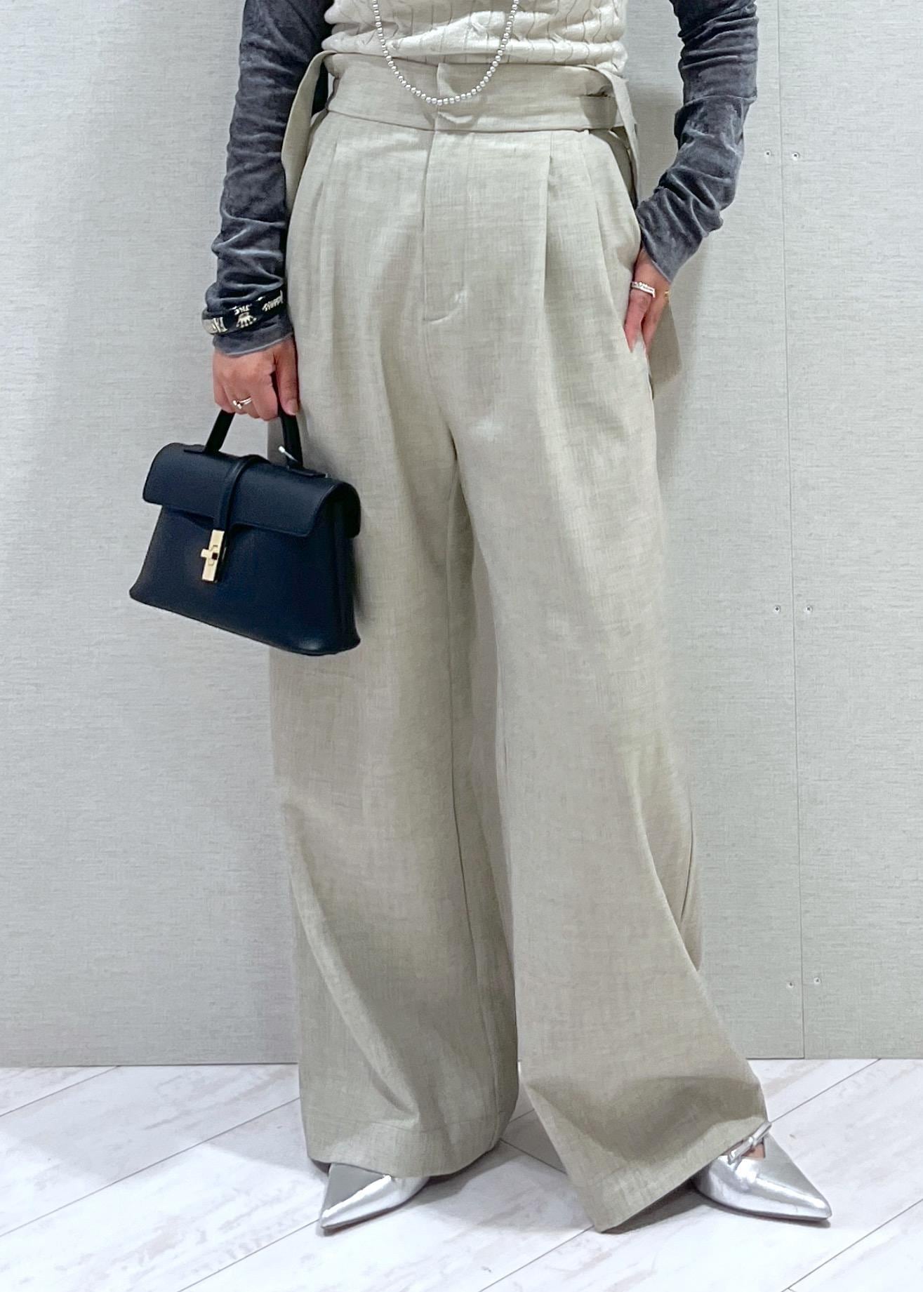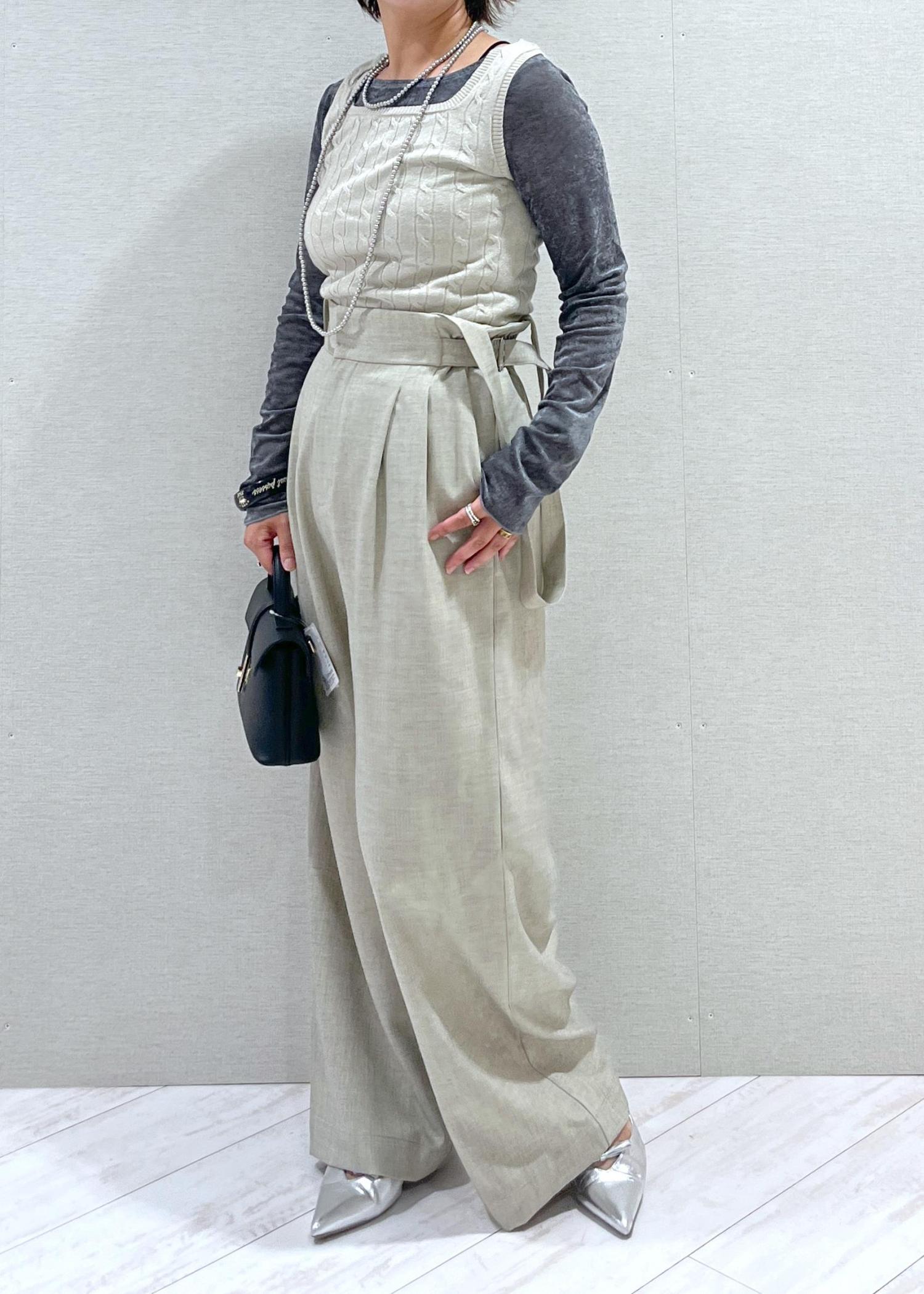 タック入りなので腰回りのゆったりさもあり、かなりワイドなので脚のラインも拾わずきれいにお召し頂けます。
