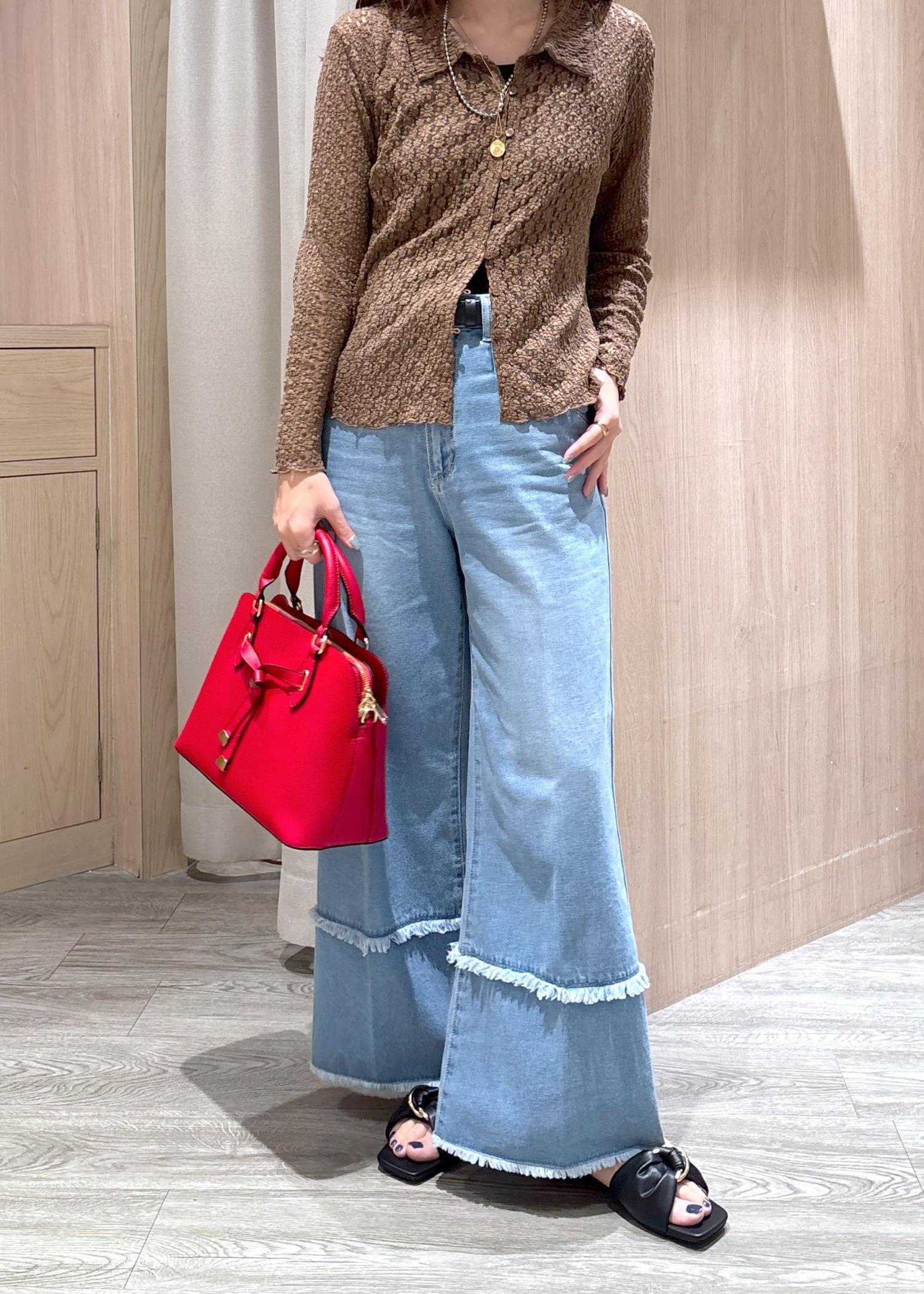ボタンを少し開けてスッキリ着るのがオススメです。