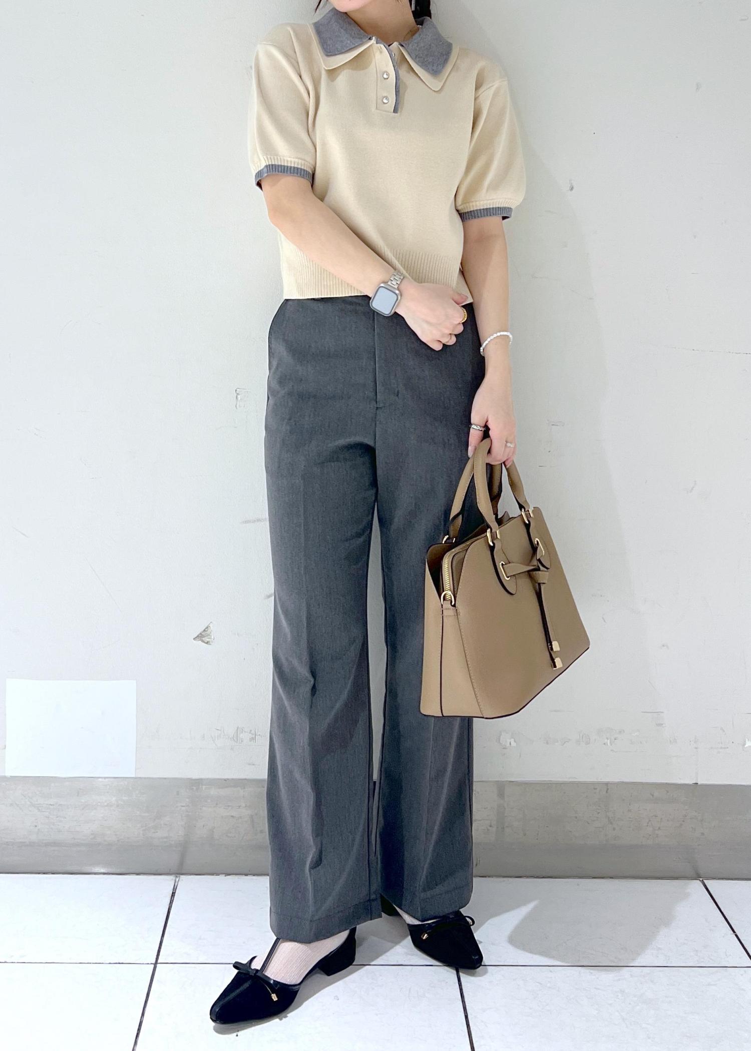 ダブルカラーのトップスが可愛いオフィスコーデにしてみました✨濃いめのデニムなどと合わせてプライベートにも使えるアイテムなので1着あればいろんなコーデと合いそうですね☺︎