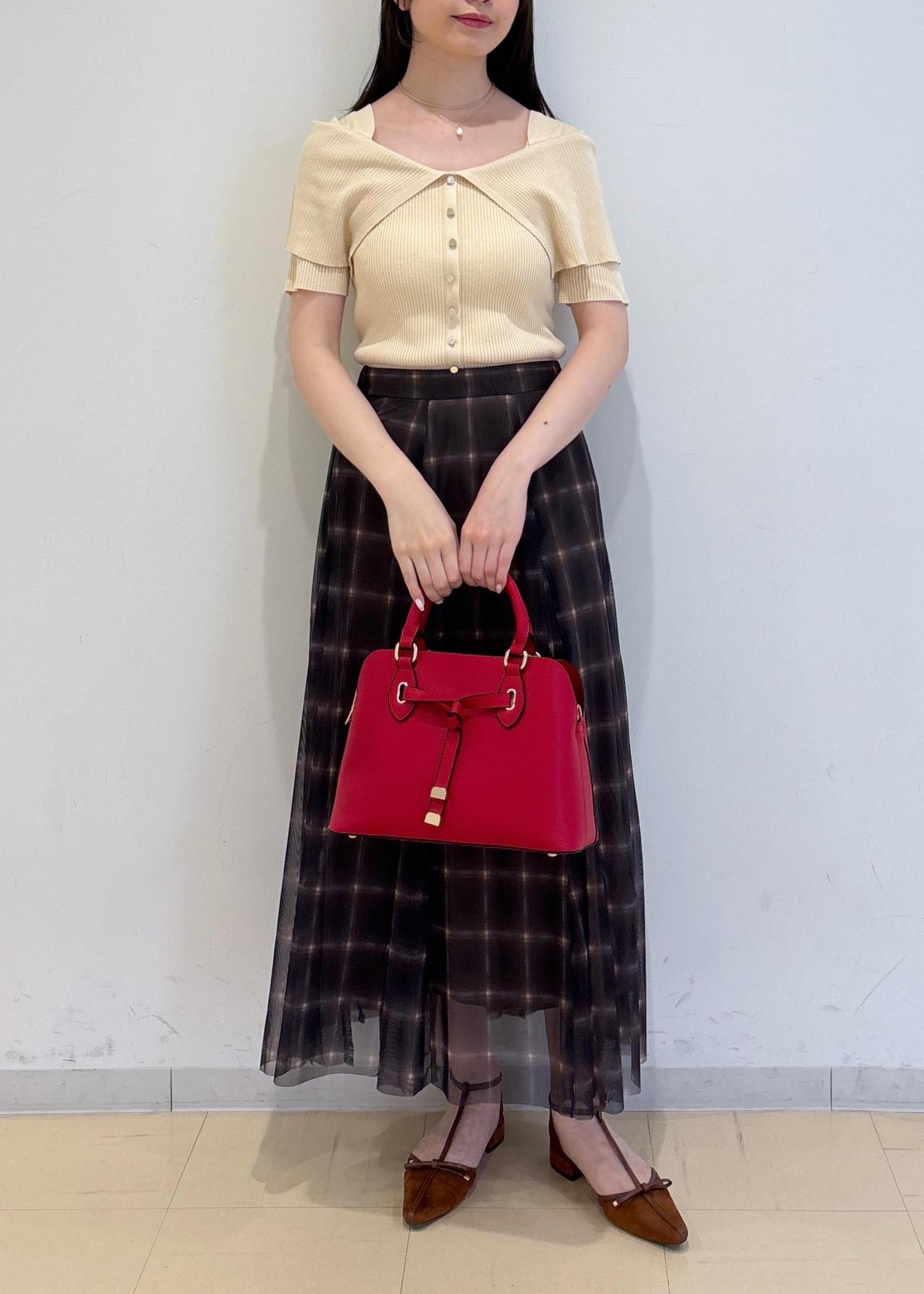 女性らしいオフショル風のトップスに、秋を意識してチェック柄のスカートを合わせました!