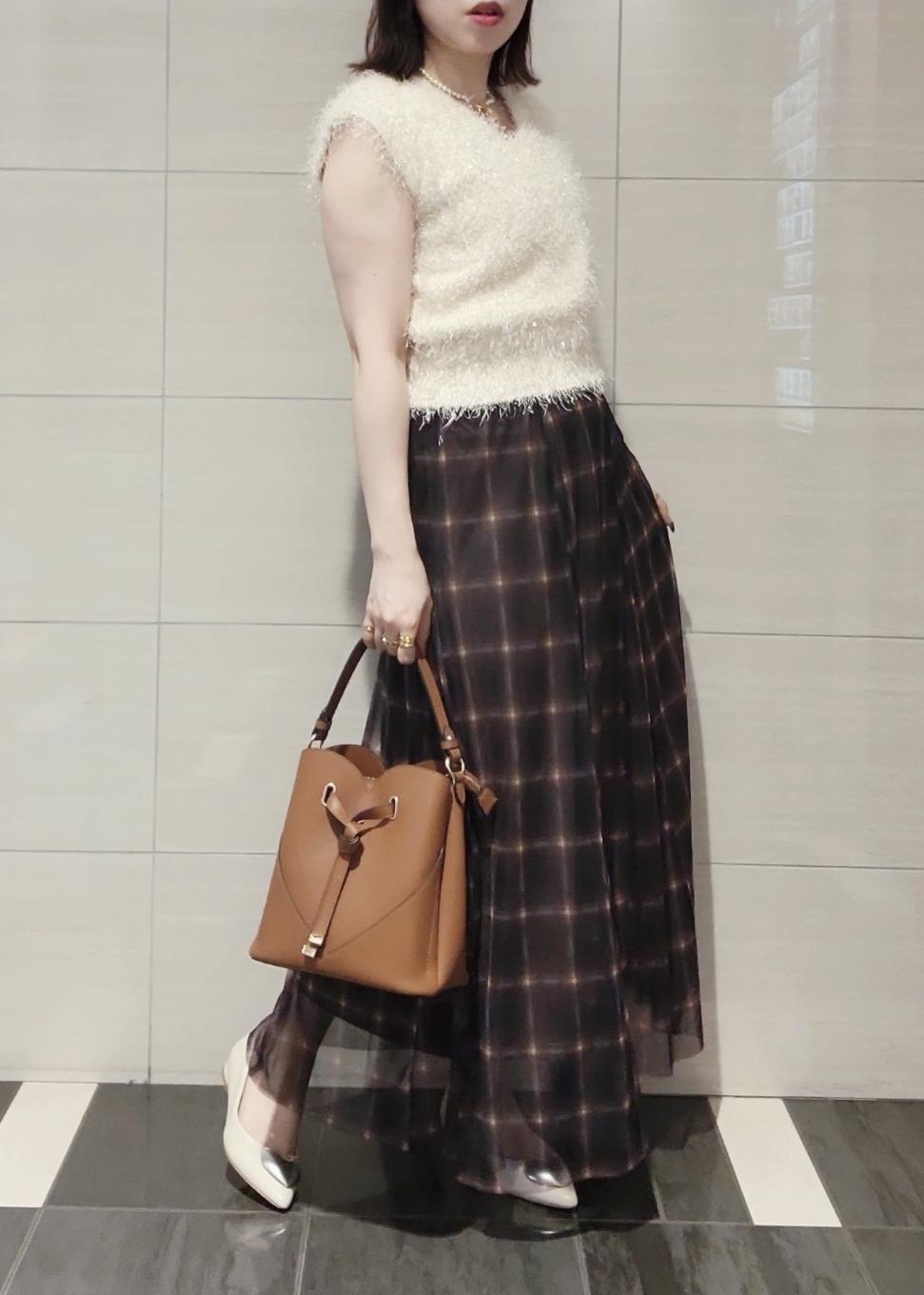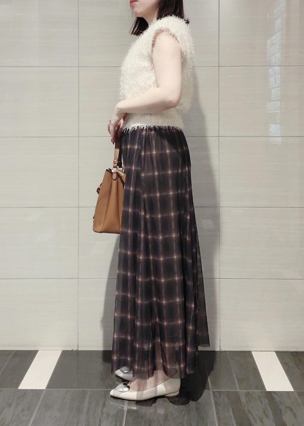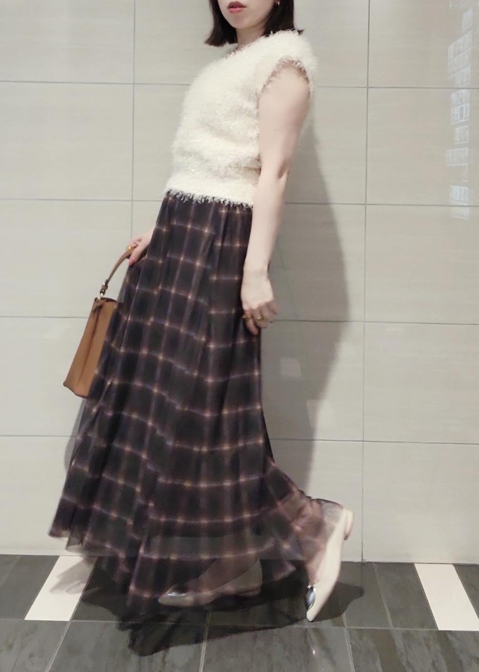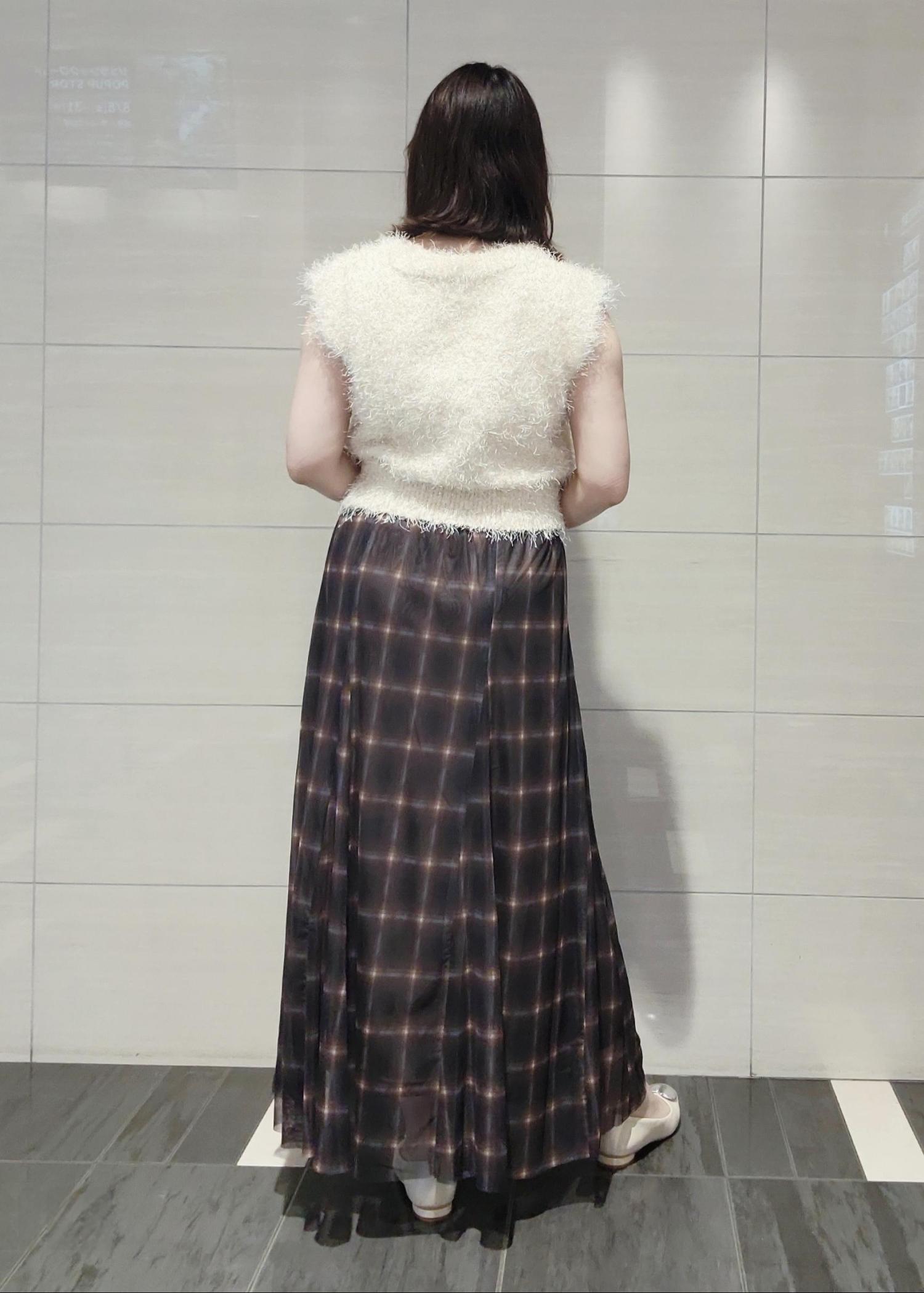 VIS【洗える】チュールプリントチェックスカートダークブラウン系 / F¥4,612レビュー程よいシアー感が涼しげな印象になるので、夏から秋まで使えるデザインです!