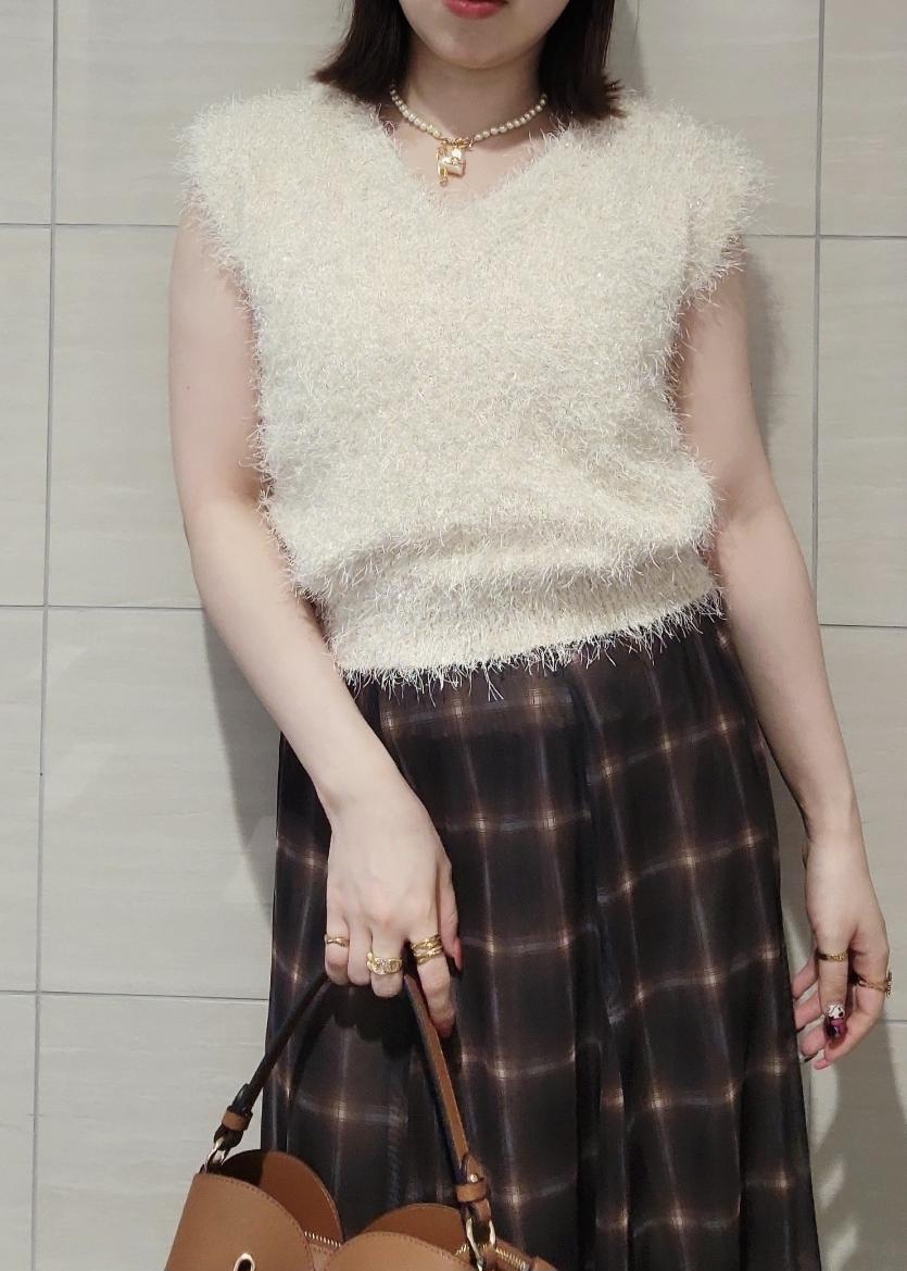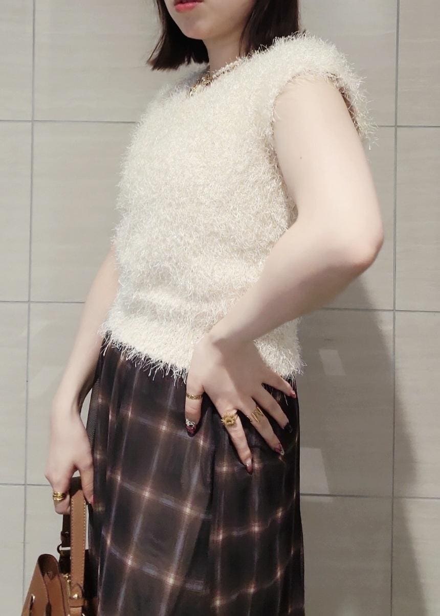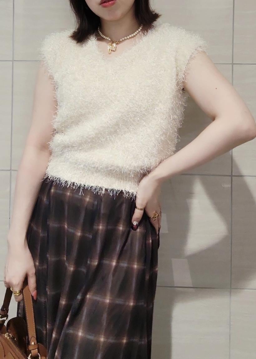 VIS【WEB限定サイズ:MT/着丈が選べる】【洗える】フェザーヤーンニットベストキナリ / M¥3,293レビュー程よいラメ感のある素材で、毛足のあるニットでチクチク感はなく肌当たりが良いです。