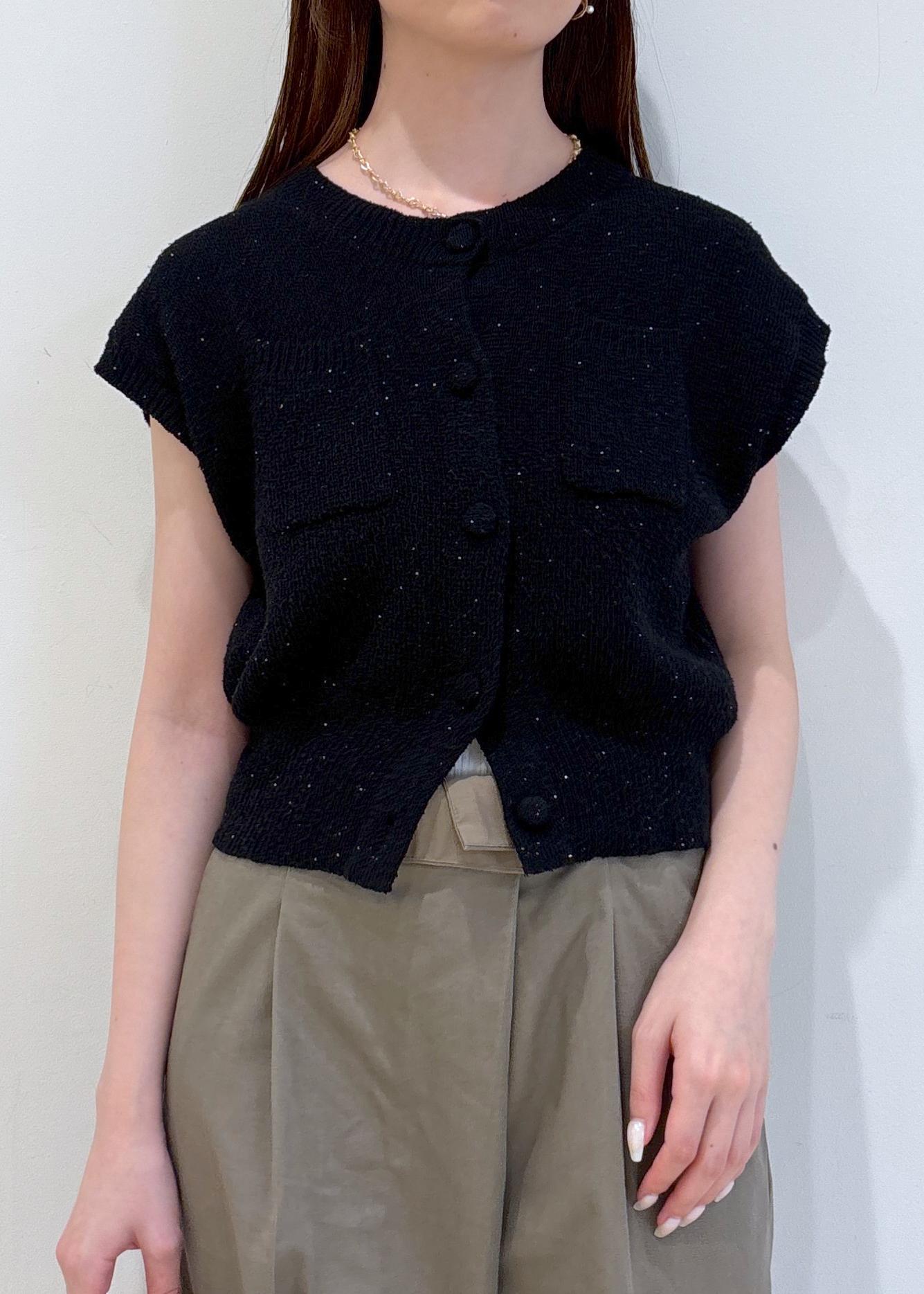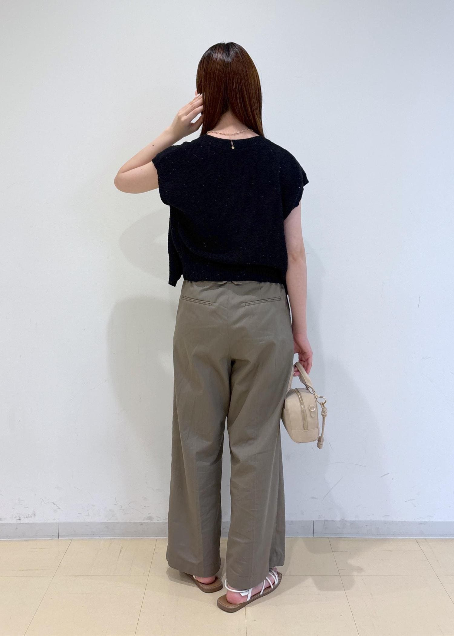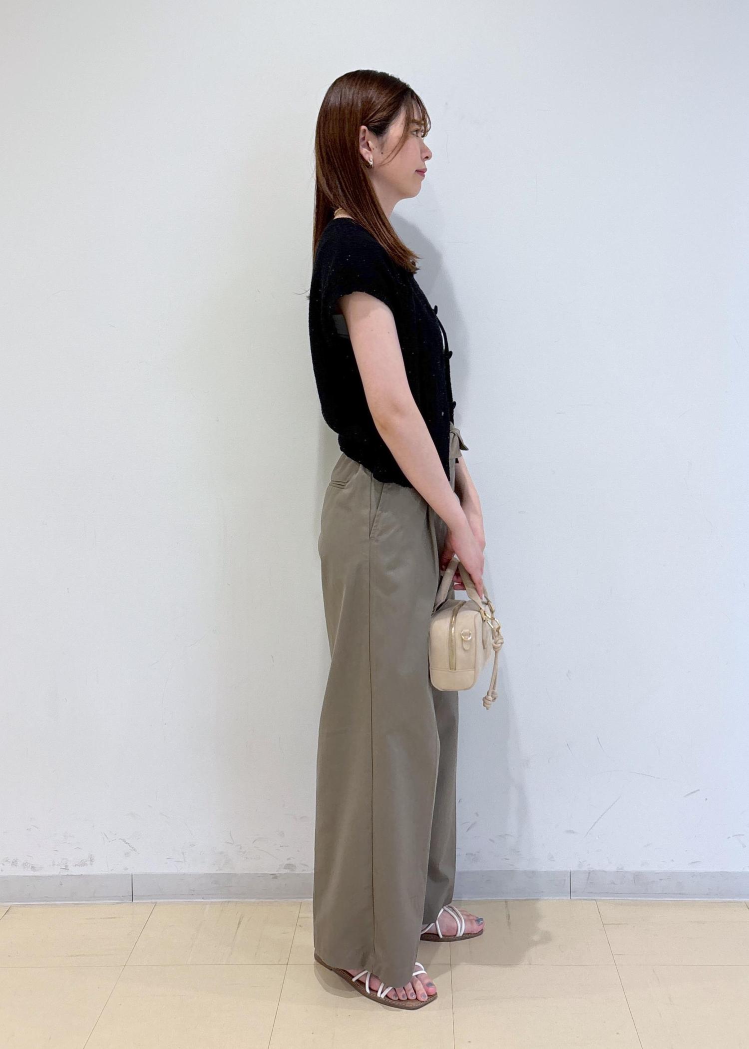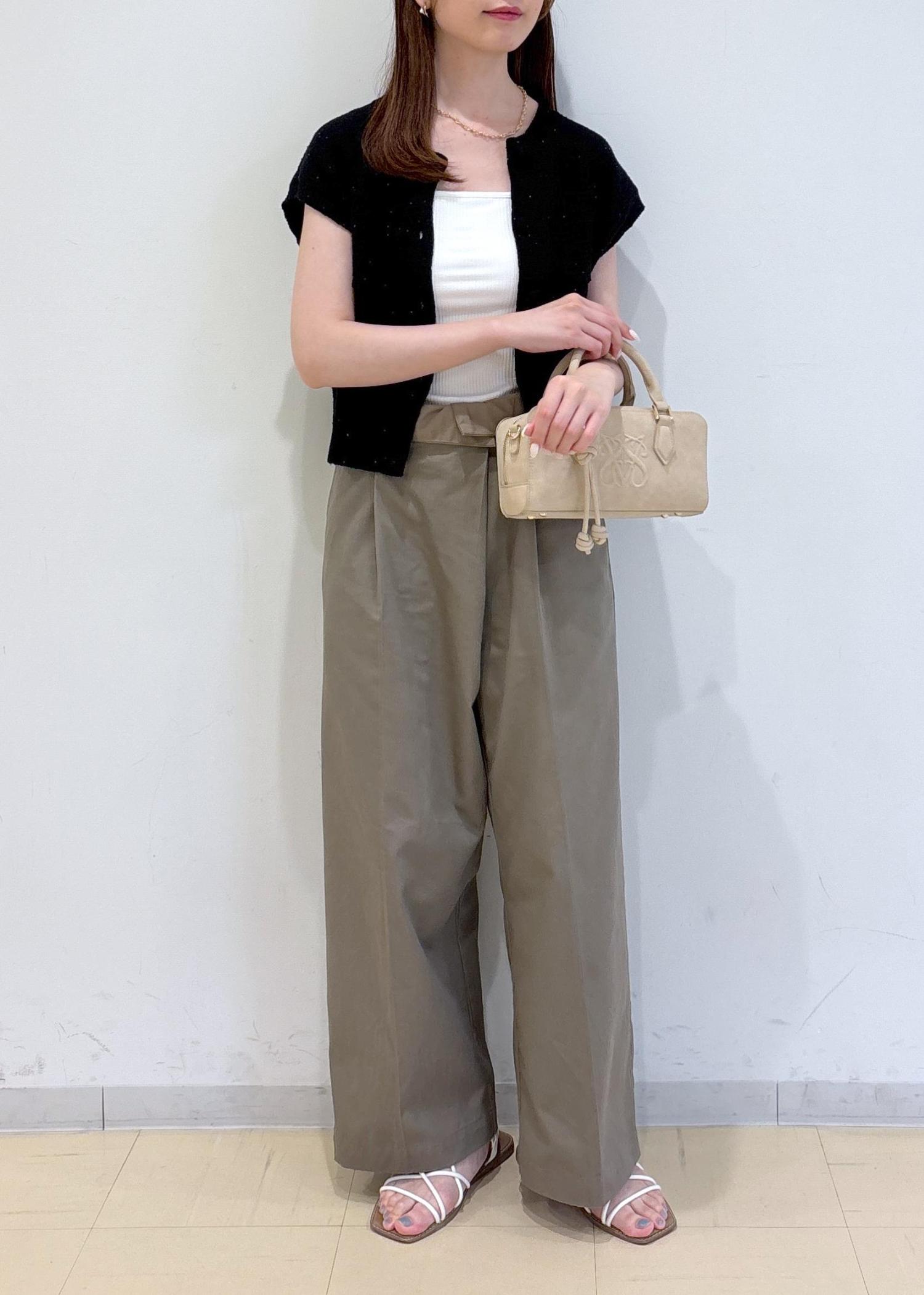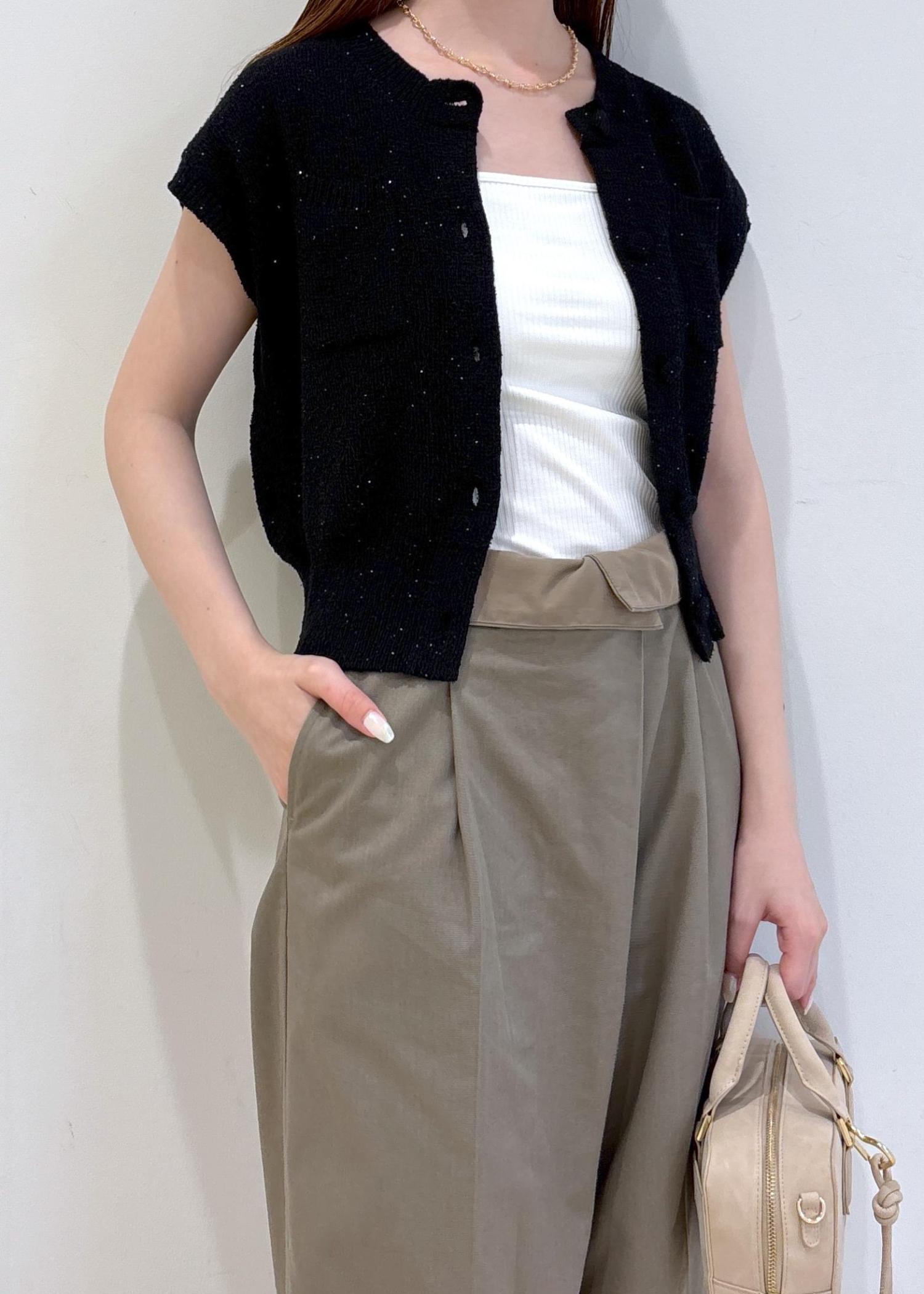 トップスは軽さを意識してカーディガンを羽織りで使い首元を肌見せしました。細かいスパンコールのキラッと感が可愛い☺︎