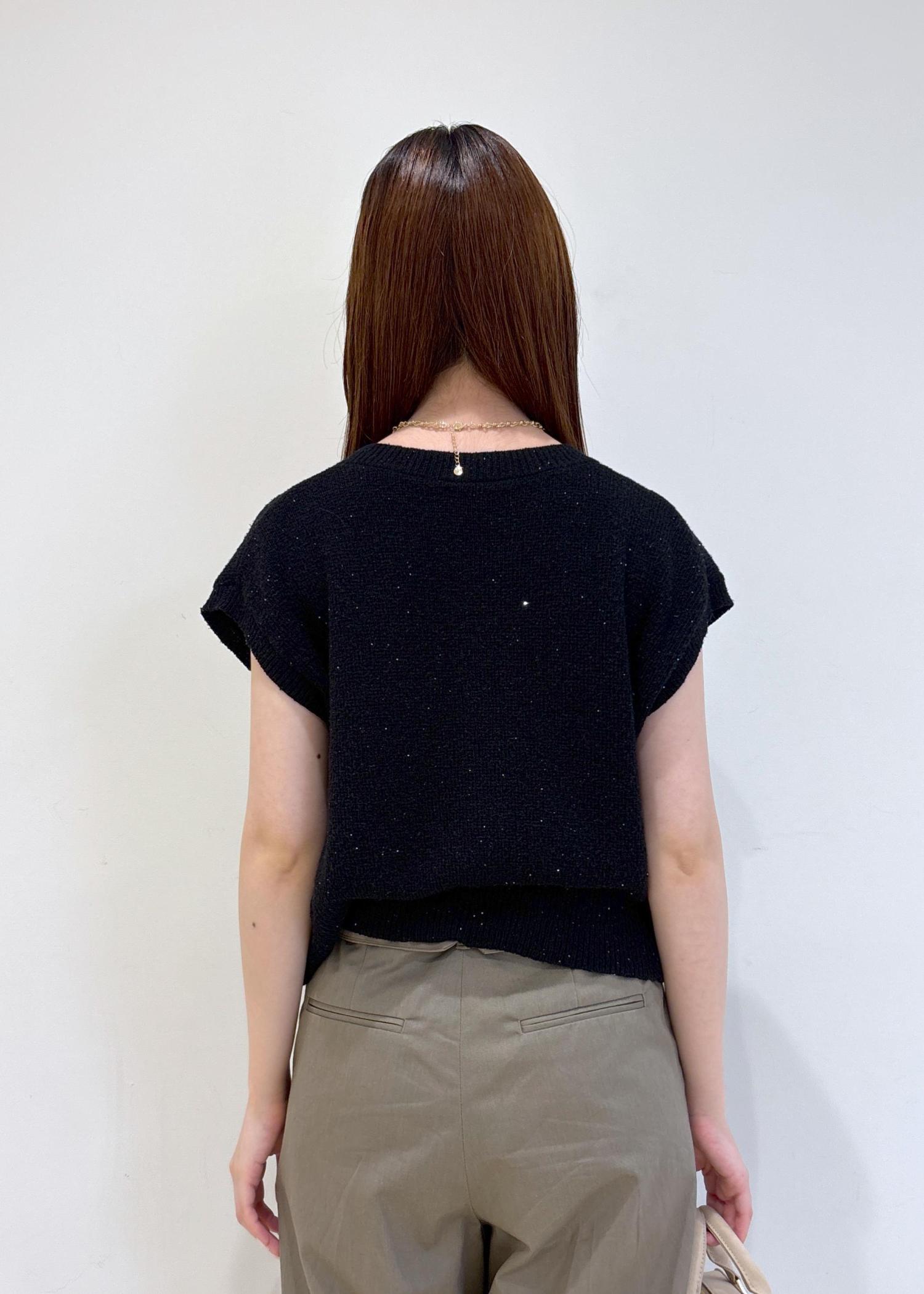 小さめのスパンコールが入っていてキラッと1枚で華やかになります。チクチク感もなくさらっと着用できます。