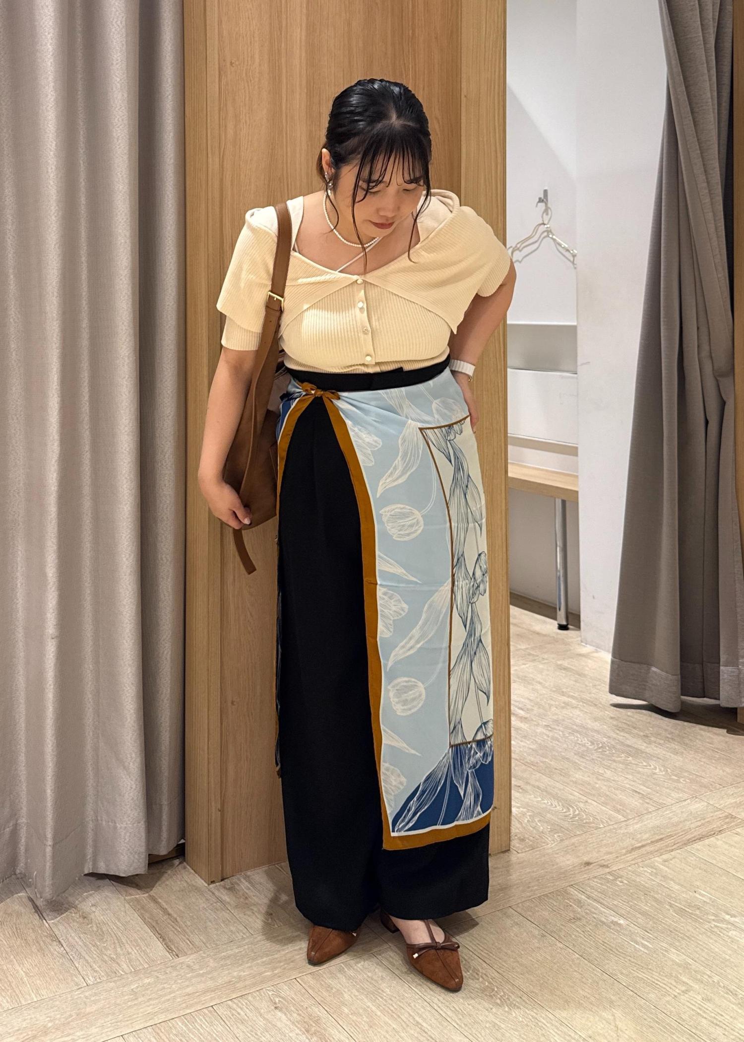 大きいサイズなので、腰に巻いたり、ビスチェとして使えたりするので使い回し力抜群です◎ -