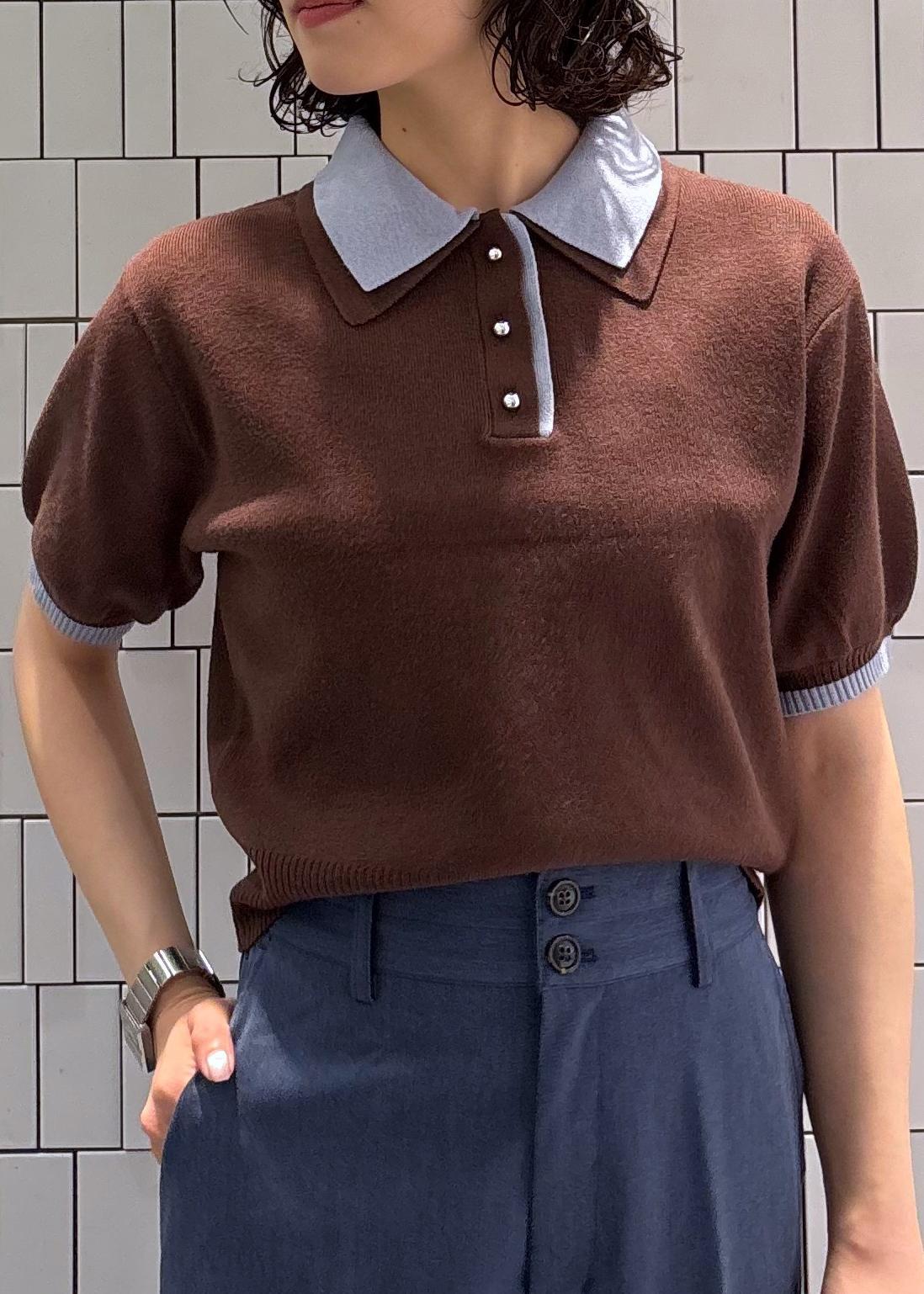 ポロ襟カーデは色の組み合わせがかわいいですჱ̒ ֊ ̫ ֊)