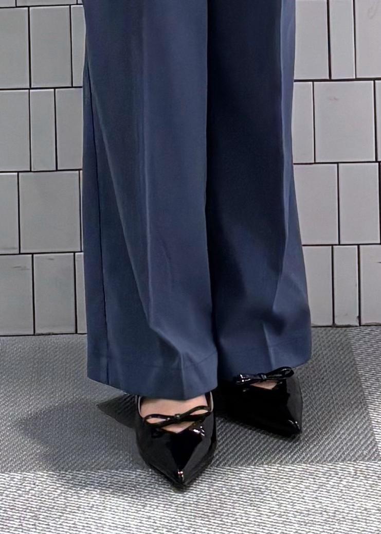 タイトすぎないのに脚のラインはスッキリ見えて縦長効果があります◎