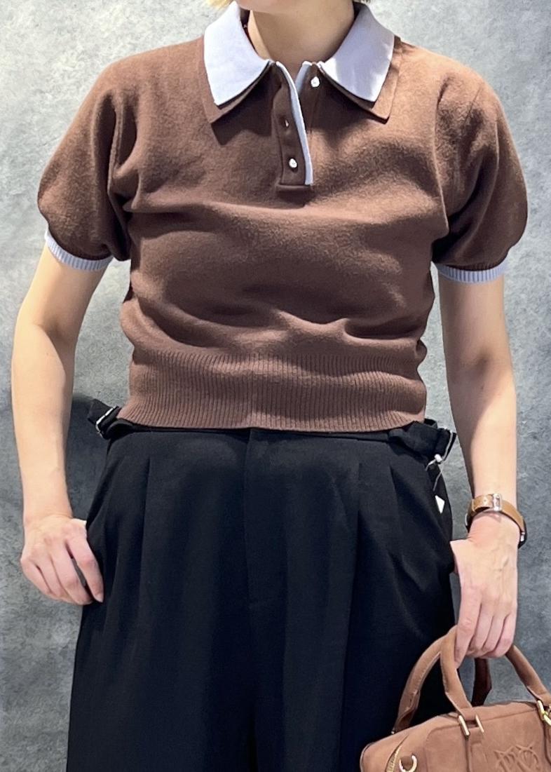 VISダブルカラーポロトップスブラウン / F¥5,929レビューSNSバズりすぎのニットが入荷しました!