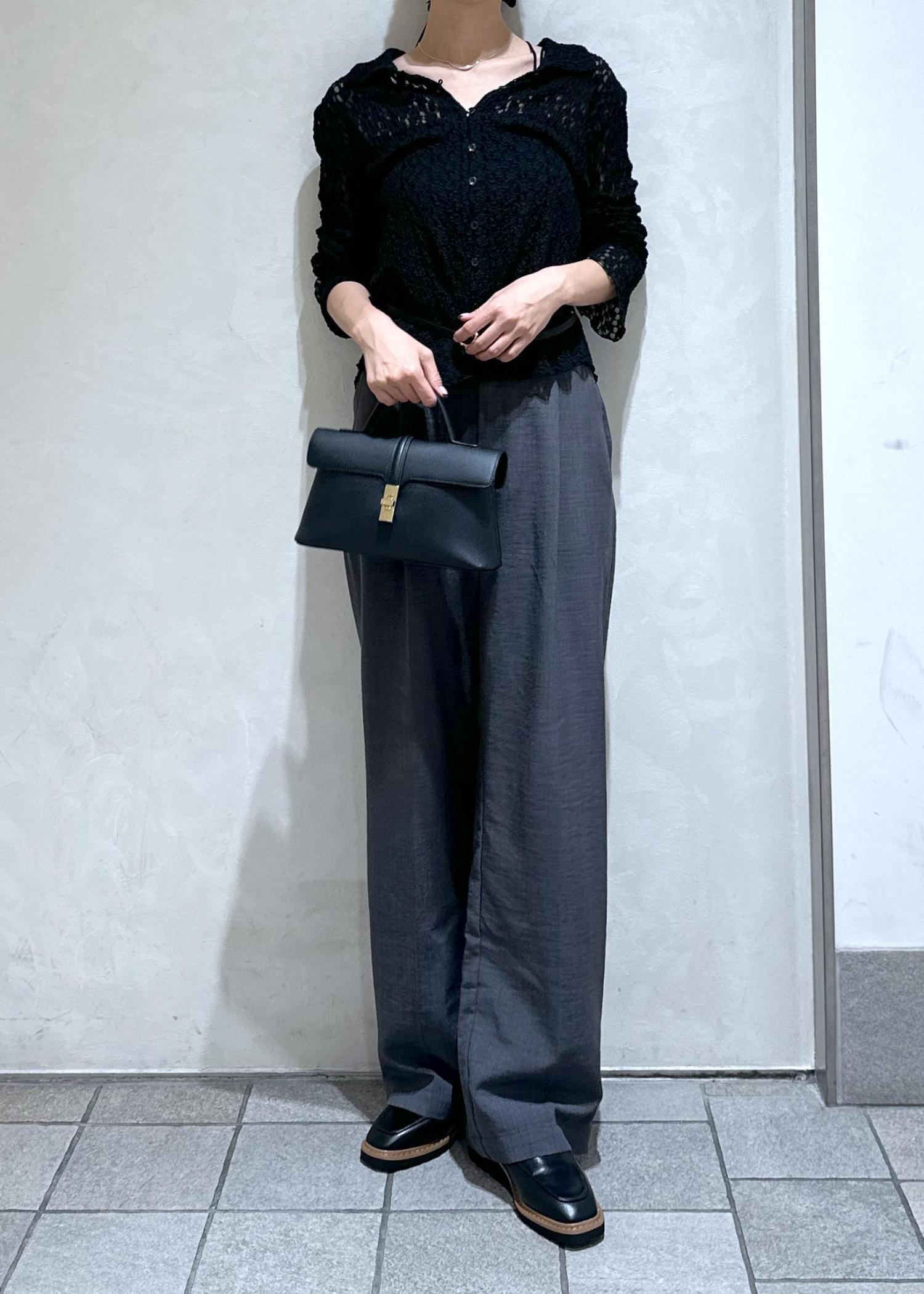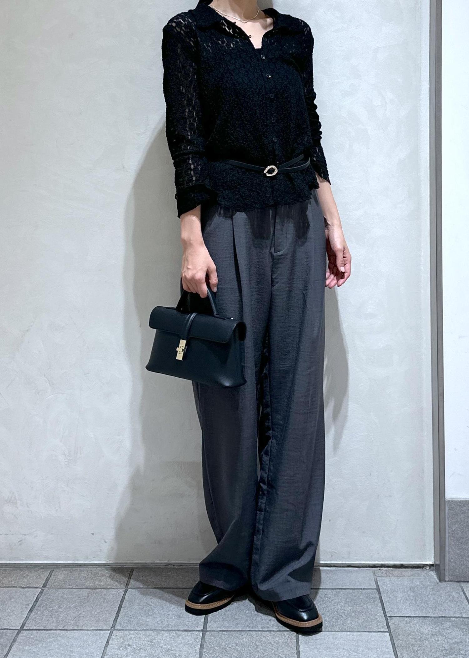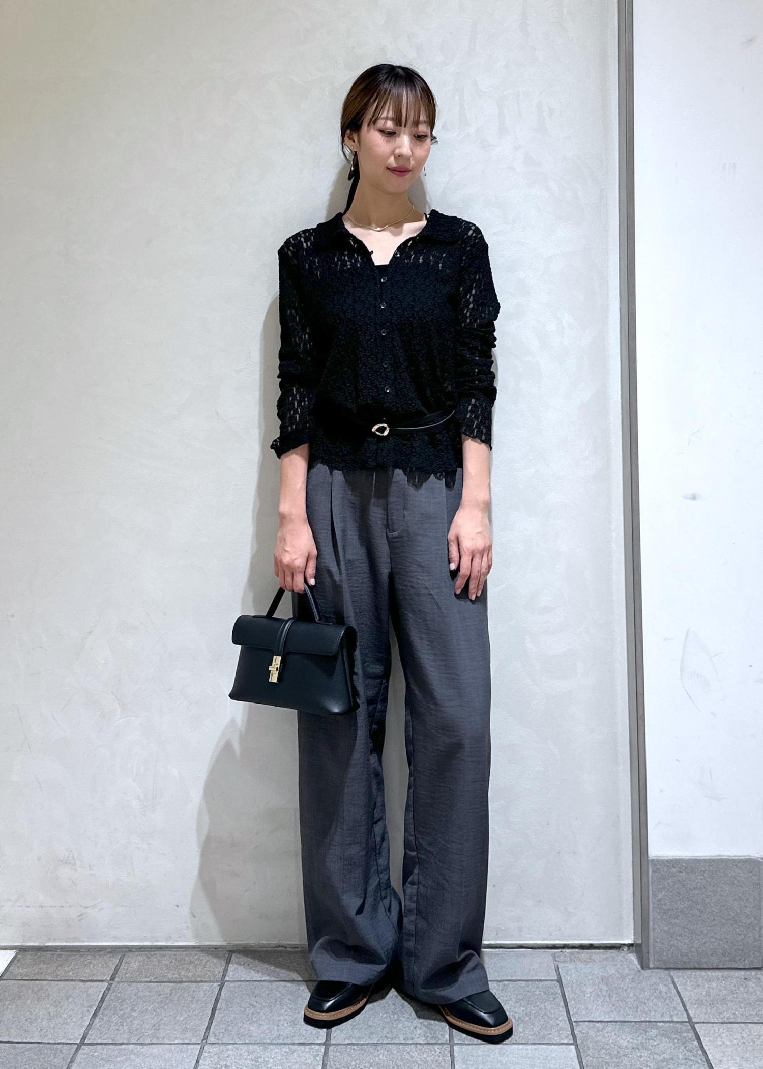 VIS【美easy】ワンタックワイドスラックスパンツ/洗えるチャコール / L¥5,489レビュー165cmでLサイズを着用しました!丈間はピッタリです!素材感がサラサラなので暑い時期にも着ていただけます☀︎形がとてもキレイで着痩せも叶います♪