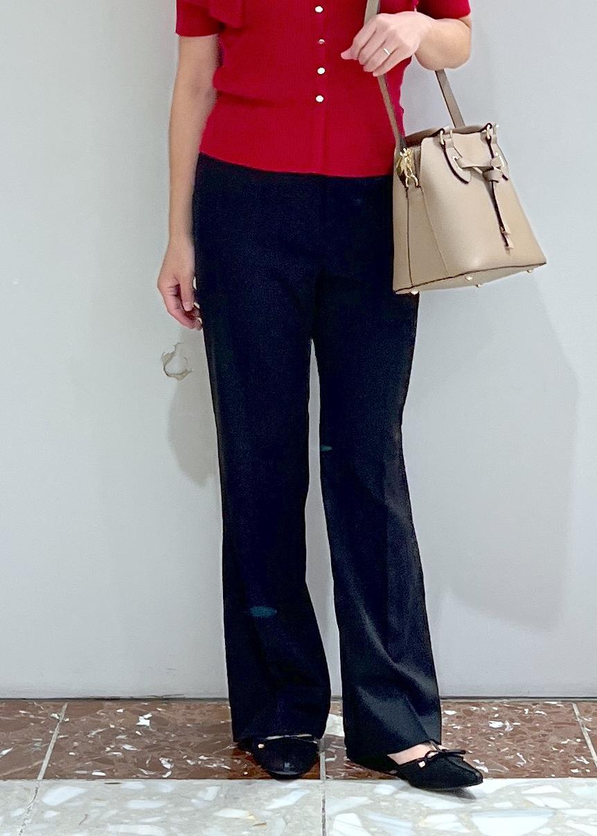 VISフレアーリラックススラックスブラック / M¥4,150レビューサラリとした柔らかめの生地で履き心地が良いです。足がスッキリと細く長く見えるデザインでオフィスでも履きやすいシンプルなデザインです。