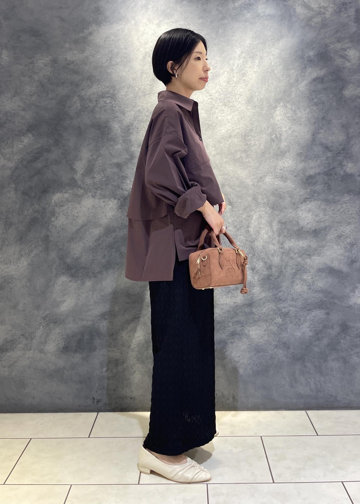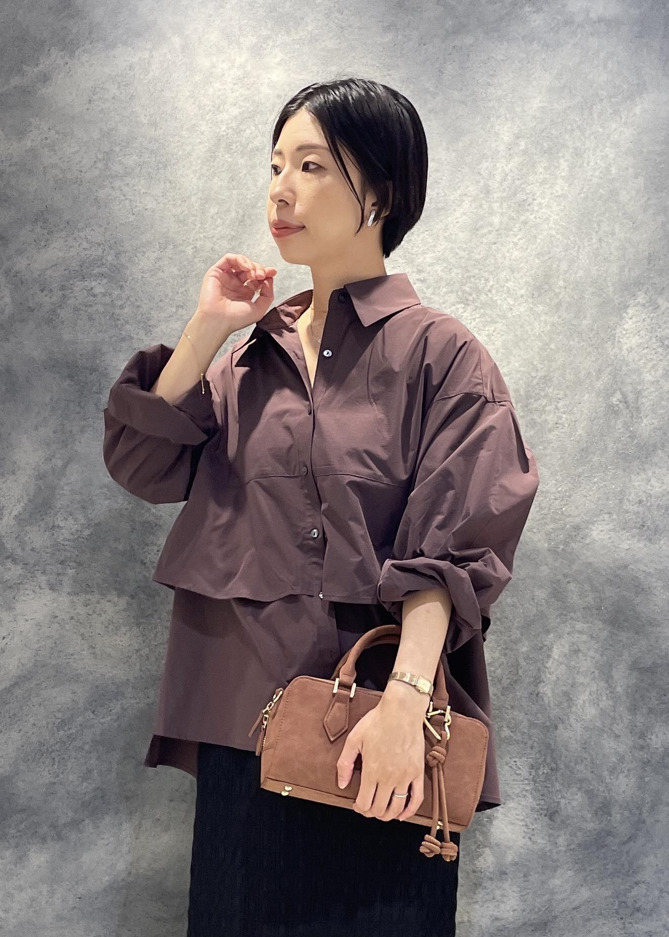 VIS裾ティアードオーバーシャツ/UVケア・イージーケアダークブラウン / F¥3,557レビューハリ感のある素材で高見えするブラウスです。