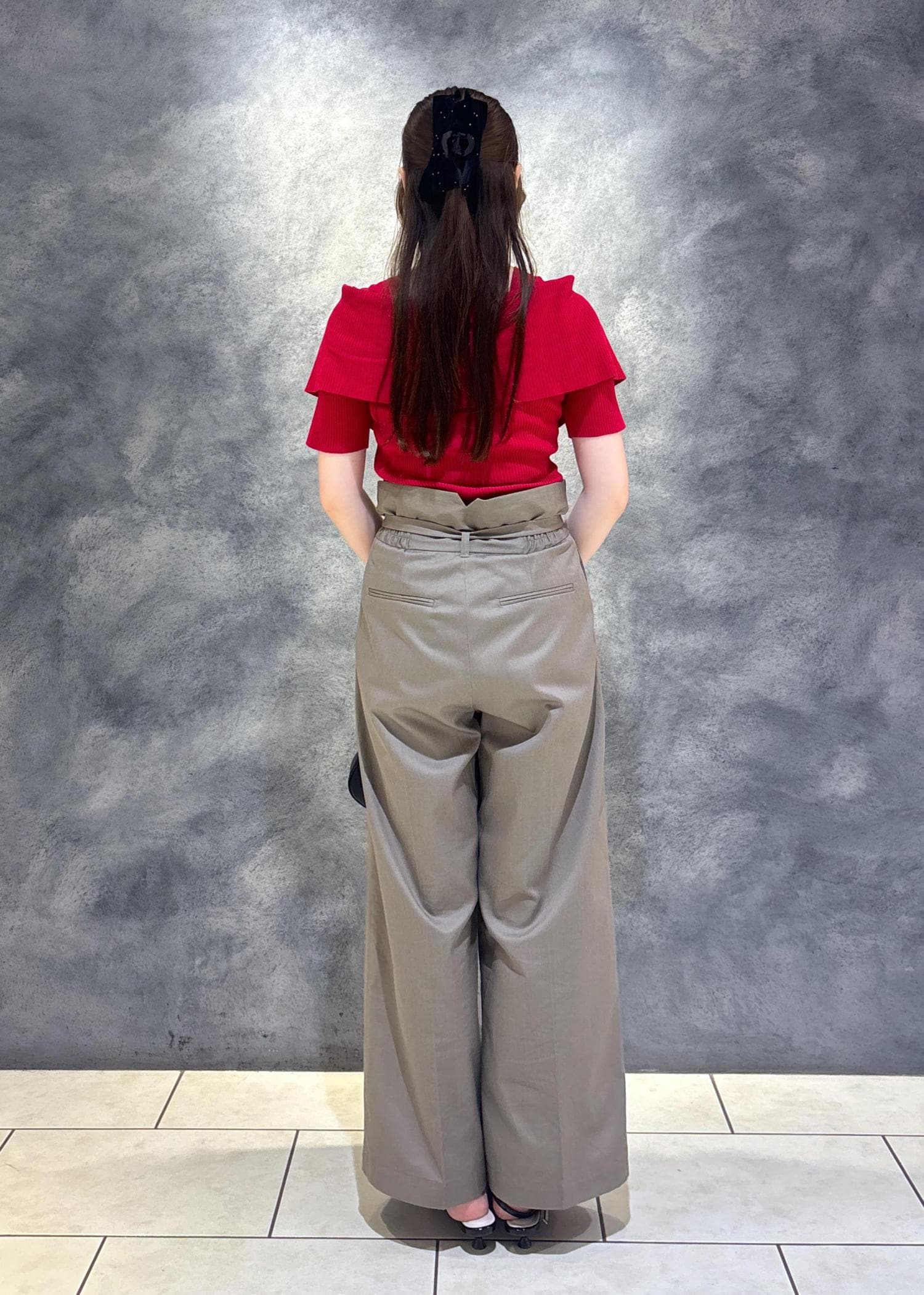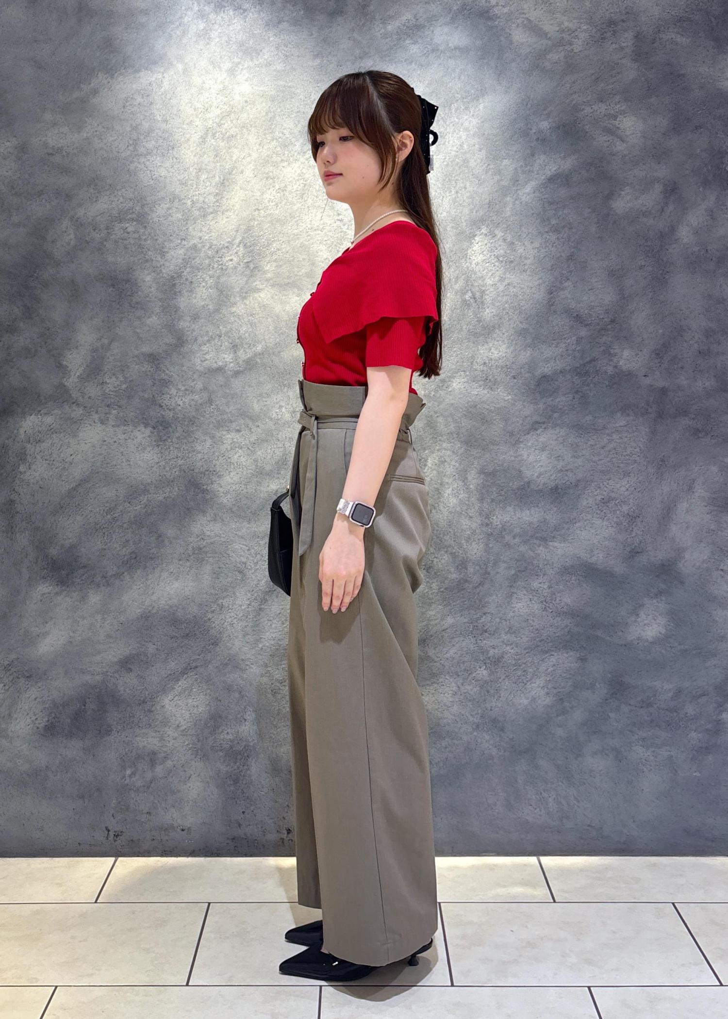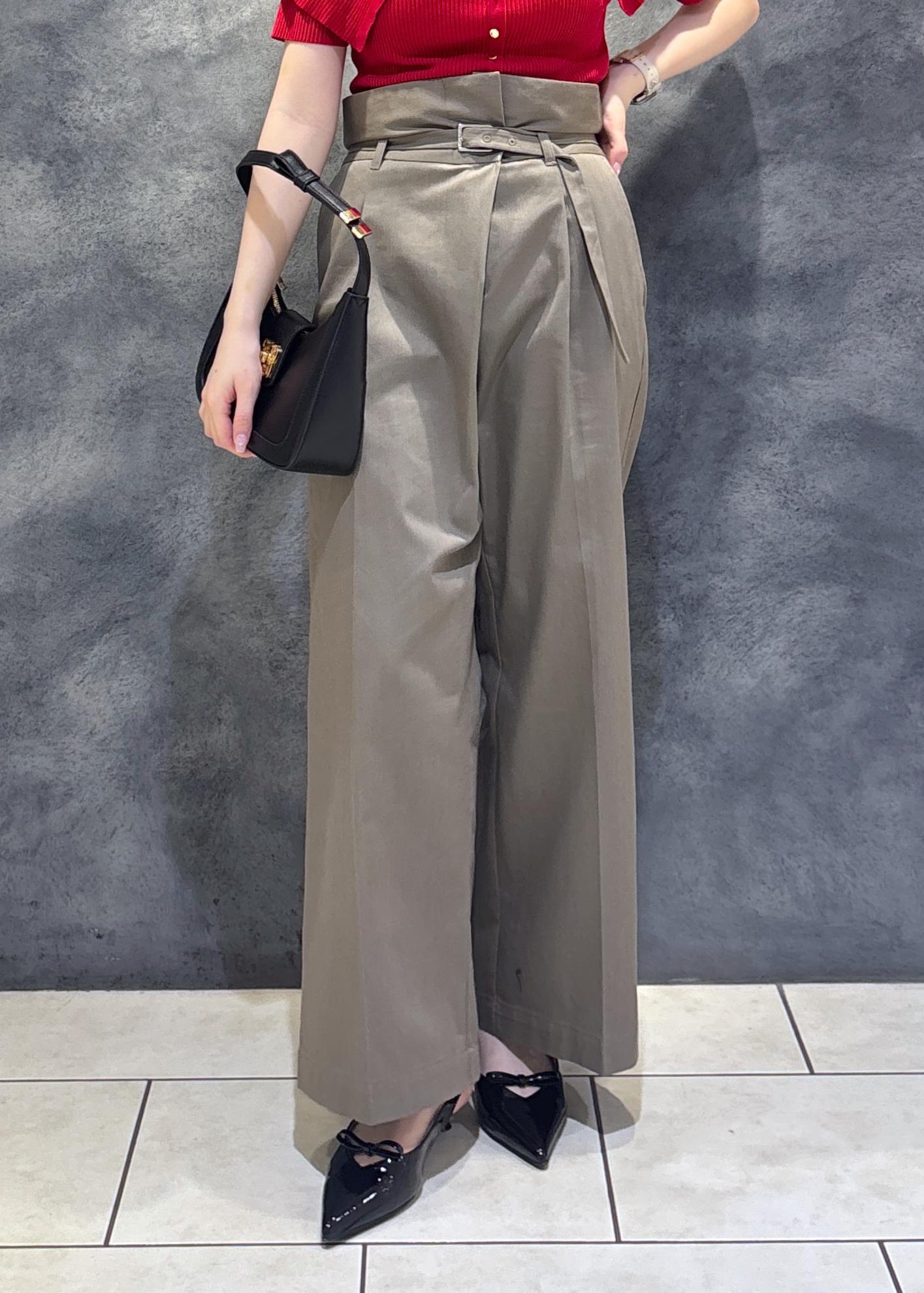 ハイウエストでベルト付きなので脚長効果も◎