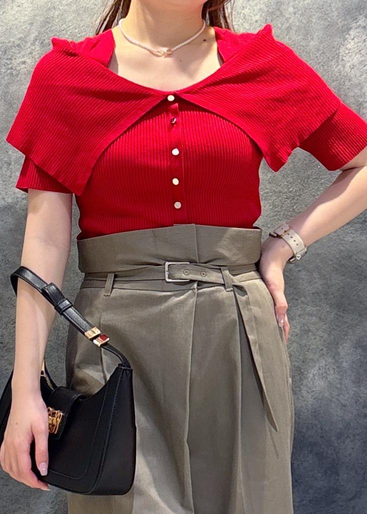 VISビックカラーオフショルハーフスリーブニットレッド / F¥2,963レビュースカートにもパンツにも合うデザインです◎