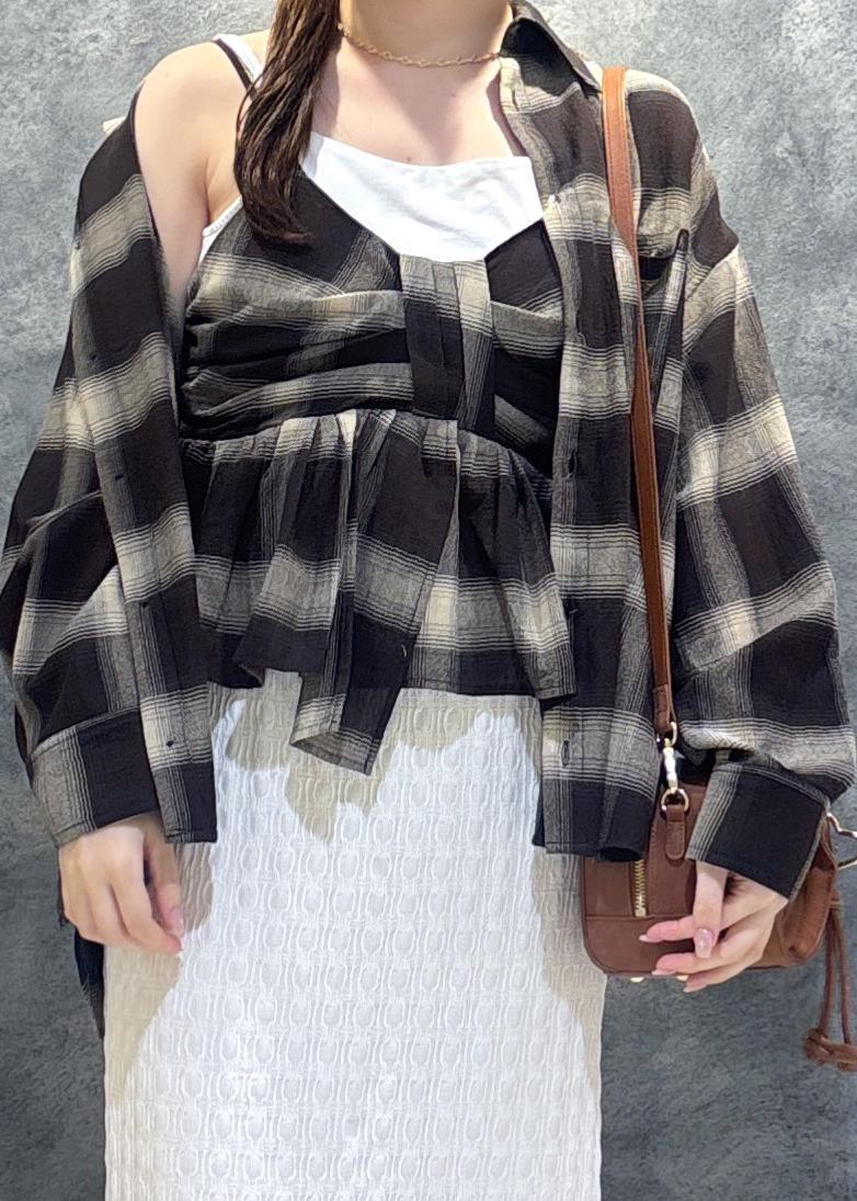 VISオンブレチェックオーバーシャツブラック系 / F¥6,589レビュー素材がやわらかく、程よい透け感で着心地◎です!