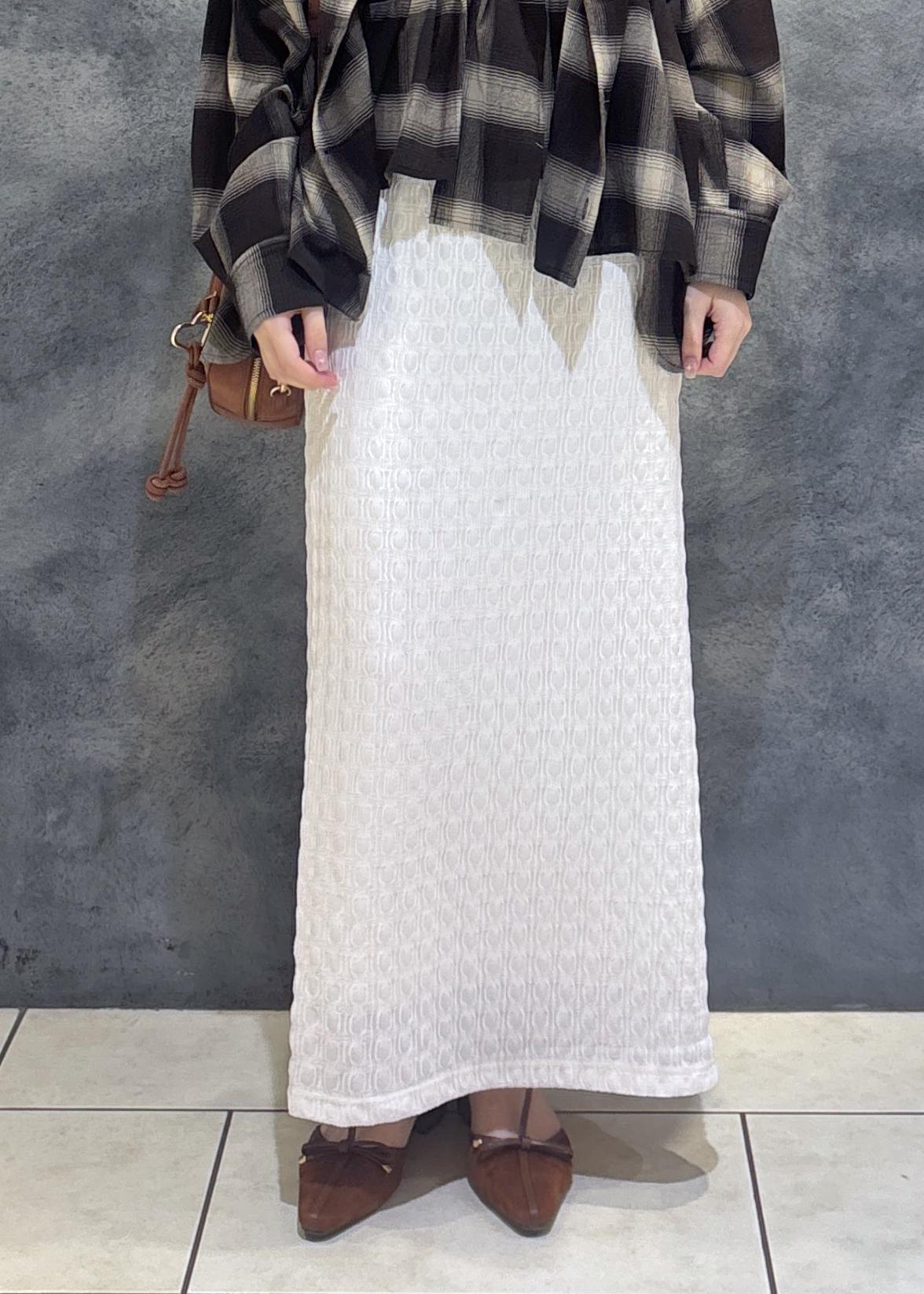 アウトレットVIS【新色追加】【接触冷感】膨れジャガードナロースカートオフホワイト / F¥3,293レビュータイトめなデザインですが、伸縮性があるので動きやすいです!