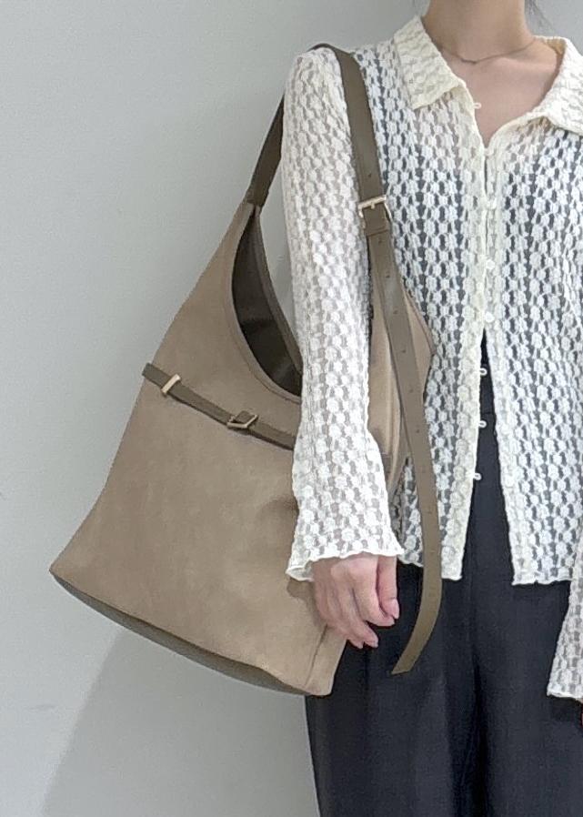 VIS【A4収納】フロントベルトソフトショルダーバッグベージュ系 / F¥5,535レビュースウェードの生地感が高みえします◎