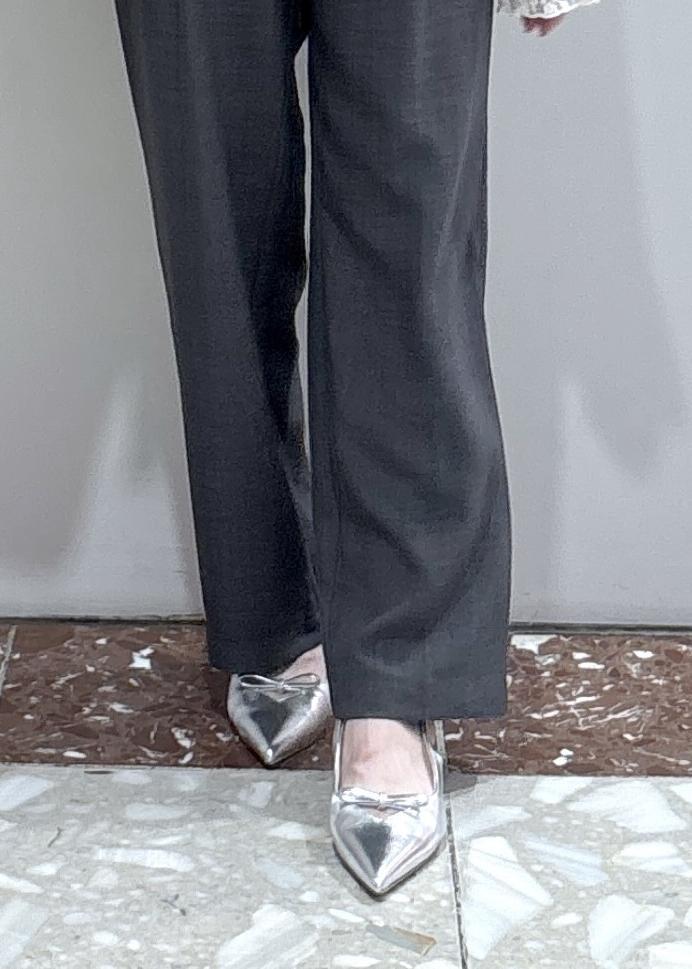 アウトレットVISスリングバックリボンミュールシルバー / L¥2,768レビュー24.0cmLサイズ着用。少し大きめでしたが、足幅広めなの幅感はしっかり取れて履きやすかったです。