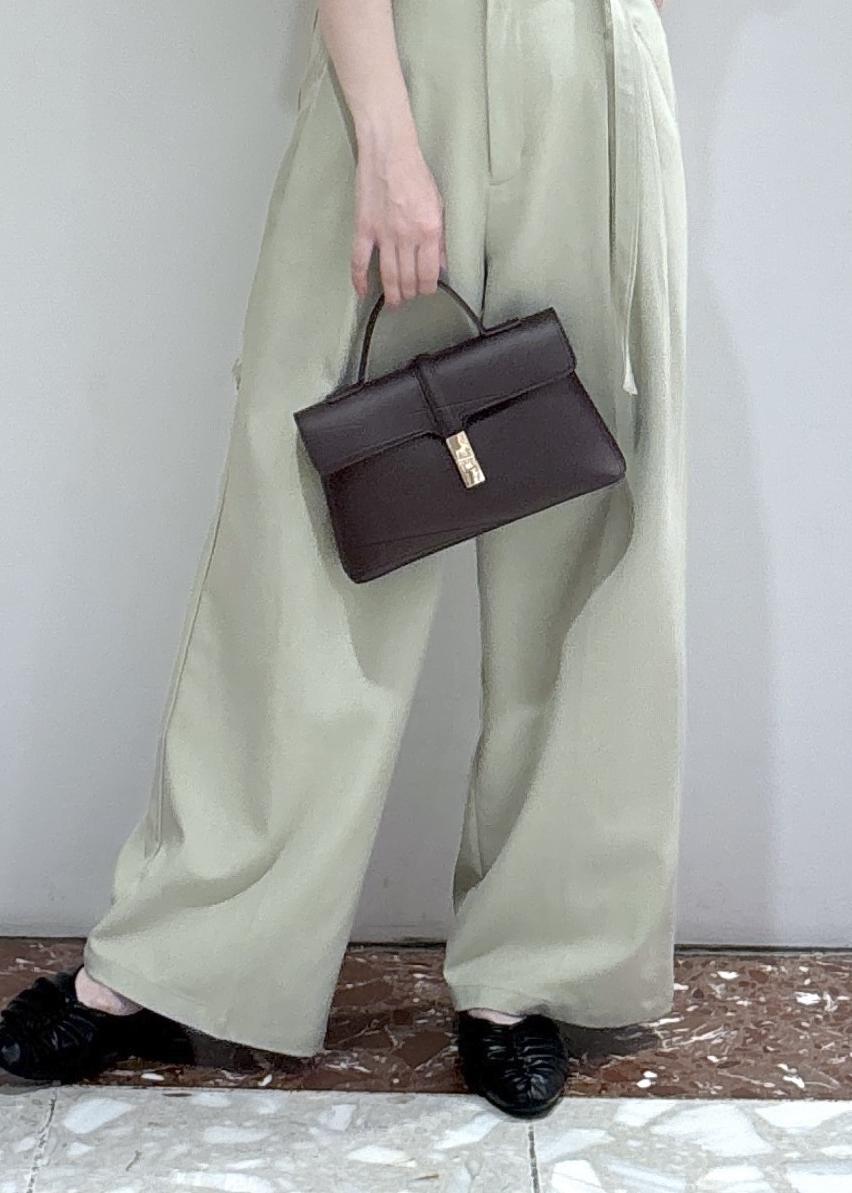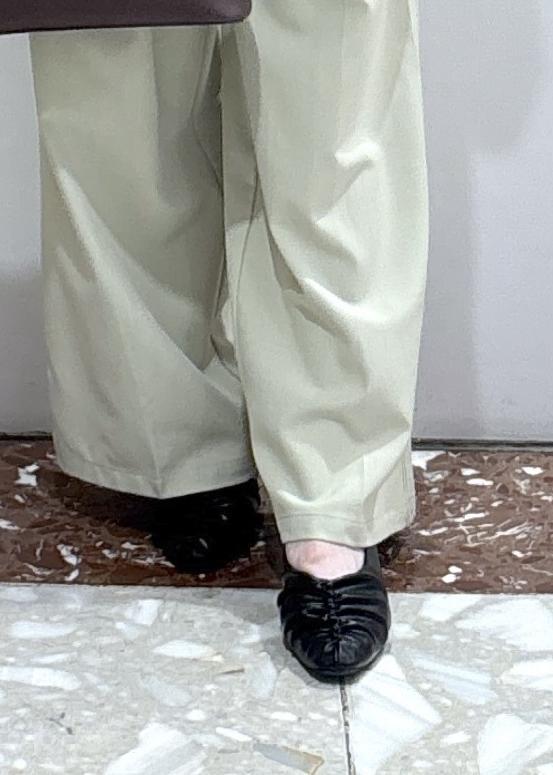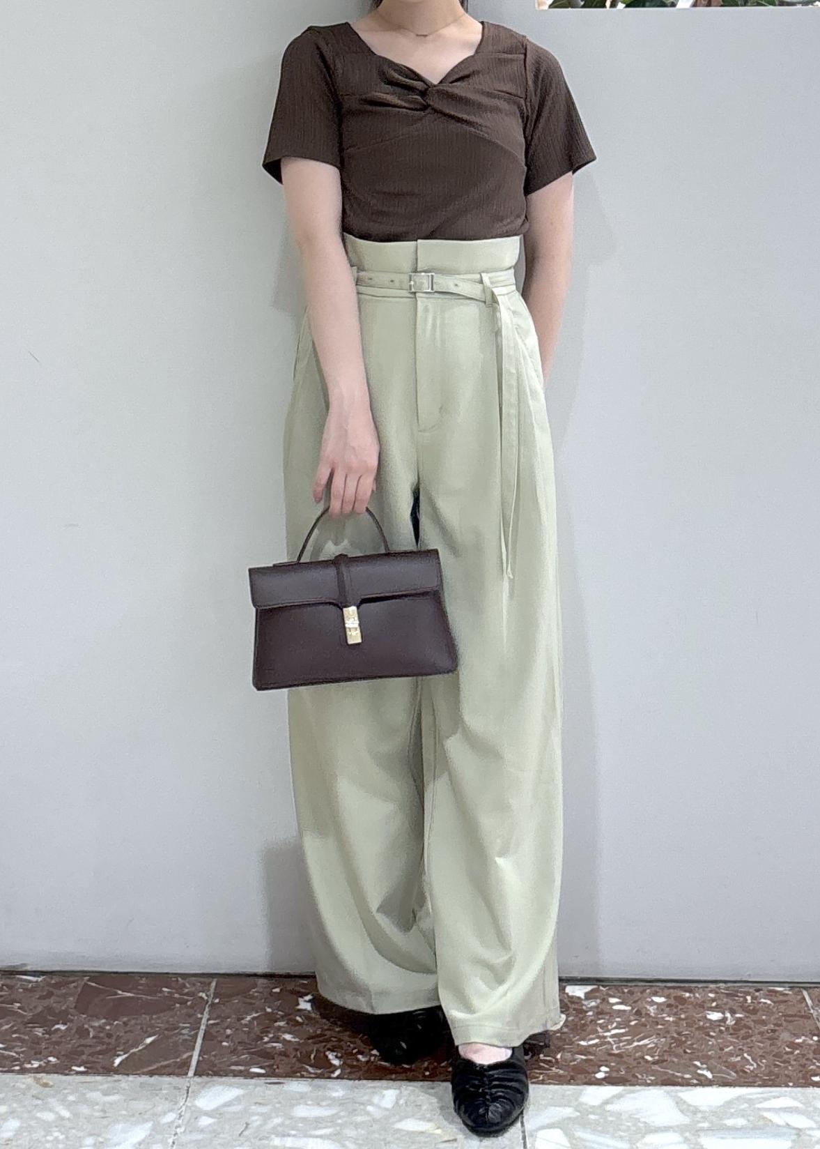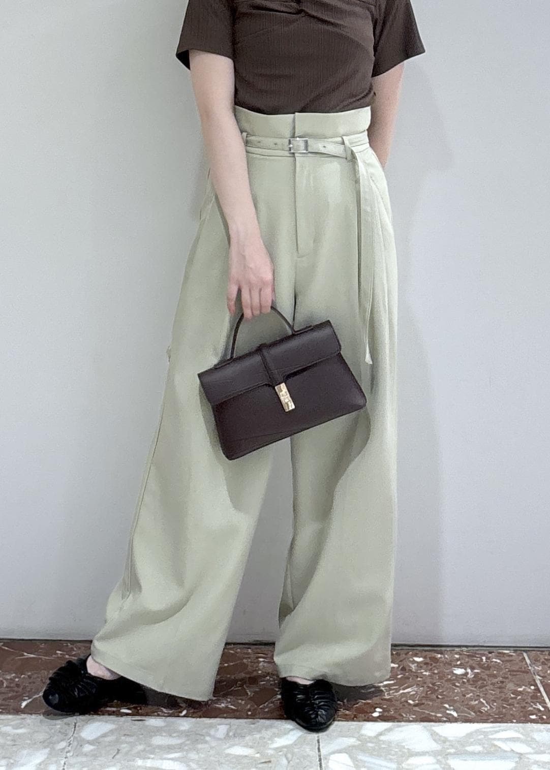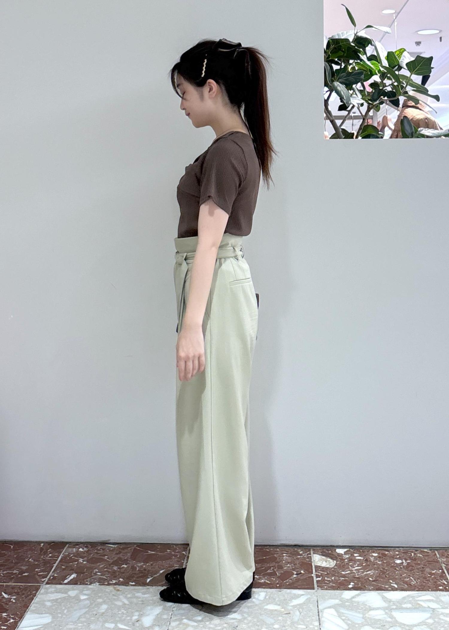VIS【新色追加】【防シワ/接触冷感】ベルトディテールタックワイドスラックスパンツライトグリーン / S¥6,589レビュー158cmSサイズ着用。ローヒールでも地面につかず、くるぶしが隠れる位の丈感です。