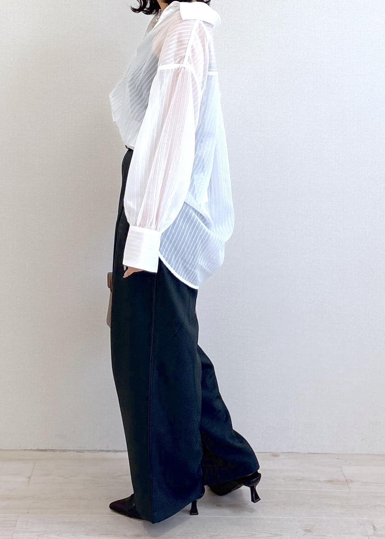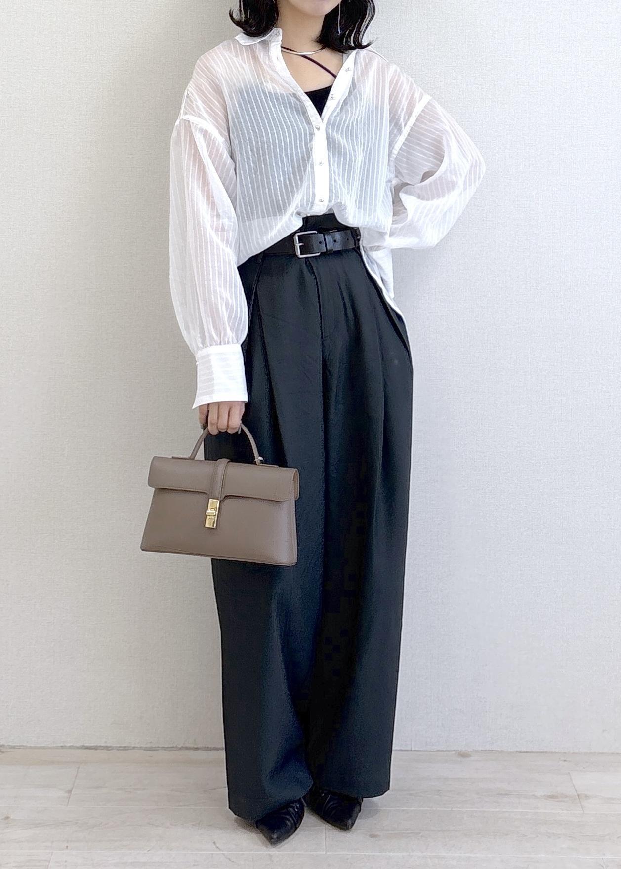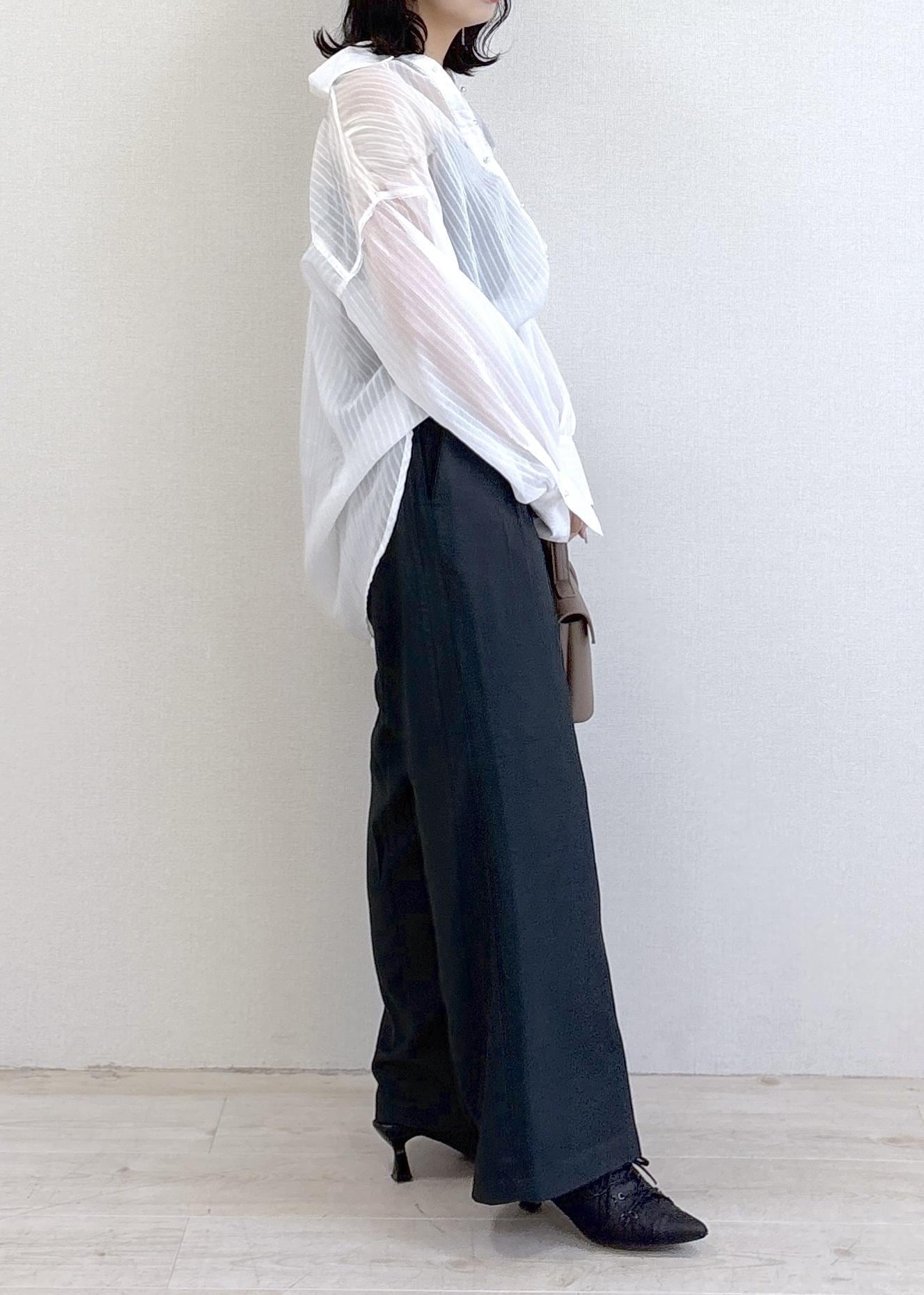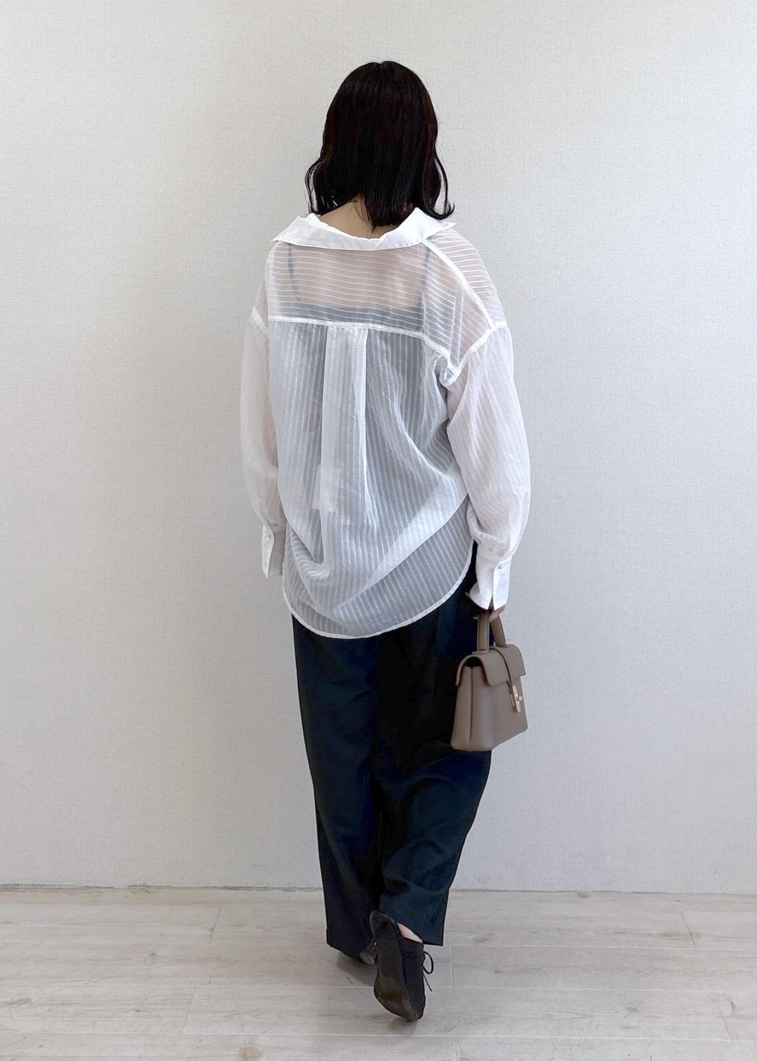 春から秋まで長ーーーーーく使えるシアーシャツを主役に、オーバーサイズながらきちんと見せの叶う超万能コーデを組んでみました♡