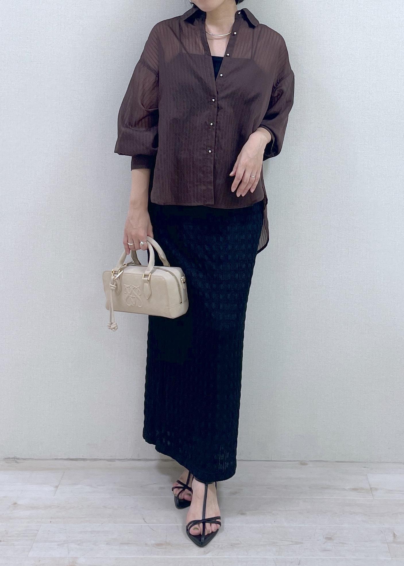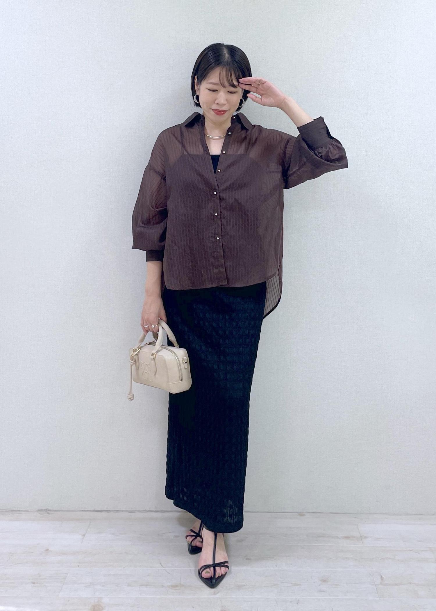 シャツ×Iラインスカートは、骨格ストレートさん得意なバランスなので、着痩せ効果もありおすすめです◎