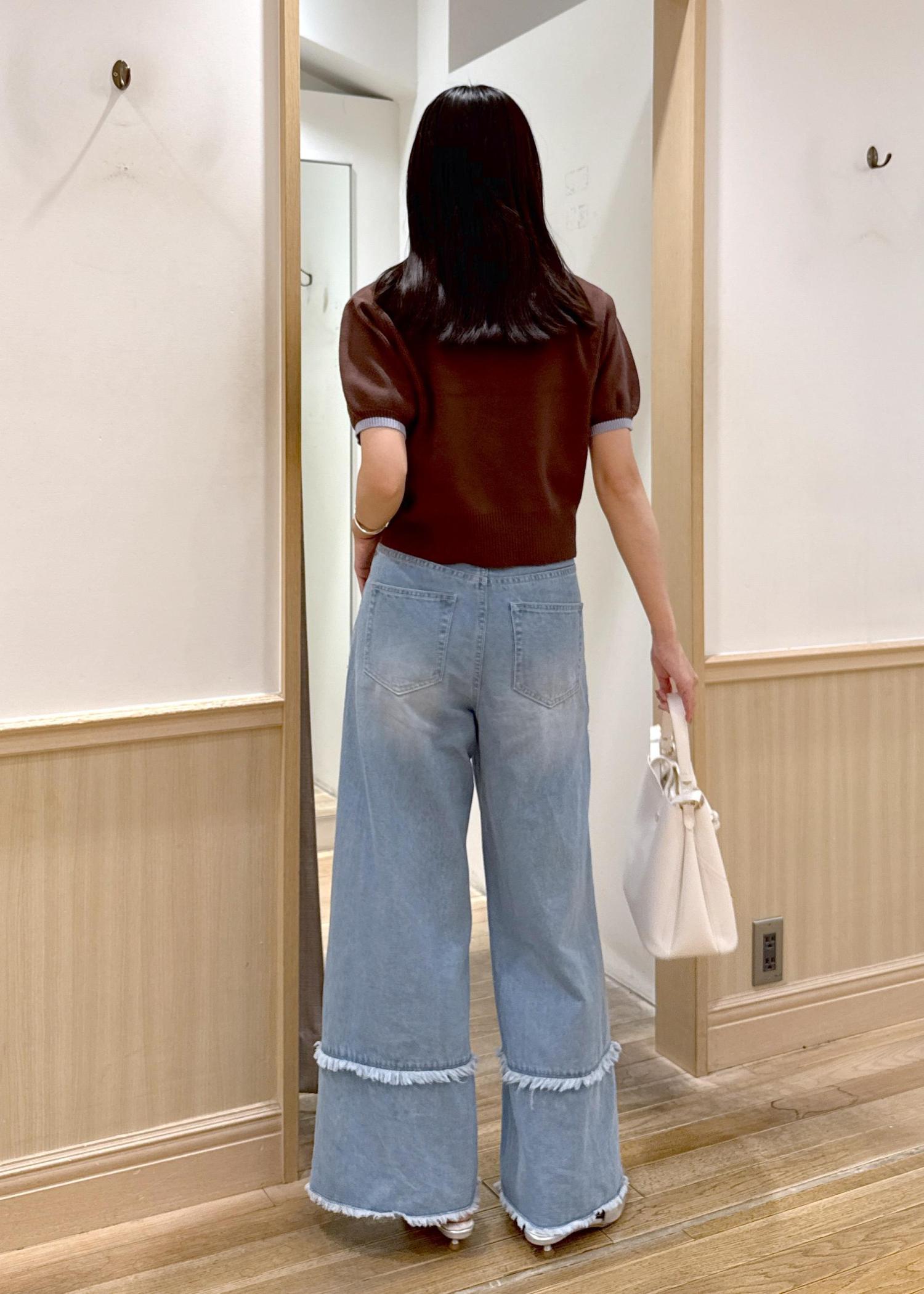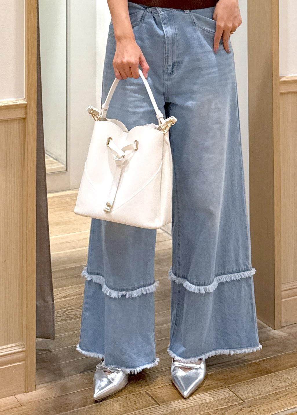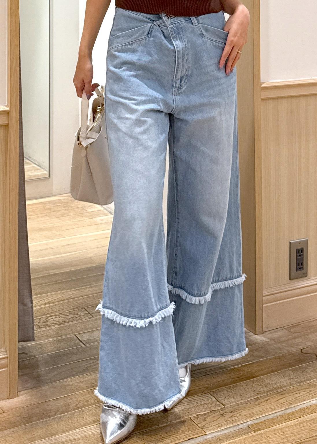 VISフリンジフレアデニムサックス / M¥4,395レビュー164cm、Mサイズ着用。